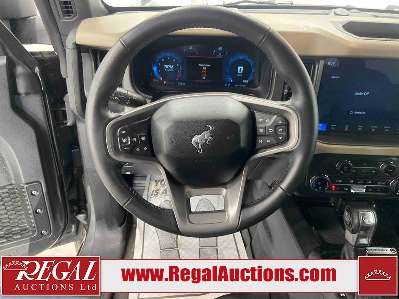 This 2025 FORD BRONCO BIG BEND 4D UTILITY 4WD 2.3L is powered by a 4 cylinder gasoline engine and an automatic transmission. It is equipped with four wheel drive. The SUV has seats for 5 people. The SUV has high mileage for its age. The vehicle has high value options including leather upholstery, heated seats, navigation, a convertible top, and a backup camera. The body looks to be in good condition overall. There are chips on the front bumper, grille, hood, roof, and rear bumper. There are very minor scratches in many areas around the body. There are very minor chips in many areas around the body. The interior looks to be in fair condition overall. The rear seats are dirty. The carpet is dirty. The windshield is cracked. All of the tires have lots of tread remaining.