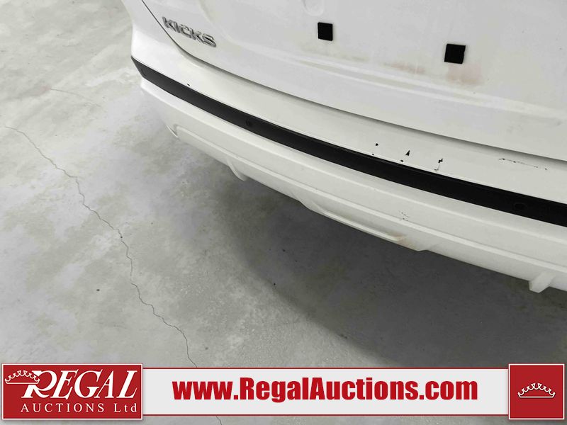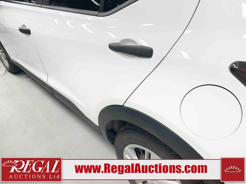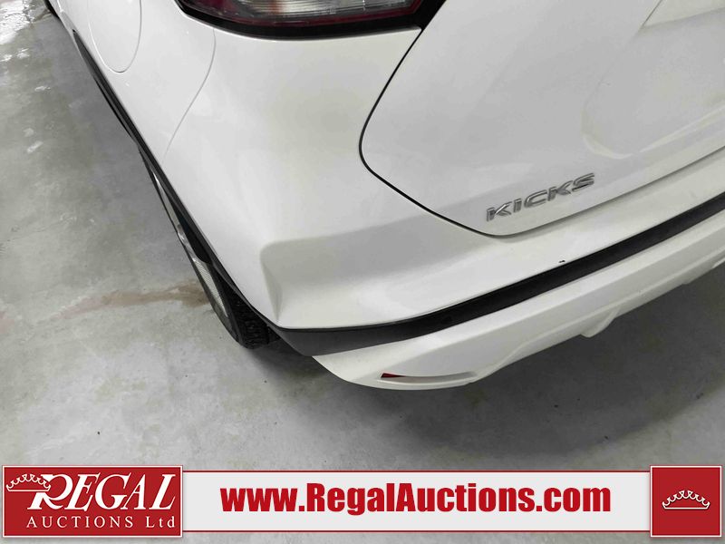 This 2021 NISSAN KICKS S 4D HATCHBACK FWD 1.6L is powered by a 4 cylinder gasoline engine and an automatic transmission. It is a two wheel drive model. The SUV has seats for 5 people. The mileage is average considering the SUV's age. The vehicle has high value options including a backup camera. The Tire Pressure light is on. The body looks to be in fair condition overall. There are severe scratches on the rear bumper. There is considerable dent damage on the right front door. There is some chrome peeling on the grille. There are chips on the front bumper, hood, roof, and left rear door. There are scratches on the front bumper. There is incidental rust on the roof. There is incidental dent damage on the left rear door. There are very minor scratches in many areas around the body. There are very minor chips in many areas around the body. The interior looks to be in fair condition overall. The passenger seat and rear seats are stained. The doors are worn. The carpet is dirty. The windshield is chipped. The front tires are nearly bald and should be replaced. The rear tires are worn.