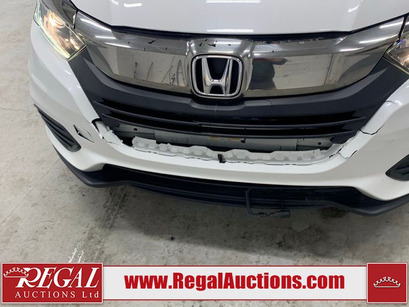 This 2019 HONDA HR-V LX 4D UTILITY FWD 1.8L is powered by a 4 cylinder gasoline engine and an automatic transmission. It is a two wheel drive model. The SUV has seats for 5 people. The SUV has low mileage for its age. The vehicle has high value options including heated seats and a backup camera. The vehicle has some mechanical problems. The battery is dead. The vehicle requires a boost to start and may require a booster pack in order to stay running. The body looks to be in fair condition overall. The front bumper is broken. The grille is cracked. There is paint peeling on the grille. There are slight chips on the hood, left front door, left rear fender, and rear bumper. There are very minor scratches in many areas around the body. There are very minor chips in many areas around the body. There is very minor dent damage in a few areas around the body. The interior looks to be in fair condition overall. The passenger seat is stained. The carpet is dirty. The windshield looks to be in good condition. All of the tires have lots of tread remaining.
