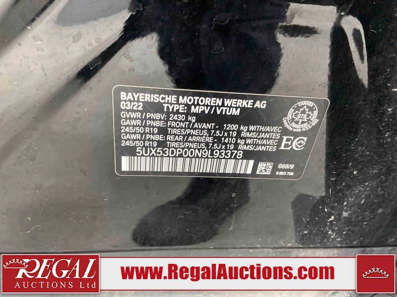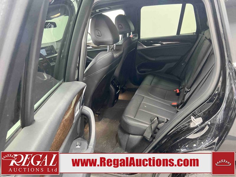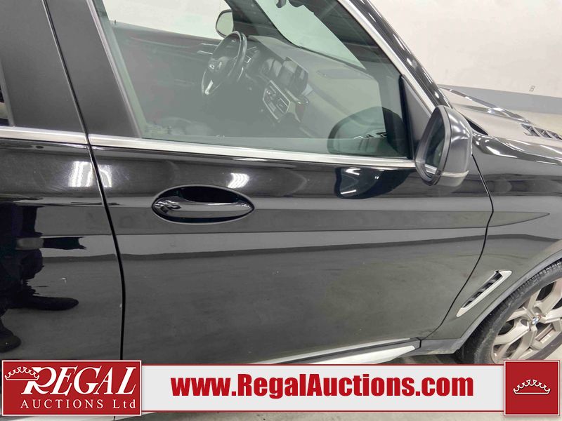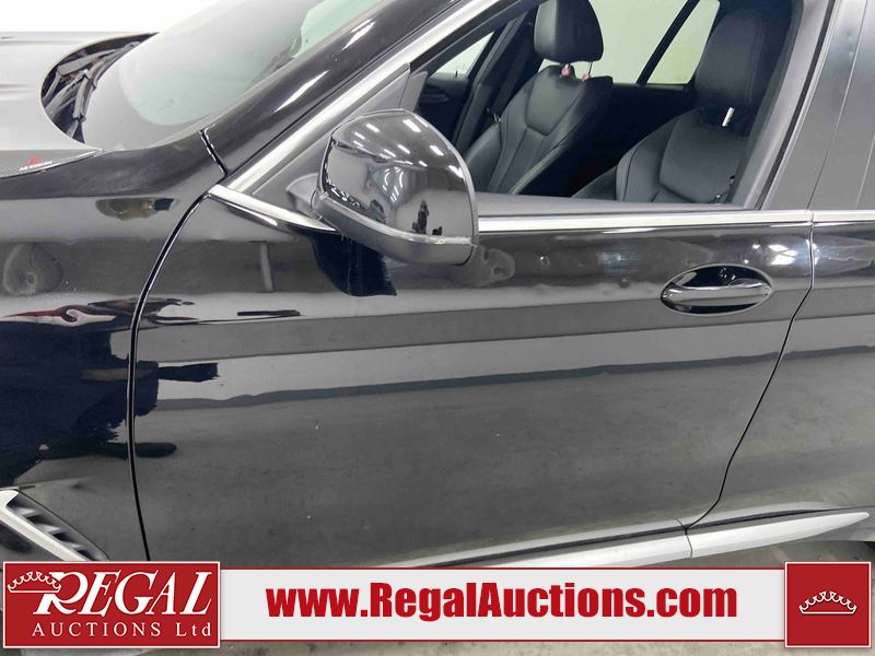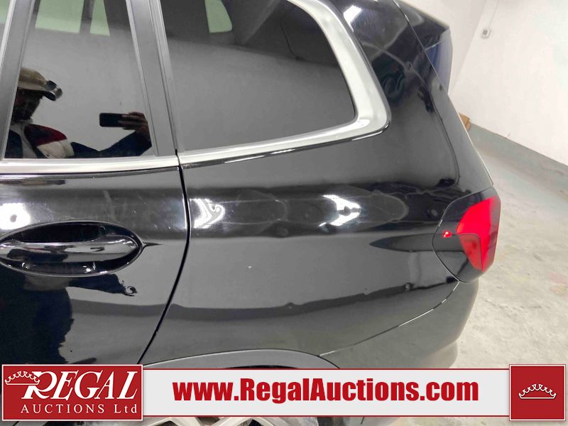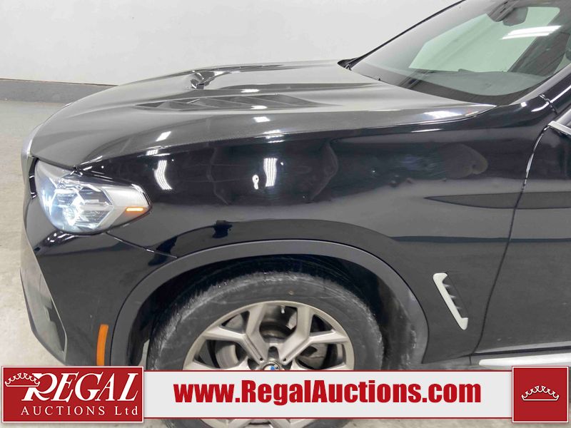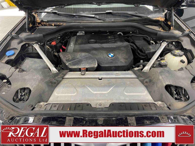 This 2022 BMW X3 XDRIVE30I 4D ULTILITY AWD 2.0L is powered by a 4 cylinder gasoline engine and an automatic transmission. It is equipped with four wheel drive. The SUV has seats for 5 people. The mileage is average considering the SUV's age. There is no emission sticker. The body looks to be in rough condition overall. Aftermarket hood has been installed. There is considerable hail on the roof, left front fender, left front door, left rear door, left rear fender, rear bumper, and rear door. There are chips on the front bumper and hood. There are very minor scratches in many areas around the body. There are very minor chips in many areas around the body. The interior looks to be in good condition overall. The carpet is dirty. The windshield looks to be in good condition. The driver's side front tire is worn. All of the other tires have lots of tread remaining.