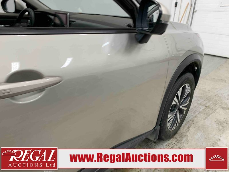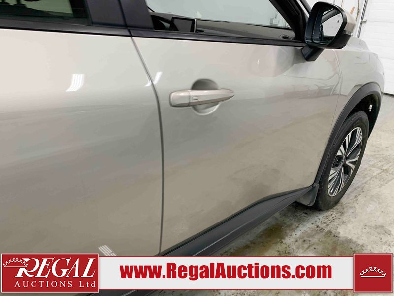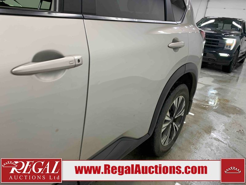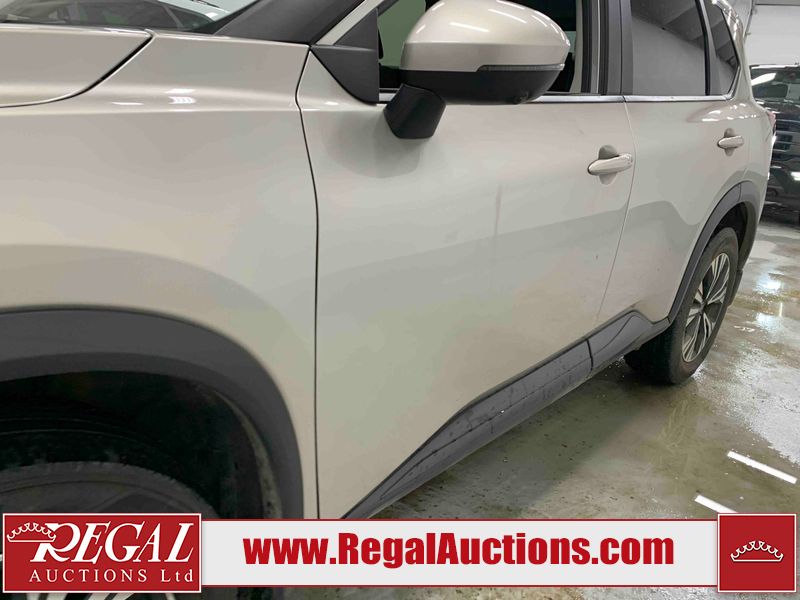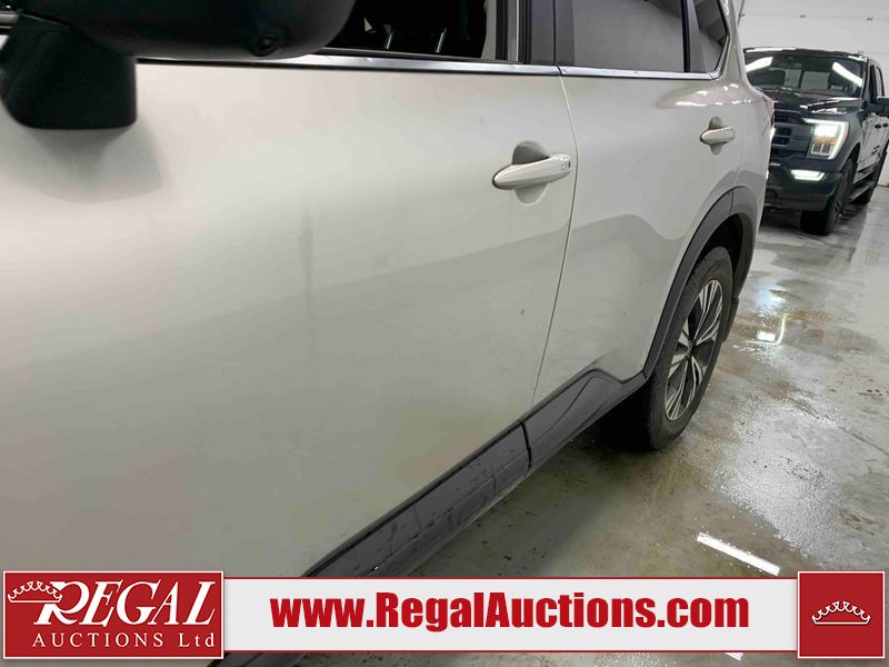 This 2023 NISSAN ROGUE SV 4D UTILITY AWD 1.5L is powered by a 3 cylinder gasoline engine and an automatic transmission. It is equipped with four wheel drive. The SUV has seats for 5 people. The SUV has high mileage for its age. The vehicle has high value options including a sunroof, power seats, heated seats, and a backup camera. The body looks to be in rough condition overall. There is extensive hail on the hood, roof, left front fender, left front door, left rear door, left rear fender, and right rear fender. There are chips on the front bumper, hood, left rear door, and rear bumper. There are very minor scratches in many areas around the body. There are very minor chips in many areas around the body. The interior looks to be in fair condition overall. The passenger seat is stained. The carpet is dirty. The windshield is chipped. All of the tires are nearly bald and should be replaced.
