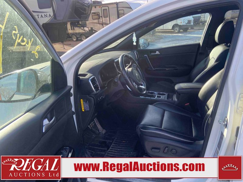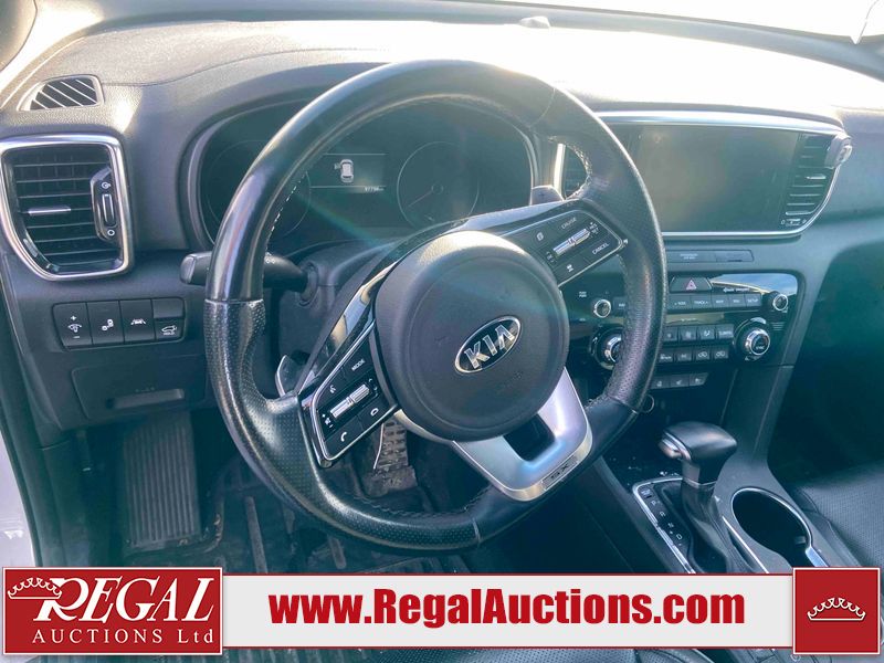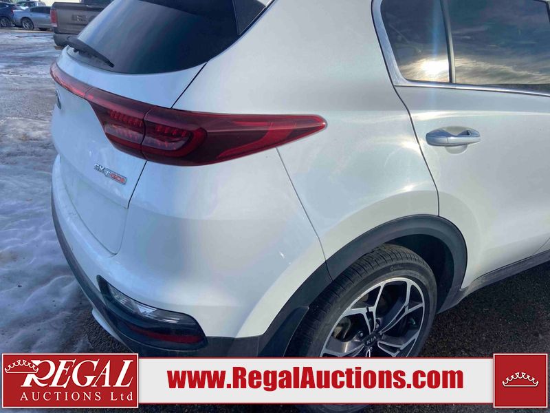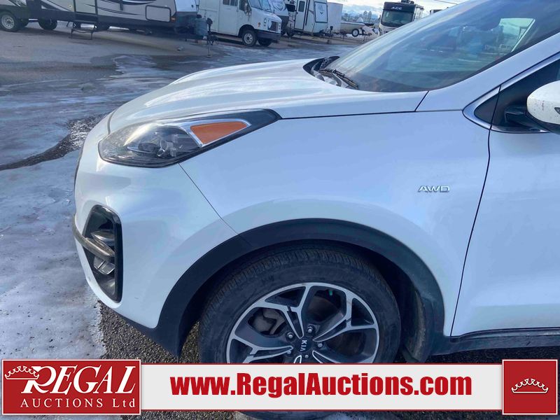 This 2021 KIA SPORTAGE SX 4D UTILITY AWD 2.0L TURBO is powered by a turbocharged 4 cylinder gasoline engine and an automatic transmission. It is equipped with four wheel drive. The SUV has seats for 5 people. The SUV has low mileage for its age. The vehicle has high value options including a sunroof, leather upholstery, power seats, heated seats, and a power lift gate. The body looks to be in good condition overall. There are chips on the front bumper, hood, left front fender, rear door, and right rear door. There is paint peeling on the front bumper. There are very minor scratches in many areas around the body. There are very minor chips in many areas around the body. The interior looks to be in good condition overall. The carpet is dirty. The windshield looks to be in good condition. All of the tires are nearly bald and should be replaced.