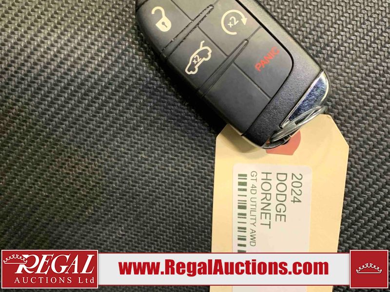 This 2024 DODGE HORNET GT 4D UTILITY AWD is powered by a turbocharged 268HP 2.0L 4 cylinder gasoline engine and an automatic transmission. It is equipped with four wheel drive. The SUV has seats for 5 people. The SUV has low mileage for its age. GT is a very popular trim level. The vehicle has high value options including heated seats and a backup camera. The body looks to be in good condition overall. There is minor dent damage on the hood. There are scratches on the rear bumper. There are very minor chips in some areas around the body. There are very minor scratches in many areas around the body. The interior looks to be in good condition overall. The windshield looks to be in good condition. All of the tires have lots of tread remaining. This SUV is being sold by an automotive broker. Regal Auctions Ltd. makes no guarantee or warranty, either express or implied, with respect to the data provided in this report. The information has been provided from the consignor and from sources generally believed to be reliable, however the accuracy of this information cannot be guaranteed by Regal Auctions.