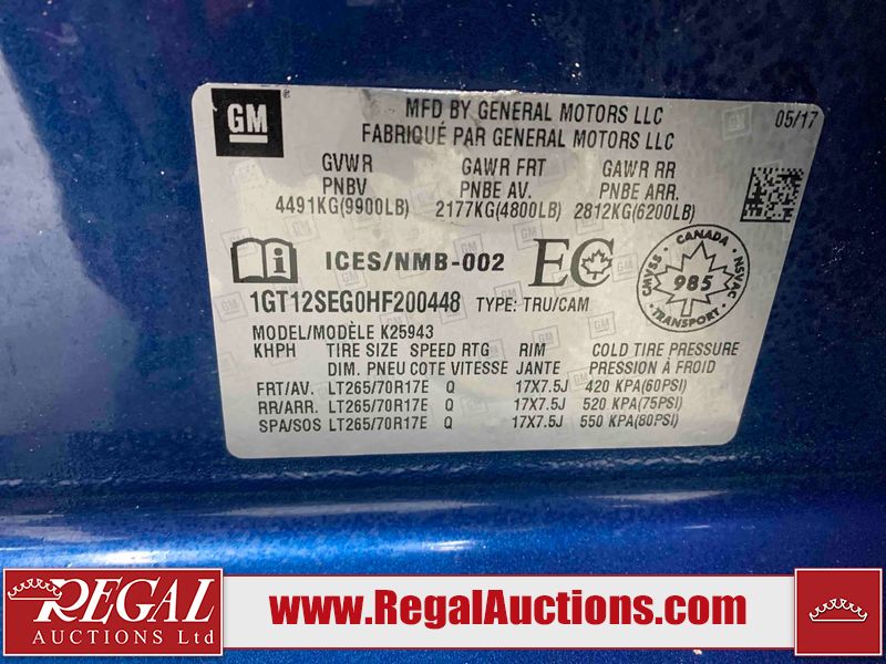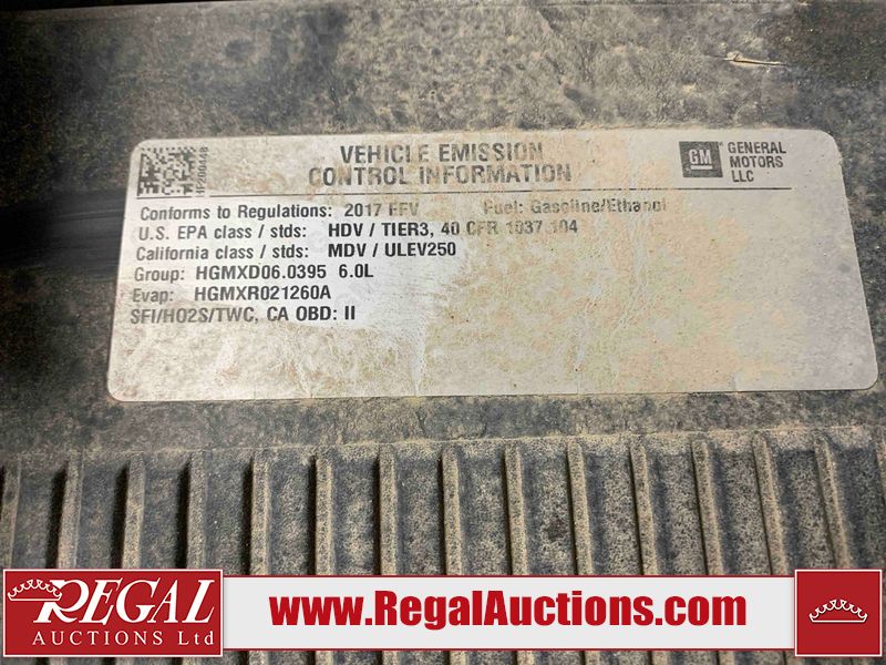 This 2017 GMC SIERRA 2500 SLE CREW CAB 4WD 6.0L is powered by a 6L 8 cylinder gasoline engine and an automatic transmission. It is equipped with four wheel drive. The truck has seats for 6 people. The mileage is average considering the truck's age. The vehicle has high value options including a backup camera. The check engine light is illuminated. The body looks to be in fair condition overall. There is conspicuous rust on the left rear fender. There are slight chips on the front bumper, hood, left front fender, left front door, left rear door, left rear fender, right rear fender, right rear door, right front door, and right front fender. There are incidental scratches on the left front fender, left front door, left rear door, left rear fender, tail gate, right rear fender, and right front door. There is slight rust on the rear bumper. There are very minor chips on the grille. There are very minor scratches in a few areas around the body. The interior looks to be in fair condition overall. The driver's seat is worn. The passenger seat is stained. The windshield is cracked. The passenger side rear tire is worn. All of the other tires have lots of tread remaining. This truck is being sold by the fleet department of a corporation or government body. The vehicle will be sold with the following declarations: Fleet Vehicle (See Footnote 1) and Mechanical problems - Power steering noise. Footnotes: 1) This vehicle is a commercially owned work vehicle. Regal Auctions Ltd. makes no guarantee or warranty, either express or implied, with respect to the data provided in this report. The information has been provided from the consignor and from sources generally believed to be reliable, however the accuracy of this information cannot be guaranteed by Regal Auctions.
