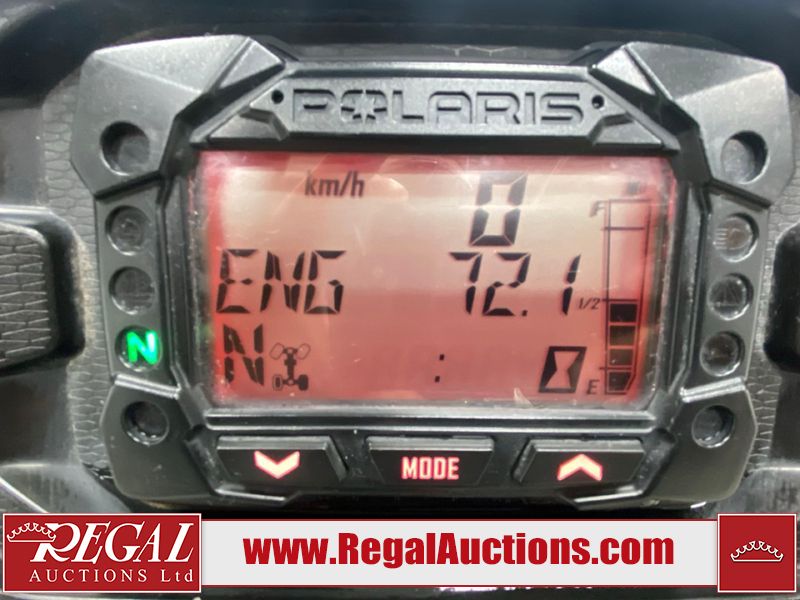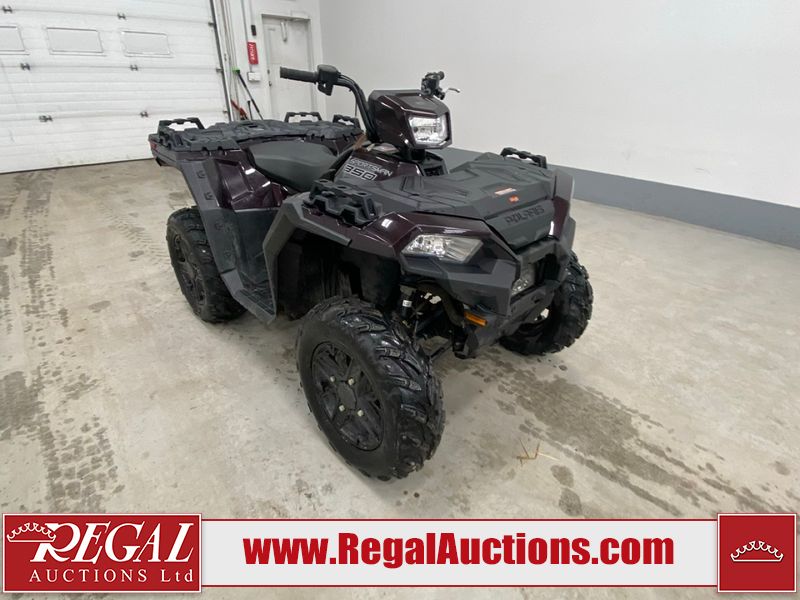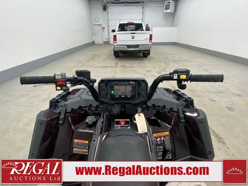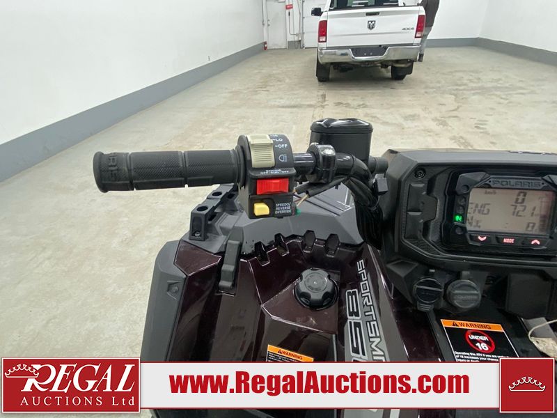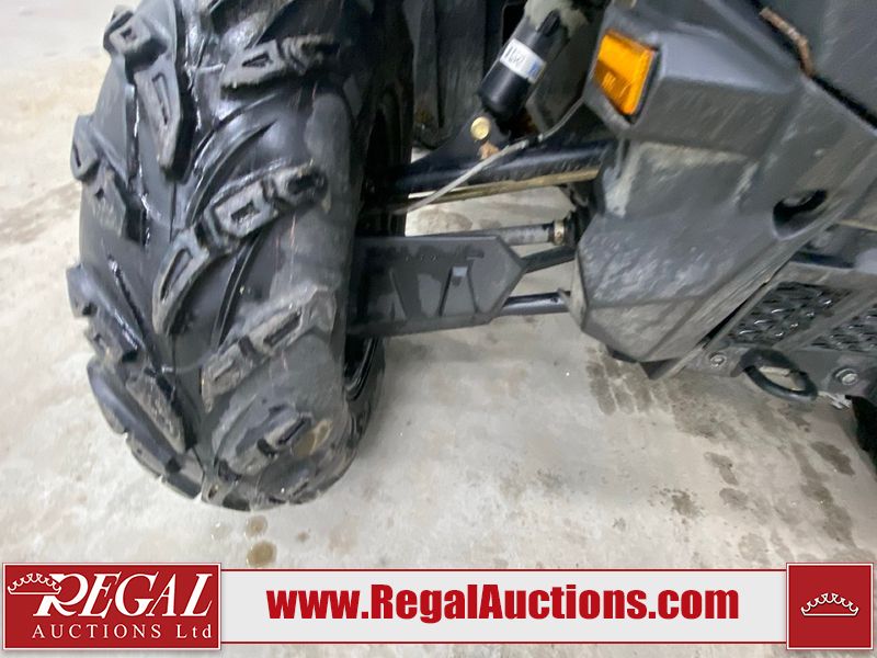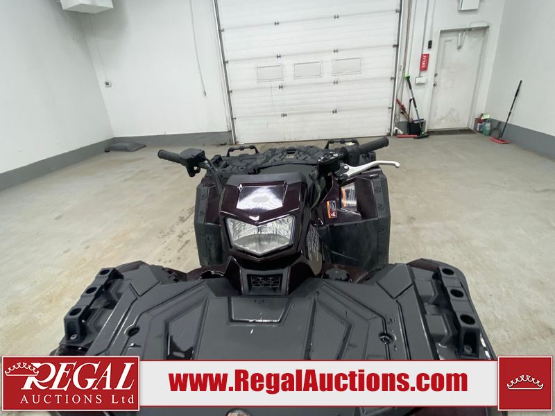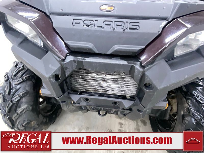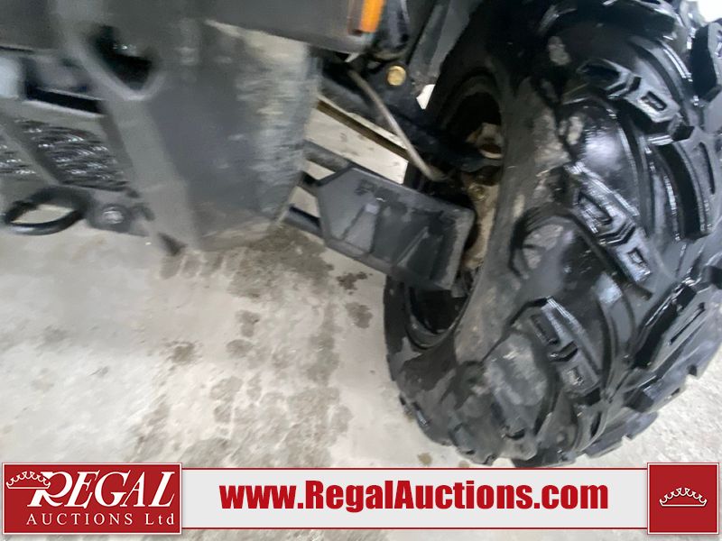 This ATV is a 2023 Polaris sportsman 850 EPS PREMIUM model. The odometer shows the odometer shows 1706 km and 71 engine hours. This unit is dirty, not all damages cannot be determined. All panels are showing minor chips, scratches, and scuffs. The rear crash bar has dents. This unit is powered by a 850 cc two cylinder for a stroke, liquid cooled engine and a continuously variable transmission with a shaft final drive. The tires are mounted on alloy rims and appear to be in good enough condition to be for use. This unit is equipped with a 2WD/4WD selector.