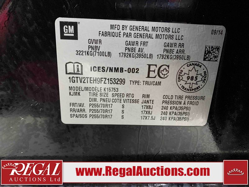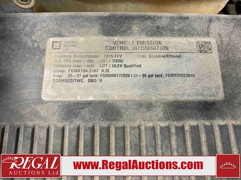 This 2015 GMC SIERRA 1500 DOUBLE CAB 4WD is powered by a 4.3L V6 gasoline engine and an automatic transmission. It is equipped with four-wheel drive. The truck has seats for 6 people. The truck has high mileage for its age. The vehicle has high-value options, including a backup camera. The body looks to be in rough condition overall. There are a fair amount of scratches on the left rear fender and right rear fender. There are chips on the front bumper, grille, hood, left front fender, left front door, left rear door, left rear fender, right rear fender, right rear door, right front door, and right front fender. There is rust on the front bumper, left rear fender, tail gate, and right front fender. There are incidental scratches on the hood, left front door, left rear door, right rear door, and right front door. There is minimal dent damage on the rear bumper and tailgate. There is slight paint peeling on the right front door. There are very minor scratches in a few areas around the body. The taillights are broken. The interior looks to be in fair condition overall. There are some stains on the driver's seat, passenger seat, and rear seats. The windshield is cracked. All of the tires have lots of tread remaining. This truck is being sold by the fleet department of a corporation or government body. The vehicle will be sold with the following declarations: Fleet Vehicle (See Footnote 1). Footnotes: 1) This vehicle is a commercially owned work vehicle. Regal Auctions Ltd. makes no guarantee or warranty, either express or implied, with respect to the data provided in this report. The information has been provided from the consignor and from sources generally believed to be reliable, however the accuracy of this information cannot be guaranteed by Regal Auctions.