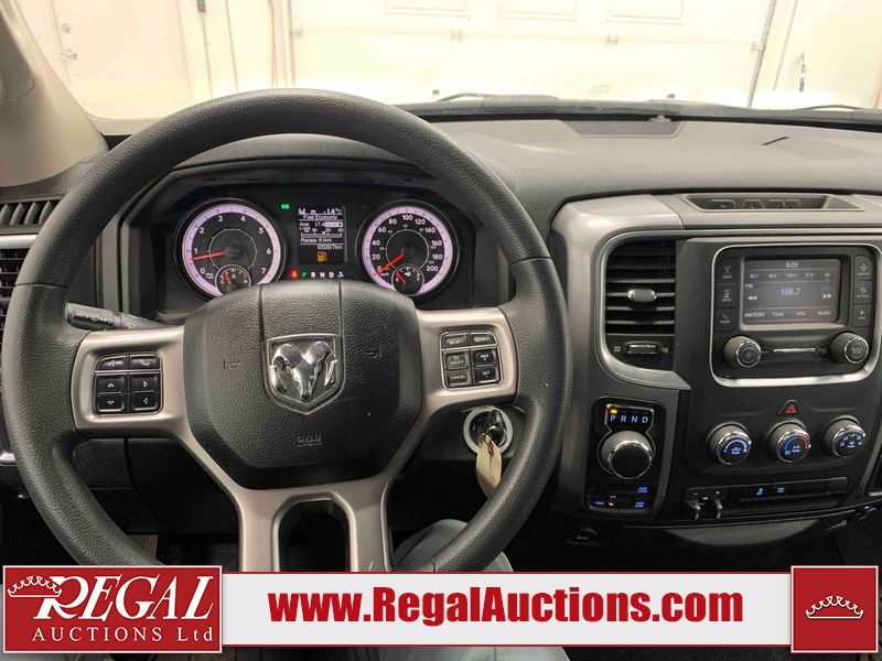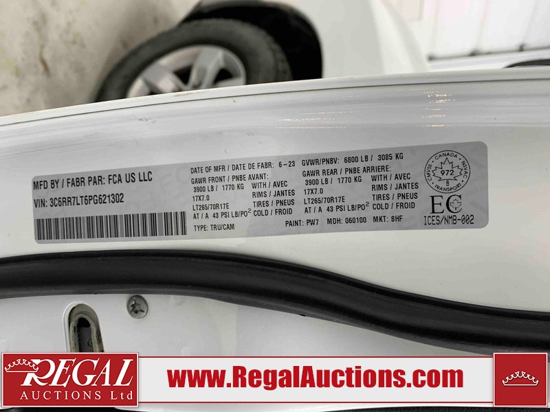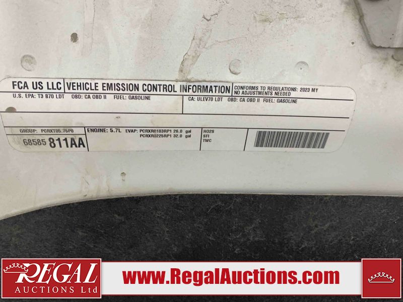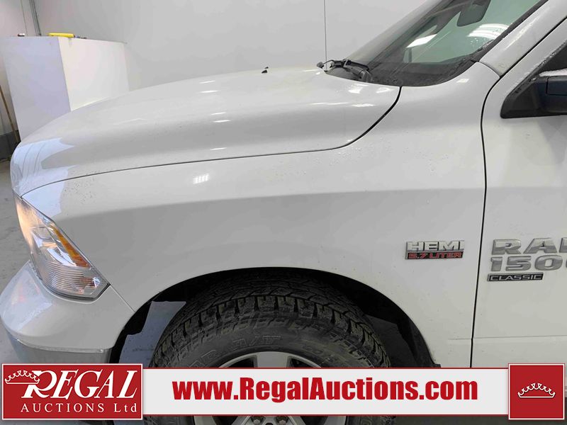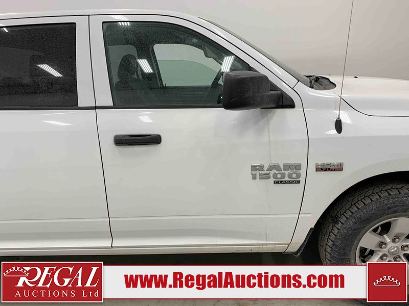 This 2023 RAM 1500 CLASSIC CREW CAB CREW 4X4 is powered by a 5.7L V8 gasoline engine and an automatic transmission. It is equipped with four-wheel drive. The truck has seats for 6 people. The mileage is average considering the truck's age. The vehicle has high-value options, including power seats and a backup camera. The body looks to be in fair condition overall. There are slight chips on the front bumper, grille, hood, roof, left front fender, left front door, left rear fender, rear bumper, tailgate, right rear door, right front door, and right front fender. There are minimal scratches on the front bumper, hood, left front door, left rear fender, rear bumper, tailgate, right front door, and right front fender. There is very minor dent damage on the front bumper. There are very minor chips in a few areas around the body. There are very minor scratches in many areas around the body. The interior looks to be in good condition overall. The dashboard, driver's seat, and passenger seat are dirty. The roofliner is dirty. The windshield looks to be in good condition. All of the tires have lots of tread remaining. This truck is being sold by an automotive broker. Regal Auctions Ltd. makes no guarantee or warranty, either express or implied, with respect to the data provided in this report. The information has been provided from the consignor and from sources generally believed to be reliable, however the accuracy of this information cannot be guaranteed by Regal Auctions.