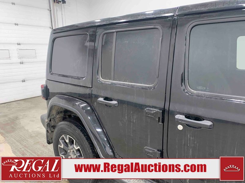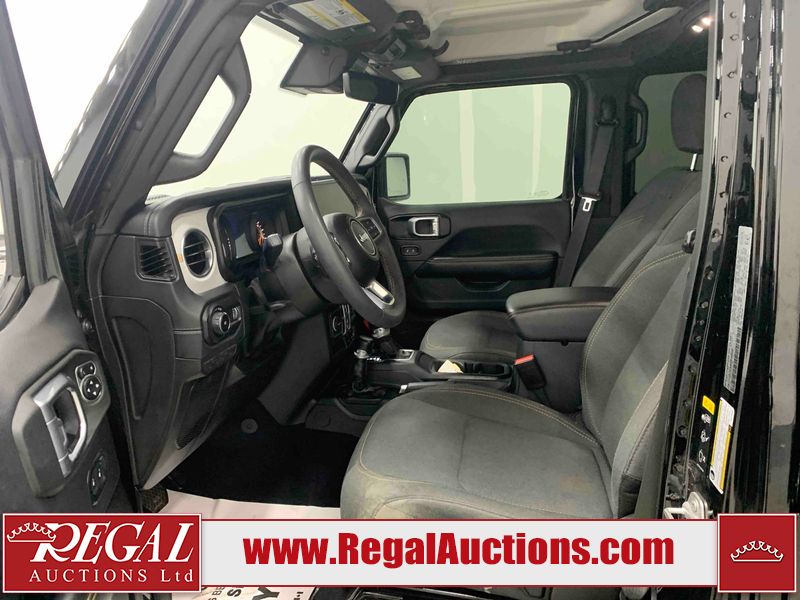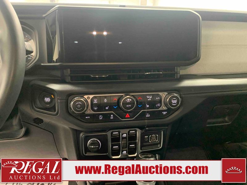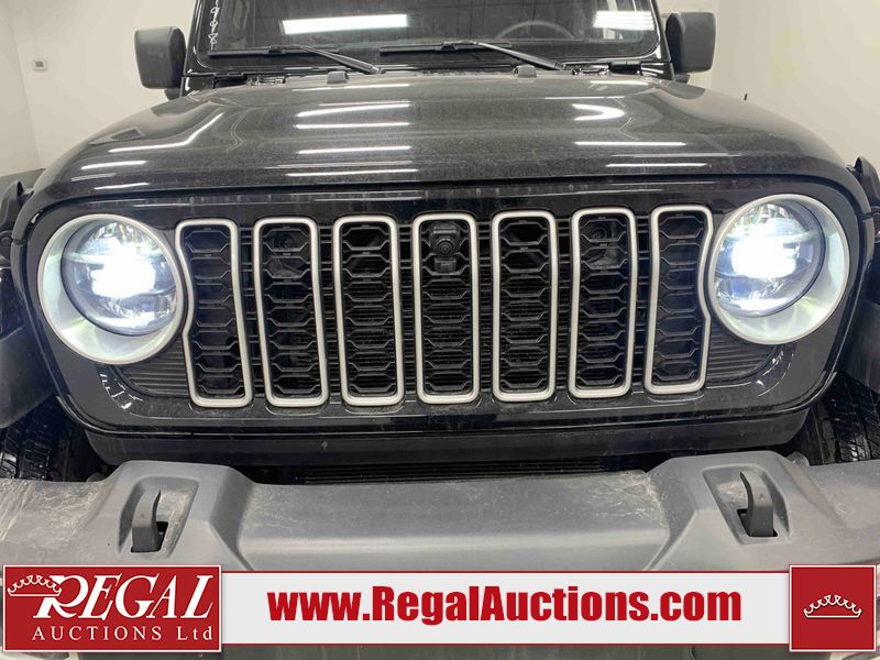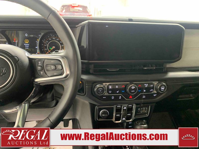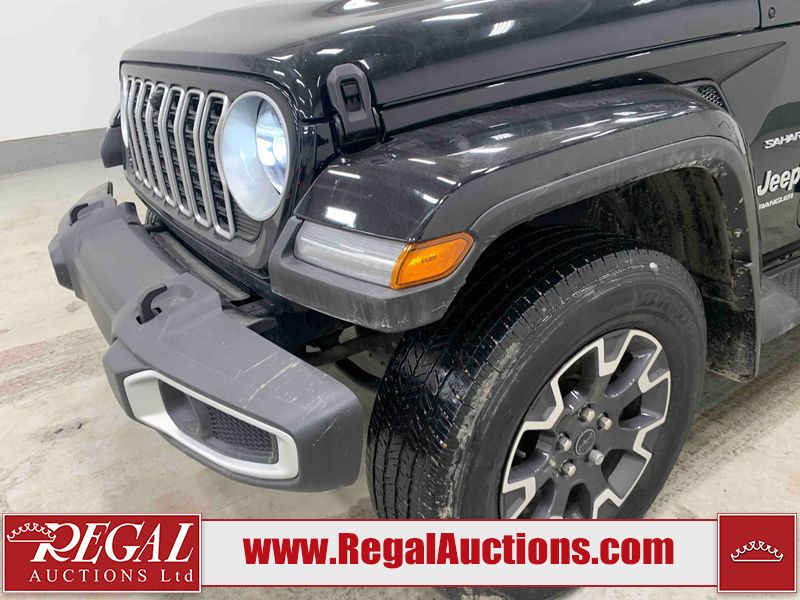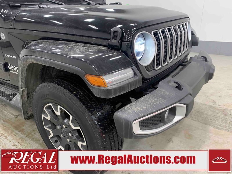 This 2024 JEEP WRANGLER SAHARA 4D UTILITY 4WD 2.0L is powered by a turbocharged 4 cylinder gasoline engine and an automatic transmission. It is equipped with four wheel drive. The SUV has seats for 5 people. The SUV has low mileage for its age. SAHARA is a very popular trim level. The vehicle has high value options including heated seats and a backup camera. The infotainment screen is inoperable. The body looks to be in good condition overall. There are minimal scratches on the roof, left front fender, and right rear fender. There are very minor chips in many areas around the body. There are very minor scratches in many areas around the body. There is very minor dent damage on the left front door. The interior looks to be in good condition overall. The windshield is cracked. All of the tires have lots of tread remaining.