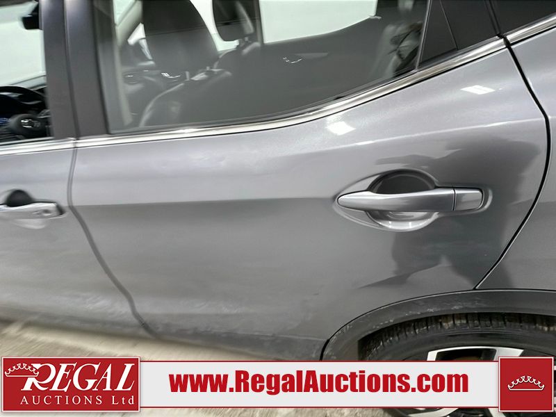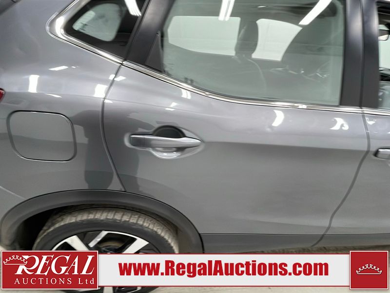 This 2023 NISSAN QASHQAI SL 4D UTILITY AWD 2.0L is powered by a 4 cylinder gasoline engine and an automatic transmission. It is equipped with four wheel drive. The SUV has seats for 5 people. The SUV has low mileage for its age. The vehicle has high value options including a sunroof, leather upholstery, power seats, heated seats, navigation, and a backup camera. The body looks to be in rough condition overall. There is substantial hail on the roof, left rear door, left rear fender, rear door, right rear fender, right rear door, right front door, and right front fender. There is very bad dent damage on the left rear fender. There are scratches on the hood, left front fender, rear bumper, and rear door. There is minimal hail on the hood and left front door. There are slight chips on the rear bumper and rear door. There are very minor scratches in many areas around the body. There are very minor chips in many areas around the body. There is very minor dent damage on the left front door. There is cracked damage to the tail lights. The interior looks to be in good condition overall. The windshield is cracked. The front tires are both worn. The rear tires both have lots of tread remaining.