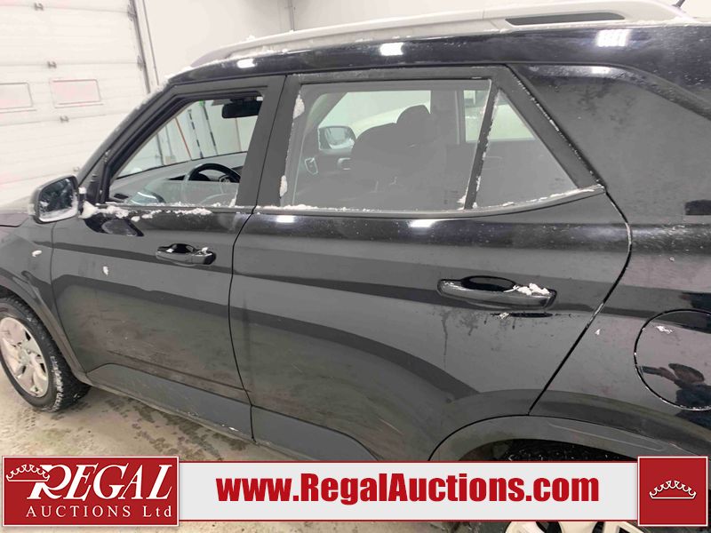 This 2023 HYUNDAI VENUE PREFERRED 4D UTILITY FWD 1.6L is powered by a 4 cylinder gasoline engine and an automatic transmission. The car has seats for 5 people. The car has low mileage for its age. The vehicle has high value options including heated seats and a backup camera. The Maintenance light is on. The body looks to be in rough condition overall. There is extensive hail on the roof and left rear fender. There is pronounced hail on the hood, right rear fender, right rear door, right front door, and right front fender. There are slight scratches on the front bumper, hood, left front fender, left rear fender, and rear bumper. There is dent damage on the left front fender and left front door. There are very minor chips in many areas around the body. There are very minor scratches in many areas around the body. The interior looks to be in fair condition overall. The rear seats are dirty. The carpet is dirty. The left rear window is broken. The windshield is chipped. All of the tires have lots of tread remaining.