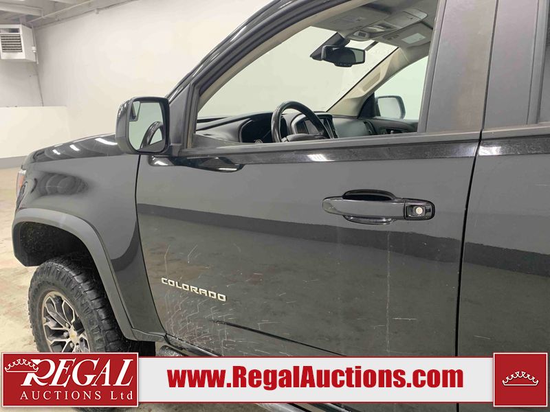This 2022 CHEVROLET COLORADO ZR2 CREW CAB 4WD 3.6L is powered by a 6 cylinder gasoline engine and an automatic transmission. It is equipped with four wheel drive. The truck has seats for 5 people. The truck has high mileage for its age. The vehicle has high value options including leather upholstery, power seats, heated seats, navigation, and a backup camera. The Tire Pressure light is on. The body looks to be in fair condition overall. The rear bumper is cracked. There is dent damage on the rear door, right rear door, and right front door. There is paint peeling on the rear door. There are minor scratches on the right rear fender, right front door, and right front fender. There are very minor chips in many areas around the body. There are very minor scratches in many areas around the body. The interior looks to be in fair condition overall. The driver's seat, passenger seat, and rear seats are dirty. The carpet is dirty. The windshield is cracked. Both the driver's side front tire and the passenger side rear tire are nearly bald and should be replaced. The other tires have lots of tread remaining.