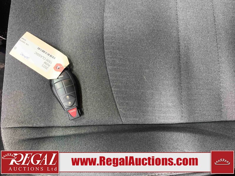 This 2023 RAM 1500 CLASSIC TRADESMAN CREW CAB 4WD 3.6L is powered by a 6 cylinder gasoline engine and an automatic transmission. It is equipped with four wheel drive. The truck has seats for 6 people. The truck has low mileage for its age. The vehicle has high value options including a backup camera. The Check Engine light is on.The body looks to be in good condition overall. There is slight dent damage on the left rear fender, rear bumper, tail gate, and right rear fender. There is slight rust on the rear bumper. There are very minor chips in many areas around the body. There are very minor scratches in many areas around the body. The interior looks to be in fair condition overall. The rear seats are dirty. The carpet is dirty. The windshield is cracked. The rear tires are worn. The front tires have lots of tread remaining.
