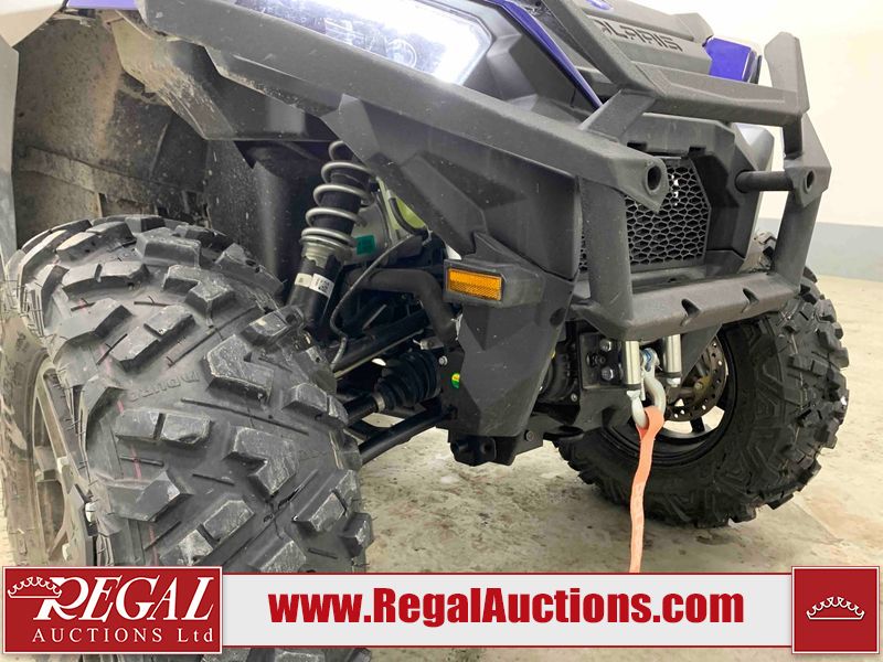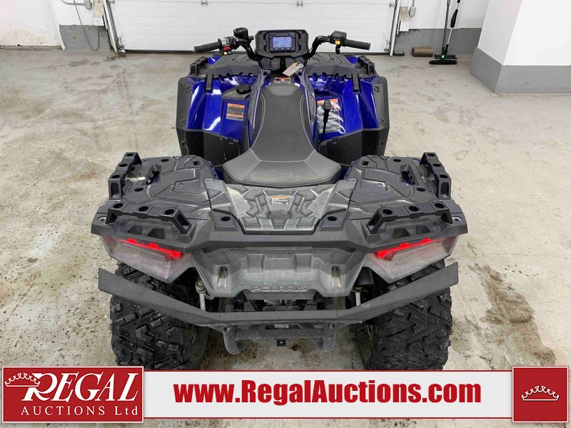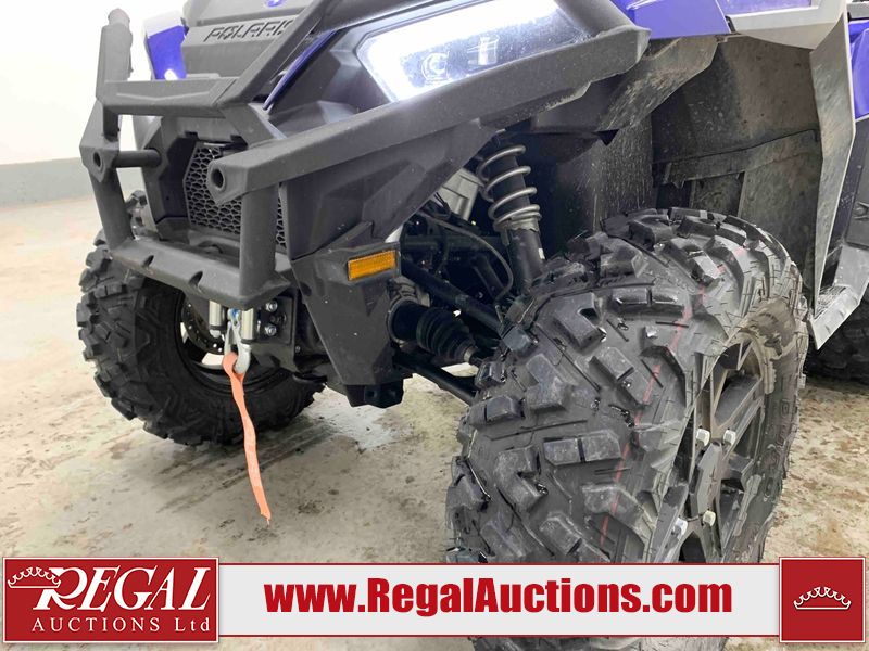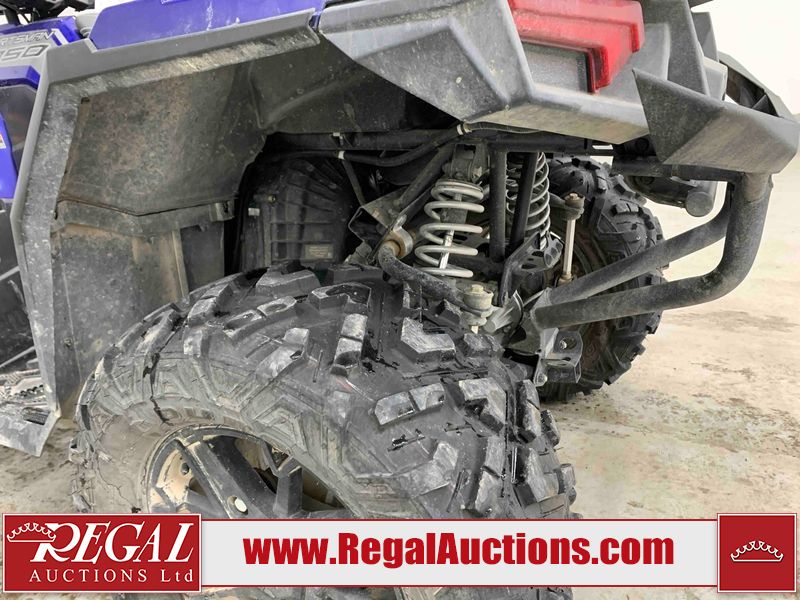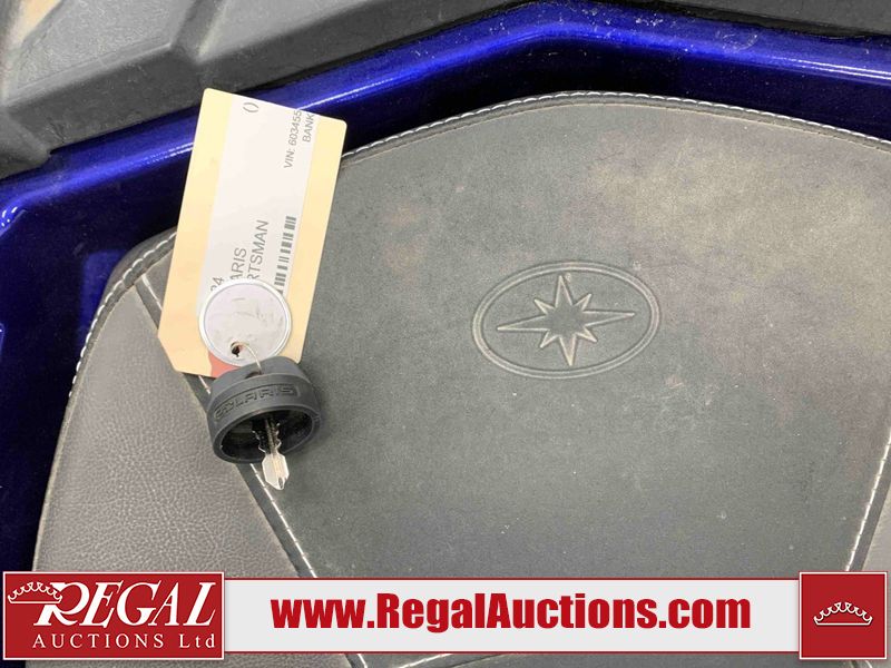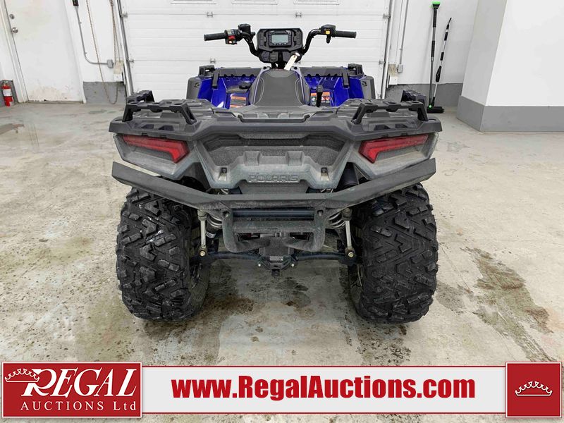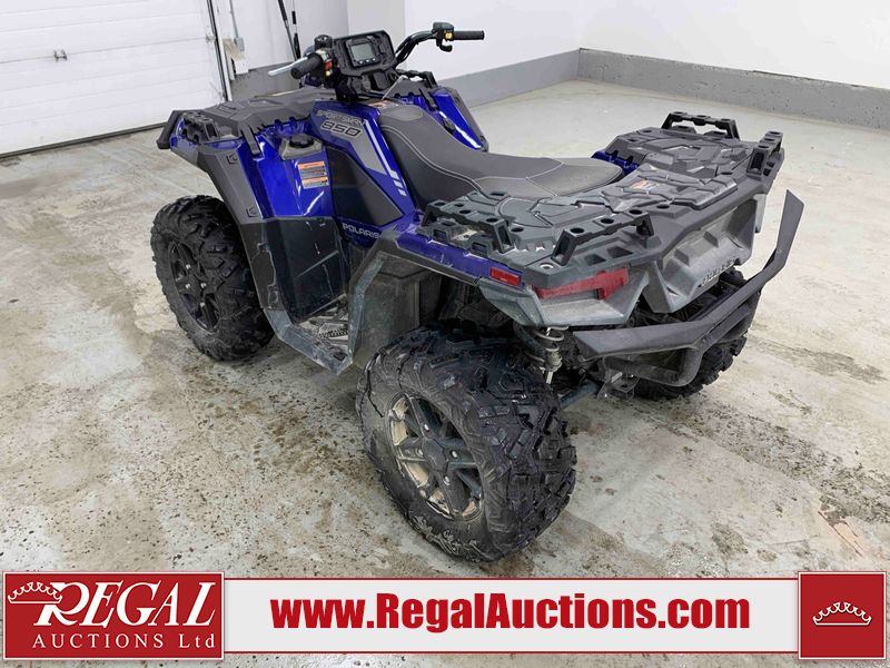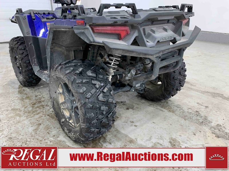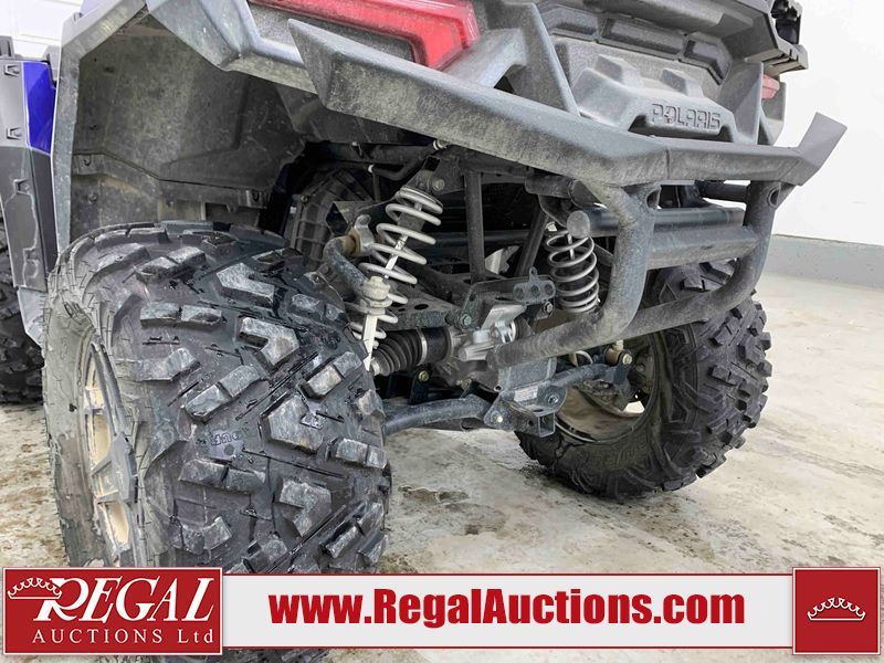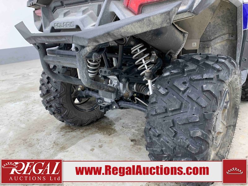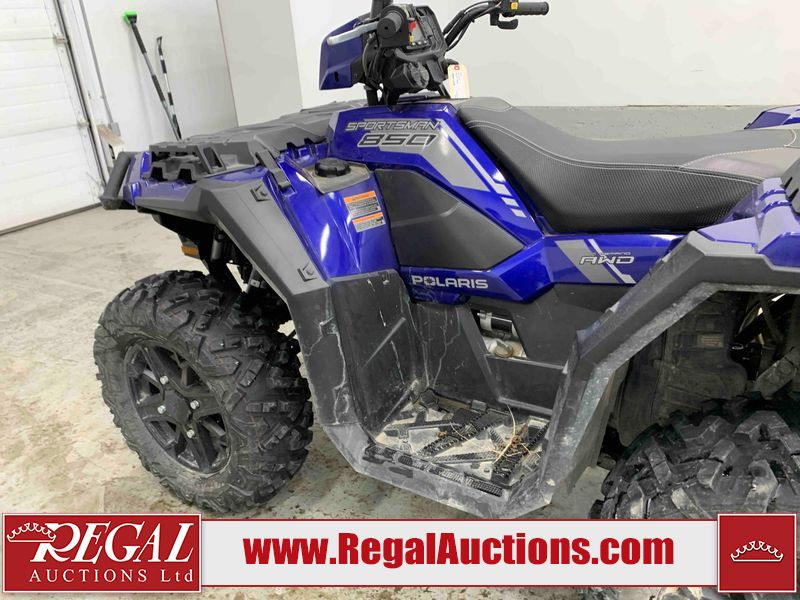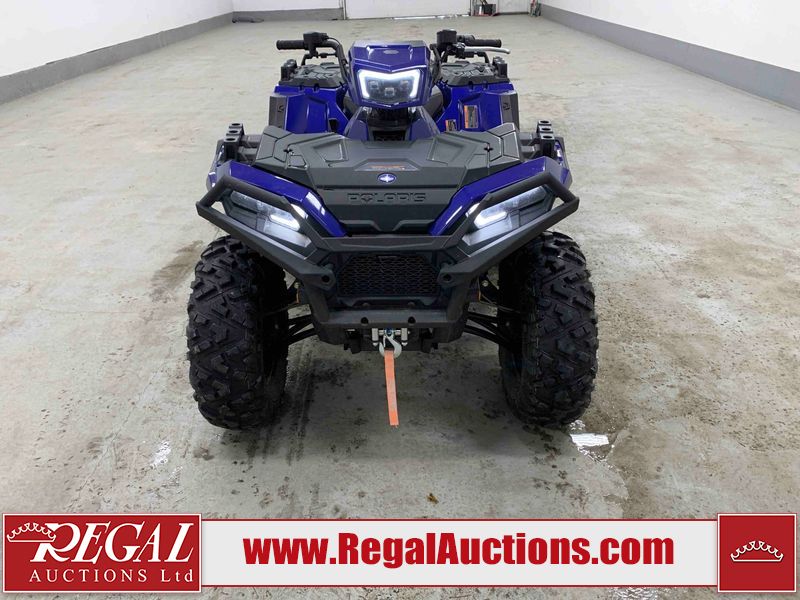This ATV is a 2024 Polaris Sportsman 850. The odometer reads 499 km and 10 engine hours. The exterior is in very good condition overall. Only a few minor scuffs noted, no major damage. The engine starts and runs without a boost. The unit is powered by an 850 cc two cylinder four stroke liquid cooled engine and a continuously variable transmission with a shaft final drive. This unit is equipped with 4X4/2X4 selector switch, and an electric front winch.