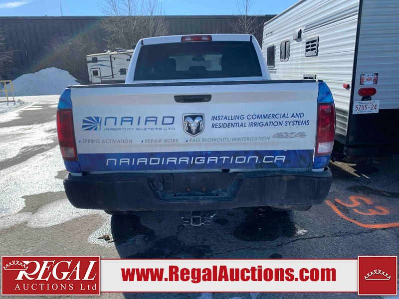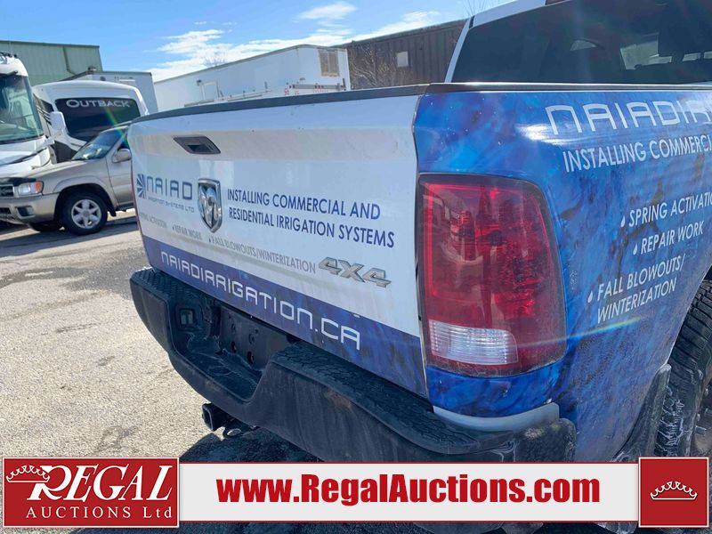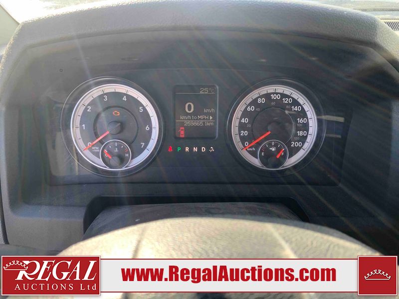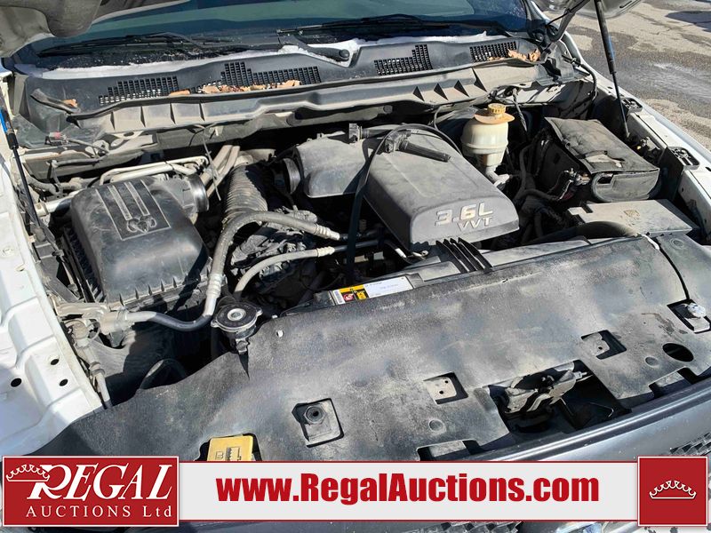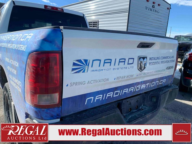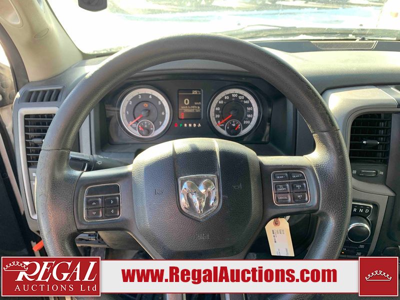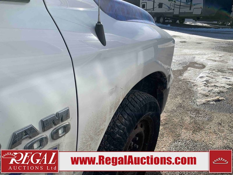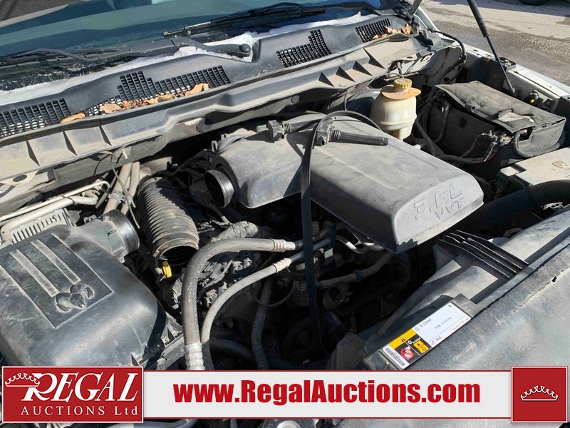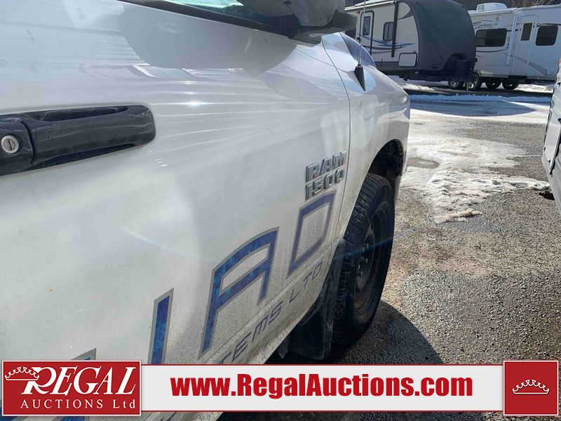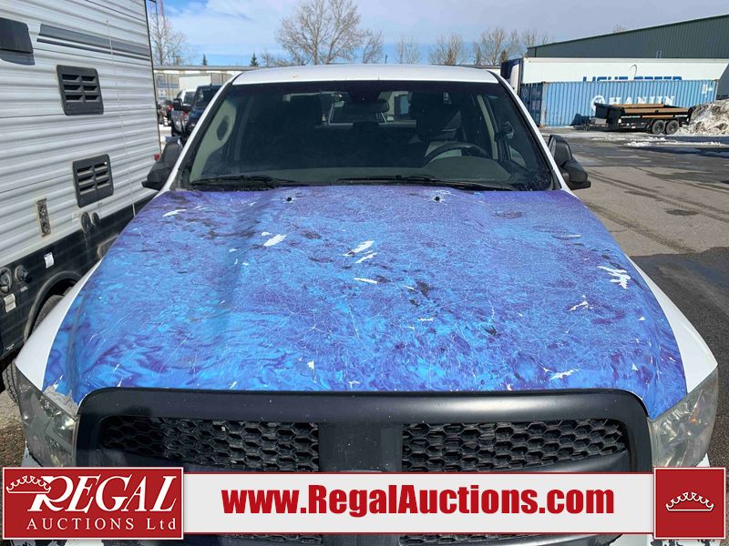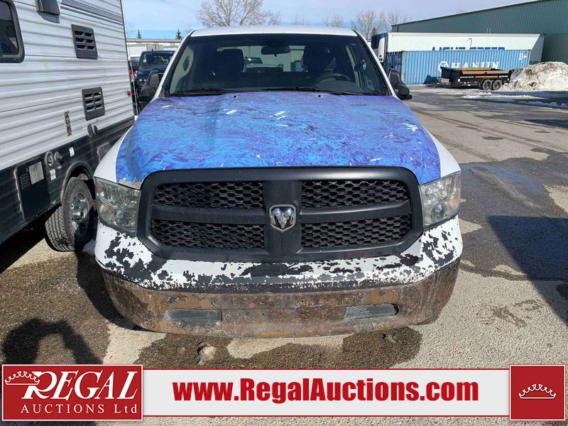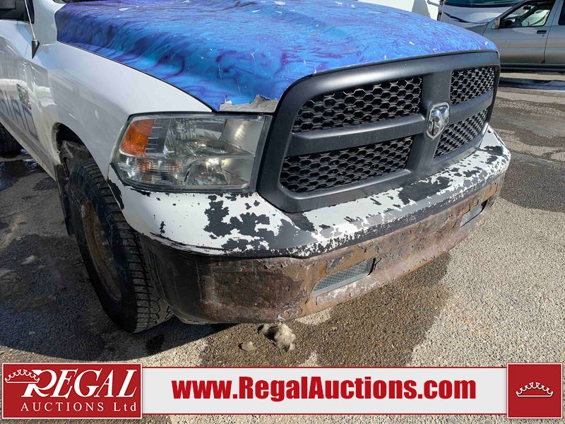This 2014 RAM 1500 ST CREW CAB 4WD is powered by a 3.6 liter 6-cylinder gasoline engine and an automatic transmission. It is equipped with four-wheel drive. The truck has seats for 5 people. The truck has high mileage for its age. The vehicle has high-value options, including power seats. The Check Engine light is on. The battery is dead. The vehicle requires a boost to start and may require a booster pack in order to stay running. The engine coil packs, belt, and intake are disassembled and scattered around the engine bay. The condition of the engine, transmission, and drivetrain cannot be confirmed. Diagnostics may need to be performed to determine any issues. (See Footnote 1) The body looks to be in rough condition overall. There is considerable paint peeling on the front bumper. There is a fair amount of rust on the front bumper. There are chips on the front bumper, hood, and roof. There are scratches on the front bumper and hood. There is minimal paint peeling on the grille, left front door, and right rear fender. There is minimal rust on the roof, left front fender, left front door, left rear door, and left rear fender. There is slight dent damage on the rear bumper, tailgate, and right front fender. There are chips in many areas around the body. There are scratches in many areas around the body. There is dent damage on the right rear door. The interior looks to be in good condition overall. The dashboard, driver's seat, passenger seat, rear seats, and doors are dirty. The carpet is dirty. The windshield is damaged. The passenger side mirror housing is broken. The rear tires are worn. The front tires have lots of tread remaining. This truck is being sold by the fleet department of a corporation or government body. The vehicle will be sold with the following declarations: Fleet Vehicle (See Footnote 2) and Mechanical Problems (See Footnote 1). Footnotes: 1) We've identified some mechanical problems with the vehicle. However, the vehicle has not undergone a mechanical inspection and our findings are not to be considered a complete evaluation of the vehicle's mechanical condition. Review our Buyer Protection Policy to see how Regal Auctions protects you from undisclosed mechanical problems. 2) This vehicle is a commercially owned work vehicle. Regal Auctions Ltd. makes no guarantee or warranty, either express or implied, with respect to the data provided in this report. The information has been provided from the consignor and from sources generally believed to be reliable, however the accuracy of this information cannot be guaranteed by Regal Auctions.