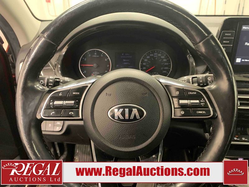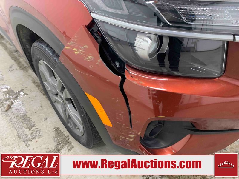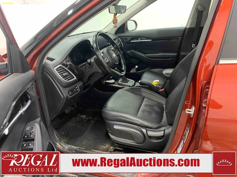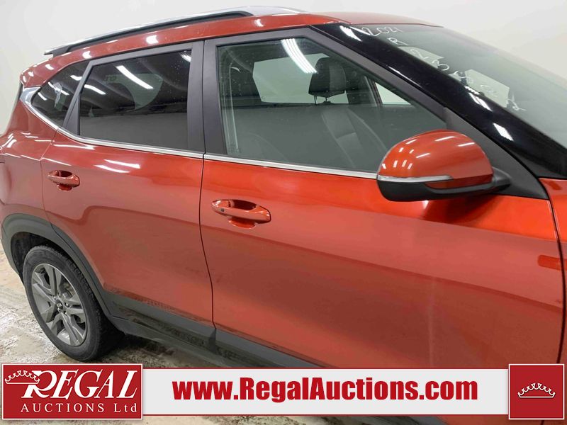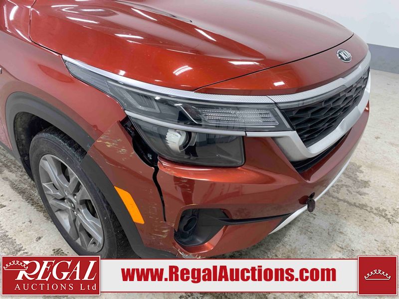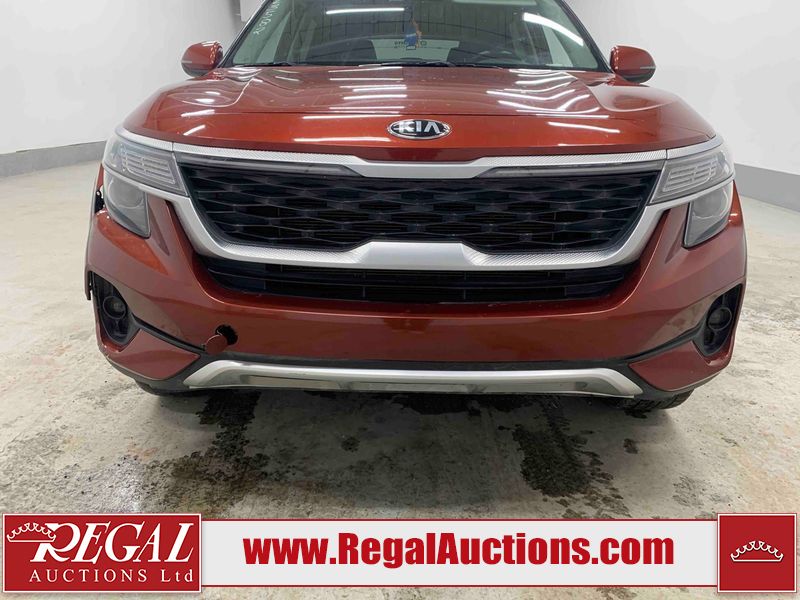 This 2021 KIA SELTOS EX 4D UTILITY AWD 2.0L is powered by a 4 cylinder gasoline engine and an automatic transmission. It is equipped with four wheel drive. The SUV has seats for 5 people. The SUV has low mileage for its age. The vehicle has high value options including leather upholstery, heated seats, a convertible top, and a backup camera. The body looks to be in fair condition overall. The front bumper is broken. There are scratches on the front bumper, left front door, rear bumper, right rear door, right front door, and right front fender. There are slight chips on the front bumper, hood, left front door, left rear fender, rear bumper, rear door, right rear fender, and right rear door. There is minimal dent damage on the left front door. There are very minor chips in many areas around the body. There are very minor scratches in many areas around the body. There is very minor dent damage on the right front fender. The interior looks to be in fair condition overall. The dashboard, driver's seat, passenger seat, rear seats, and doors are dirty. The windshield is chipped. All of the tires are nearly bald and should be replaced.