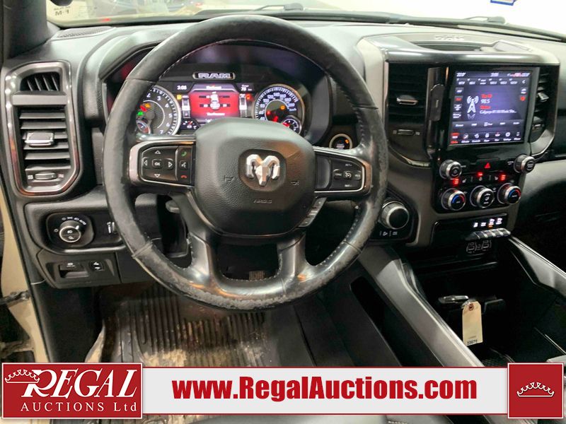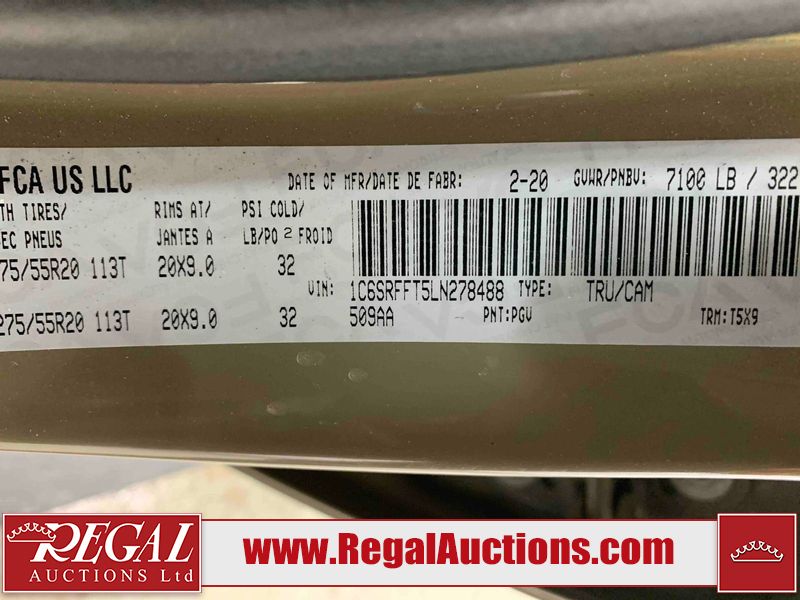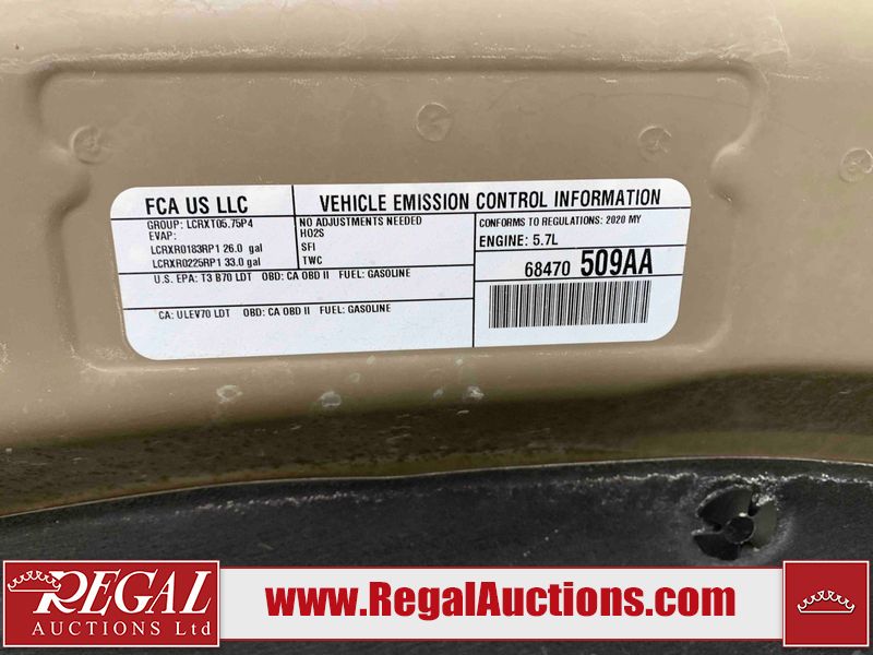 This 2020 RAM 1500 BIG HORN CREW CAB 4WD is powered by a 5.7 liter 8-cylinder gasoline engine and an automatic transmission. It is equipped with four-wheel drive. The truck has seats for 5 people. The truck has high mileage for its age. The vehicle has high-value options, including leather upholstery, power seats, heated seats, navigation, and a backup camera. The body looks to be in good condition overall. There are moderate scratches on the left rear fender. There is a fair amount of dent damage on the tailgate. There is paint peeling on the hood. There is minimal dent damage on the left rear fender. There are slight scratches on the rear bumper, tailgate, and right front door. There are chips in a few areas around the body. There are scratches in some areas around the body. There is dent damage on the right front door. The taillights are broken. The front bumper, right rear fender, and right rear door have been repainted. The interior looks to be in good condition overall. The windshield looks to be in good condition. The signal lens on the passenger mirror is broken. All of the tires have lots of tread remaining. This truck is being sold by an automotive broker. The vehicle will be sold with the following declarations: Auctioneer Announcement "*BLINDSPOT/WIPER INOPERABLE* ", Out of Province (See Footnote 1), Out of Province - AB OVERRIDE (See Footnote 2), and Out of Province - MB (See Footnote 3). Footnotes: 1) The vehicle's last jurisdiction of registration is not Alberta. The purchaser must have the vehicle undergo and pass an Out of Province inspection before it can be registered in Alberta. 2) Out of province inspection for registering the vehicle in Alberta has been completed. 3) The vehicle's last registered jurisdiction is Manitoba. The purchaser must have the vehicle undergo and pass an Out of Province inspection before it can be registered in Alberta. Regal Auctions Ltd. makes no guarantee or warranty, either express or implied, with respect to the data provided in this report. The information has been provided from the consignor and from sources generally believed to be reliable, however the accuracy of this information cannot be guaranteed by Regal Auctions.