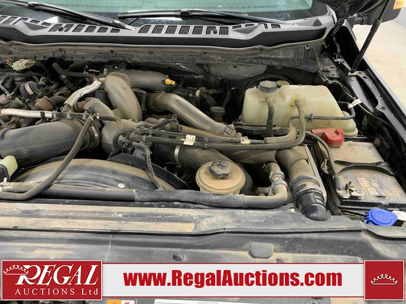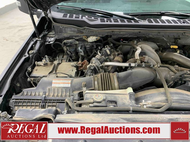 This vehicle has a turbocharged 6.7 liter 8-cylinder diesel engine and an automatic transmission. It is 4x4. It has high mileage. The vehicle has high-value options, including power seats and a backup camera. The body is in good condition. There are chips on the front bumper and hood. There is rust on the front bumper. There is dent damage on the hood. There are scratches on the left rear fender, tailgate, and right rear fender. The interior is in good condition. The windshield is cracked. All of the tires have lots of tread remaining.