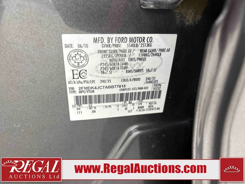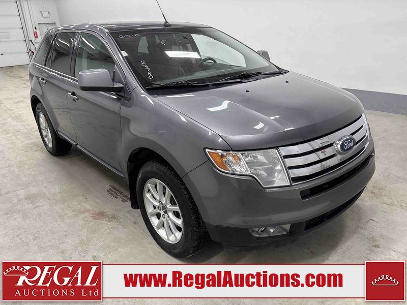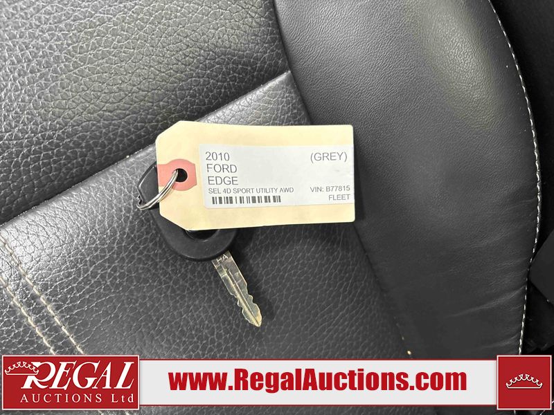 This 2010 FORD EDGE SEL 4D SPORT UTILITY AWD is powered by a 3.5 liter 6-cylinder gasoline engine and an automatic transmission. It is equipped with all-wheel drive. The SUV has seats for 5 people. The SUV has low mileage for its age. The vehicle has high-value options, including a sunroof, leather upholstery, power seats, and heated seats. The body looks to be in fair condition overall. There are a fair amount of scratches on the left front fender and right front fender. The left front fender and right front fender have been repainted poorly. There is moderate rust on the right rear fender. There is rust on the left front fender and left rear fender. There are incidental chips on the left rear door and the right rear door. There are slight scratches on the rear bumper and the right front door. There are chips in many areas around the body. There are scratches in many areas around the body. There is dent damage in a few areas around the body. The interior looks to be in good condition overall. The windshield is chipped. The passenger side front tire and the driver's side rear tire are both worn. The other tires have lots of tread remaining. This SUV is being sold by the fleet department of a corporation or government body. The vehicle will be sold with the following declarations: Fleet Vehicle (See Footnote 1). Footnotes: 1) This vehicle is a commercially owned work vehicle. Regal Auctions Ltd. makes no guarantee or warranty, either express or implied, with respect to the data provided in this report. The information has been provided from the consignor and from sources generally believed to be reliable, however the accuracy of this information cannot be guaranteed by Regal Auctions.