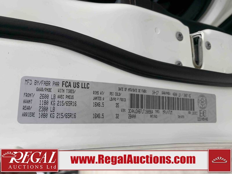 This 2018 JEEP COMPASS 4D UTILITY is powered by a 2.4 liter 4-cylinder gasoline engine and an automatic transmission. It is equipped with four-wheel drive. The SUV has seats for 5 people. The mileage is average considering the SUV's age. The body looks to be in good condition overall. There is noteworthy paint overspray on the rear door. There is incidental dent damage on the rear door. There are chips on the front bumper. There are scratches in many areas around the body. There is dent damage on the hood. The interior looks to be in good condition overall. The windshield is cracked. All of the tires have lots of tread remaining. This SUV is being sold by an automotive broker. The vehicle will be sold with the following declarations: Claims Total $5000 - $9999 (See Footnote 1). Footnotes: 1) The vehicle's total recorded insurance claims history is between $5,000 - $9,999. This is the amount of money that was paid out by an insurance company for repairs to cover claims against the vehicle's insurance policy. This information is provided by CarFax. Regal Auctions Ltd. makes no guarantee or warranty, either express or implied, with respect to the data provided in this report. The information has been provided from the consignor and from sources generally believed to be reliable, however the accuracy of this information cannot be guaranteed by Regal Auctions.
