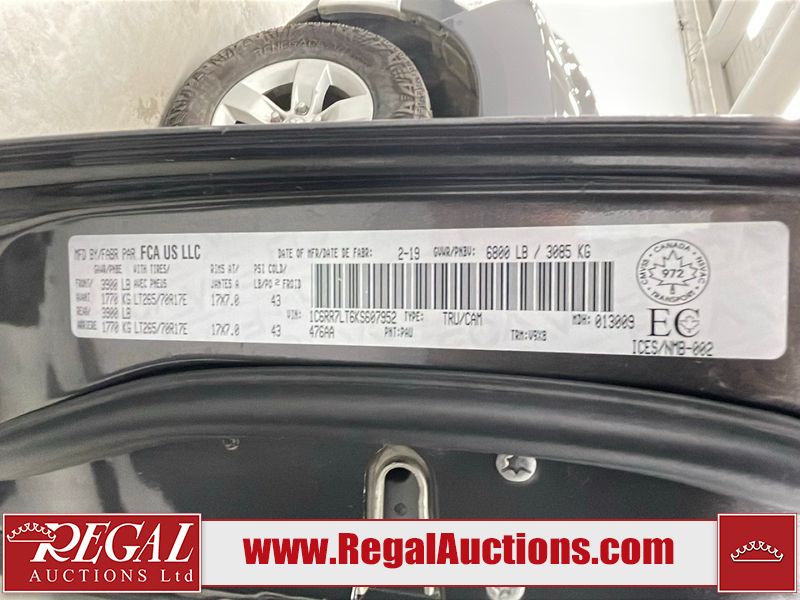 This 2019 RAM 1500 CLASSIC SLT CREW CAB 4WD 5.7L is powered by a 8 cylinder gasoline engine and an automatic transmission. It is equipped with four wheel drive. The truck has seats for 6 people. The truck has low mileage for its age. The vehicle has high value options including a backup camera. The vehicle has some mechanical problems. The battery is dead. The vehicle requires a boost to start and may require a booster pack in order to stay running. The body looks to be in fair condition overall. There is paint peeling on the hood. There is hail on the hood and left rear fender. There are minimal scratches on the left rear fender. There is slight dent damage on the tail gate and right rear door. There are very minor chips in many areas around the body. There are very minor scratches in many areas around the body. The interior looks to be in good condition overall. The carpet is dirty. The windshield looks to be in good condition. Both rear tires are nearly bald and should be replaced. The front tires have lots of tread remaining.