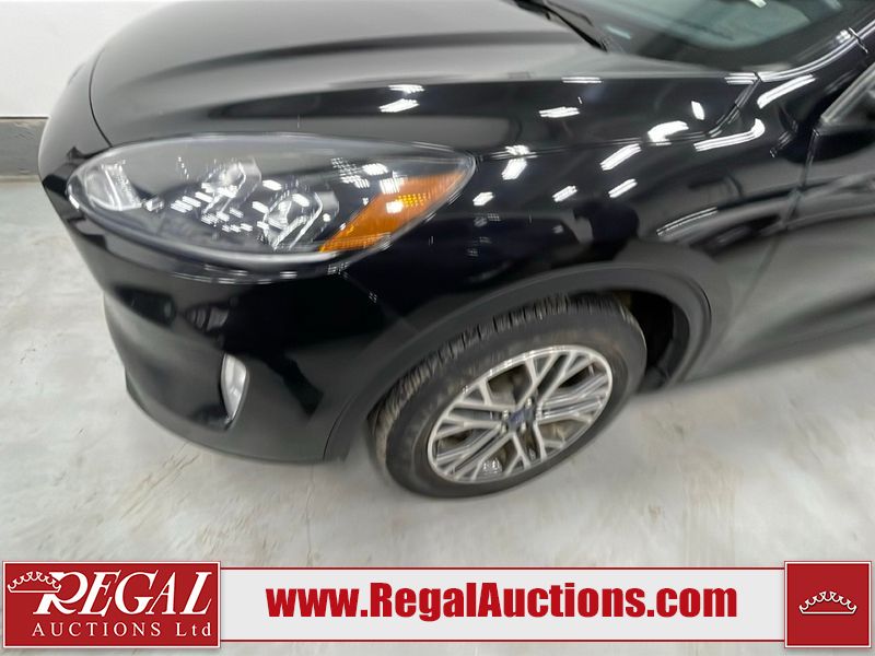 This 2021 FORD ESCAPE SEL 4D UTILITY AWD 1.5L is powered by a turbocharged cylinder 3 gasoline engine and an automatic transmission. It is equipped with four wheel drive. The SUV has seats for 5 people. The mileage is average considering the SUV's age. The vehicle has high value options including a sunroof, leather upholstery, power seats, heated seats, navigation, a backup camera, and a power lift gate. The body looks to be in fair condition overall. There are chips on the hood, roof, left front fender, left front door, and right front fender. There are minimal scratches on the left rear door and rear door. There are very minor chips in many areas around the body. There are very minor scratches in many areas around the body. There is very minor dent damage in a few areas around the body. The interior looks to be in fair condition overall. The dashboard, driver's seat, passenger seat, rear seats, and doors are dirty. The carpet is dirty. The windshield is chipped. The rear tires are worn. The front tires have lots of tread remaining.