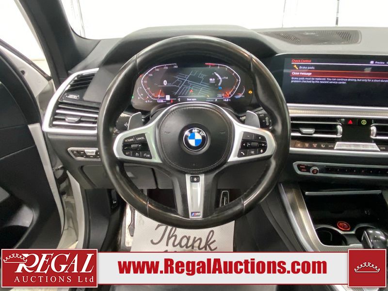 This 2019 BMW X5 XDRIVE40I 4D UTILITY AWD 3.0L is powered by a turbocharged 6 cylinder gasoline engine and an automatic transmission. It is equipped with four wheel drive. The SUV has seats for 7 people. The mileage is average considering the SUV's age. The vehicle has high value options including a sunroof, leather upholstery, power seats, heated seats, navigation, a backup camera, and a power lift gate. The Check Engine and Brake System lights are on. The body looks to be in fair condition overall. The front bumper is cracked. There are very bad scratches on the front bumper. There are minor chips on the front bumper, grille, and hood. There are incidental scratches on the hood. There is incidental dent damage on the rear bumper. There are very minor chips in many areas around the body. There are very minor scratches in many areas around the body. The interior looks to be in fair condition overall. The dashboard, driver's seat, passenger seat, rear seats, and doors are dirty. The passenger side mirror housing is broken. All of the tires are nearly bald and should be replaced.
