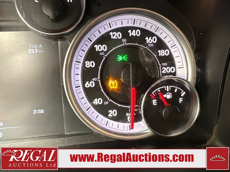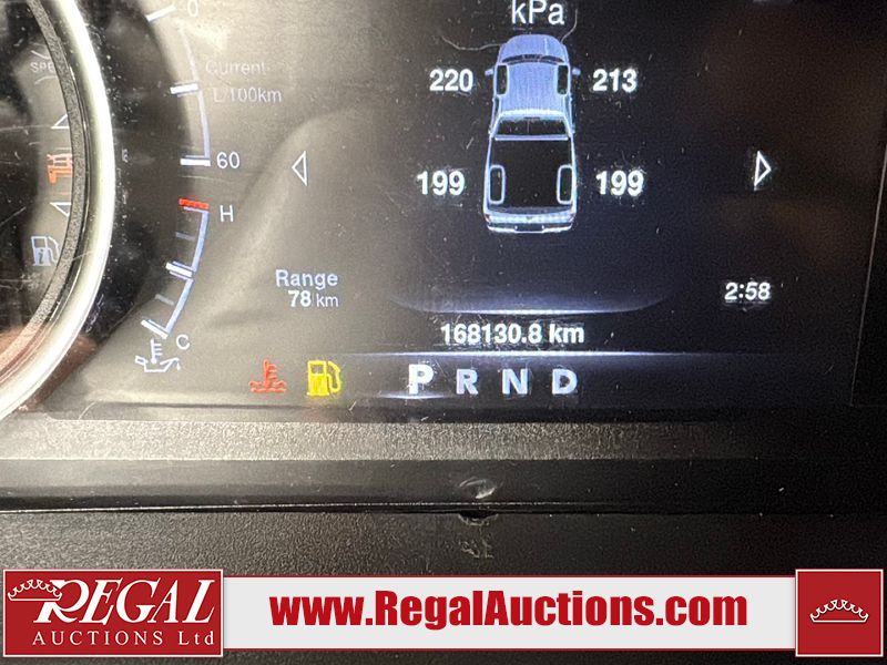 This vehicle has a 5.7 liter 8-cylinder gasoline engine and an automatic transmission. It is 4x4. It has high mileage. The vehicle has high-value options, including navigation and a backup camera. The Tire Pressure light is on. The body is in rough condition. The grille is cracked. There is a fair amount of rust on the rear bumper and tailgate. There are chips on the front bumper, left front fender, and left rear fender. There is minimal rust on the left front fender and left rear fender. There is incidental dent damage on the left rear fender, rear bumper, and tailgate. The tailgate is broken. The interior is in good condition. The windshield is cracked. The driver's side front tire is nearly bald and should be replaced. The other tires are okay.