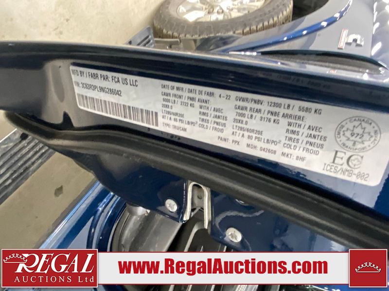 This 2022 RAM 3500 LIMITED MEGA CAB 4WD 6.7L is powered by a turbocharged 6 cylinder diesel engine and an automatic transmission. It is equipped with four wheel drive. The truck has seats for 5 people. The truck has low mileage for its age. LIMITED is a very popular trim level. The vehicle has high value options including leather upholstery, power seats, heated seats, navigation, and a backup camera. The body looks to be in good condition overall. There are very minor chips in a few areas around the body. There are very minor scratches in many areas around the body. The interior looks to be in good condition overall. The windshield looks to be in good condition. All of the tires have lots of tread remaining.