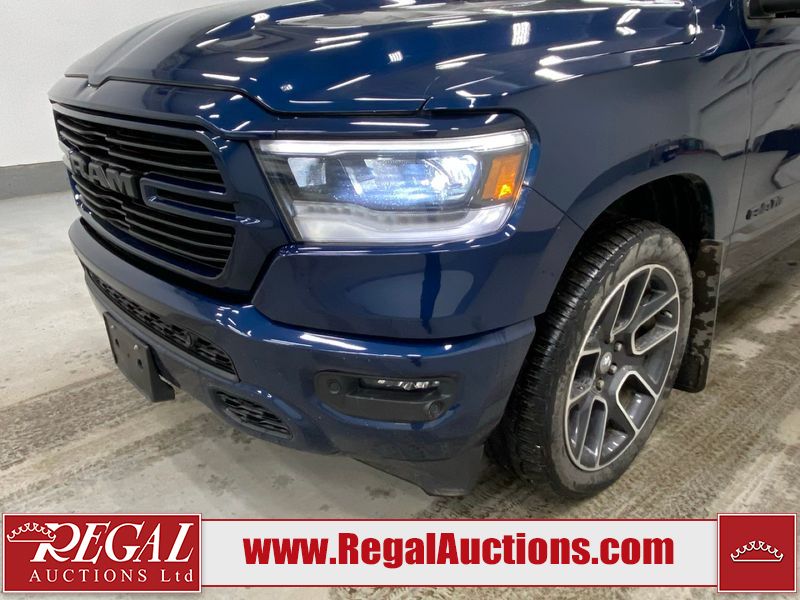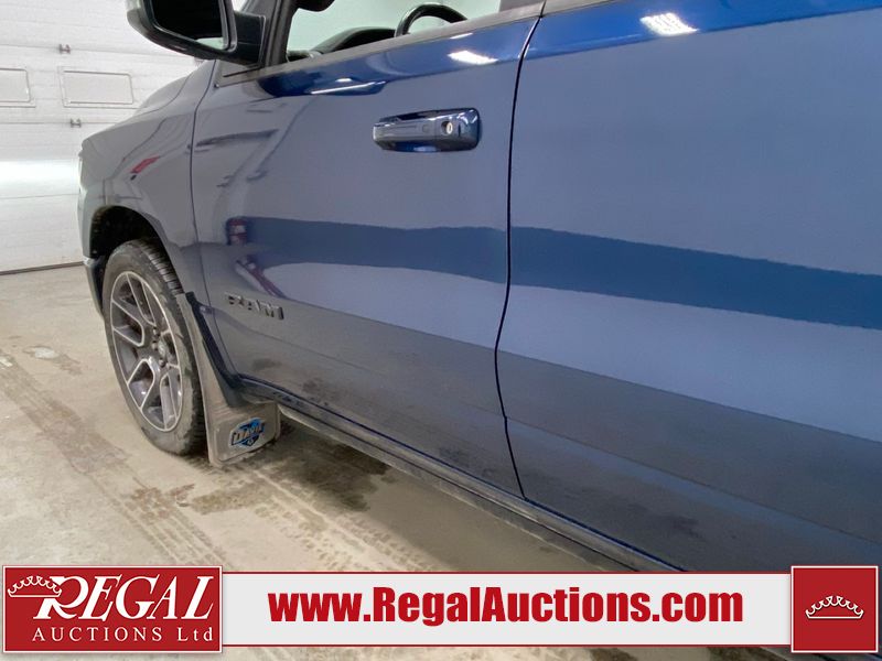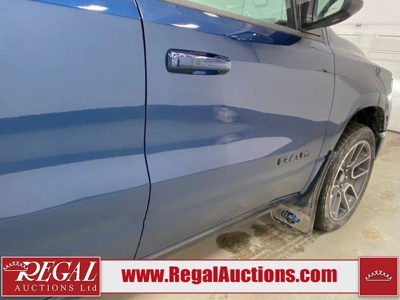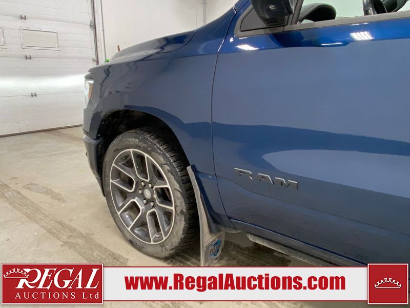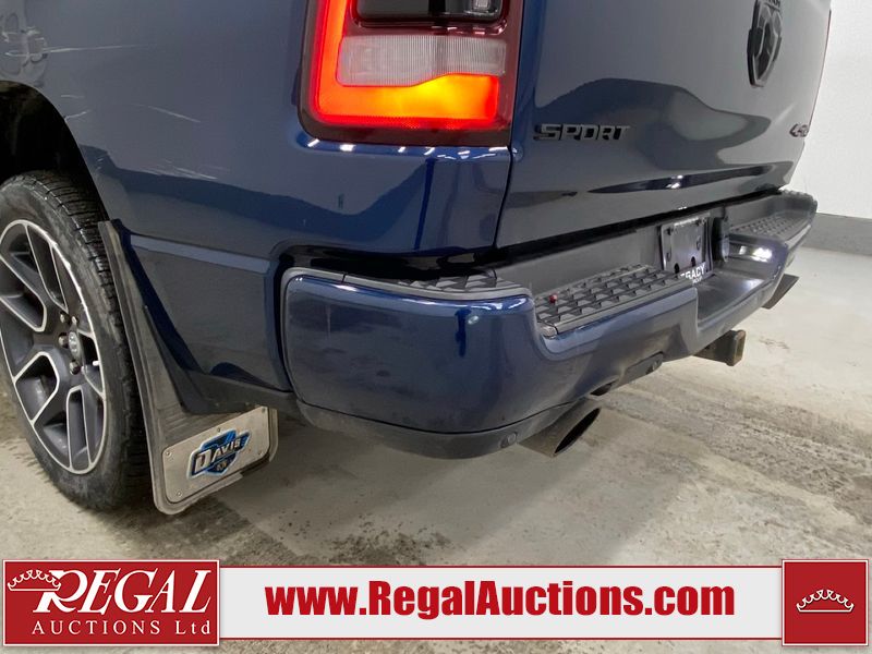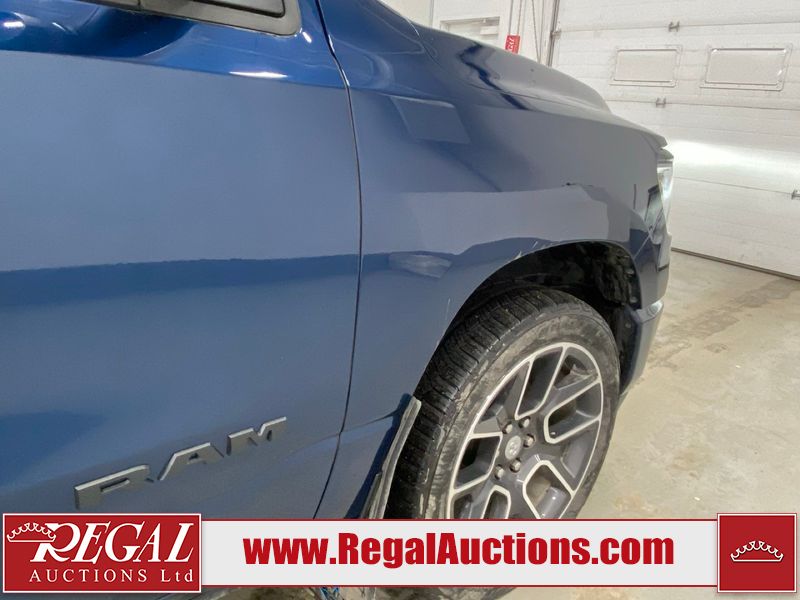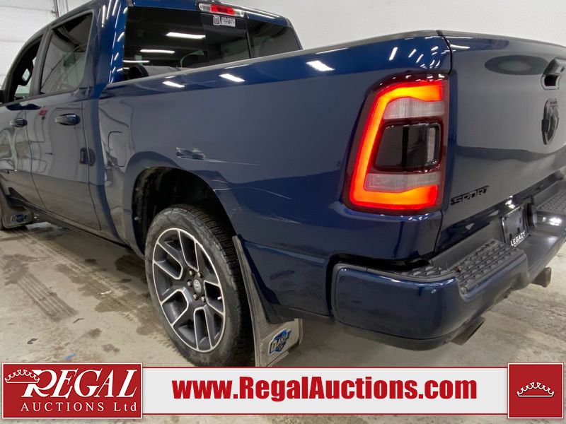 This 2021 RAM 1500 SPORT CREW CAB SWB 4WD 5.7L is powered by a 8 cylinder gasoline engine and an automatic transmission. It is equipped with four wheel drive. The truck has seats for 5 people. The truck has low mileage for its age. The vehicle has high value options including leather upholstery, power seats, heated seats, navigation, and a backup camera. The body looks to be in fair condition overall. There are noteworthy scratches on the left rear fender. There are minor chips on the front bumper, hood, rear bumper, and tail gate. There is dent damage on the left rear fender and rear bumper. There are scratches on the right rear door. There are very minor scratches in many areas around the body. There are very minor chips in many areas around the body. The interior looks to be in fair condition overall. The dashboard, driver's seat, passenger seat, rear seats, and doors are dirty. The windshield looks to be in good condition. Both rear tires are nearly bald and should be replaced. The front tires have lots of tread remaining.