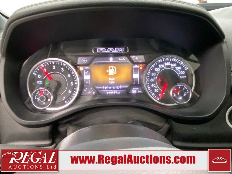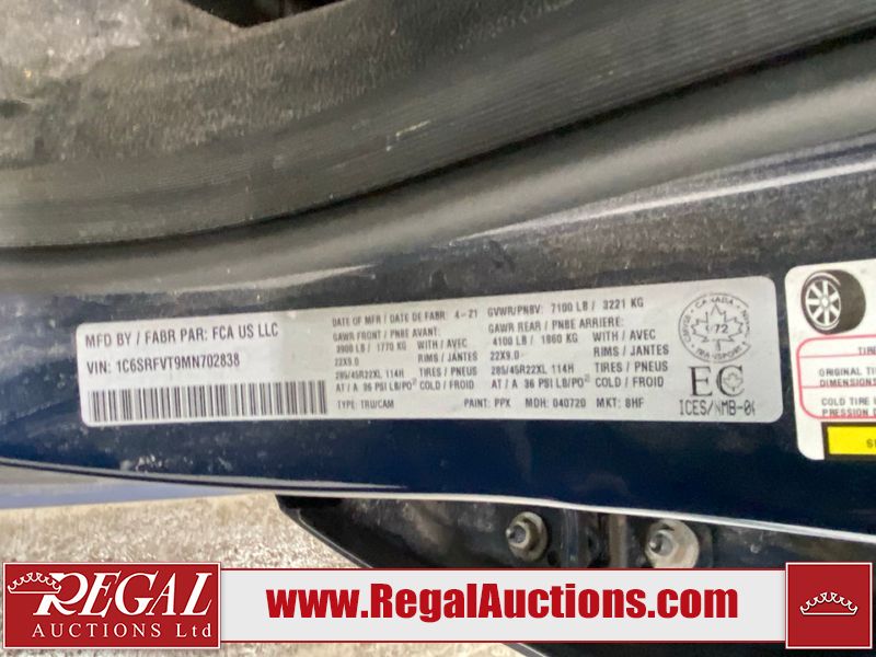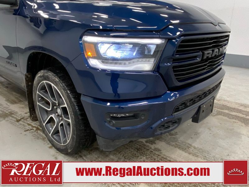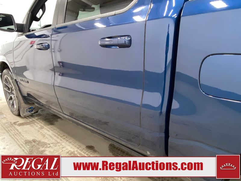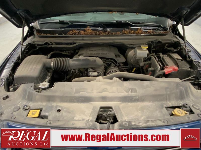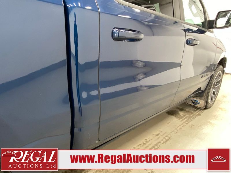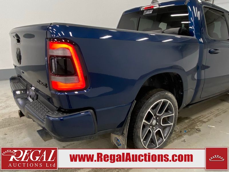 This 2021 RAM 1500 SPORT CREW CAB SWB 4WD 5.7L is powered by a 8 cylinder gasoline engine and an automatic transmission. It is equipped with four wheel drive. The truck has seats for 5 people. The truck has low mileage for its age. The vehicle has high value options including leather upholstery, power seats, heated seats, navigation, and a backup camera. The body looks to be in fair condition overall. There are noteworthy scratches on the left rear fender. There are minor chips on the front bumper, hood, rear bumper, and tail gate. There is dent damage on the left rear fender and rear bumper. There are scratches on the right rear door. There are very minor scratches in many areas around the body. There are very minor chips in many areas around the body. The interior looks to be in fair condition overall. The dashboard, driver's seat, passenger seat, rear seats, and doors are dirty. The windshield looks to be in good condition. Both rear tires are nearly bald and should be replaced. The front tires have lots of tread remaining.