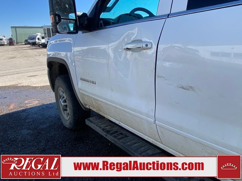 This 2019 GMC SIERRA 2500 SLE DOUBLE CAB SWB 4WD is powered by a 6.0L 8 cylinder gasoline engine and an automatic transmission. It is equipped with four wheel drive. The truck has seats for 5 people. The vehicle has high value options including a backup camera. There are some mechanical issues. The vehicle does not start and is physically not drivable. The battery is dead. This unit does not get power with external power applied. The body looks to be in rough condition overall. There is considerable dent damage on the left front door, left rear door, left rear fender, and right rear fender. The rear bumper is broken. The fascia is broken on the front bumper. The grille is cracked. There is minor hail on the hood and roof. There is dent damage on the left front fender and tail gate. There are incidental scratches on the left front door and left rear door. There is paint peeling on the left rear fender. There are very minor chips in many areas around the body. There are very minor scratches in many areas around the body. There is very minor dent damage in a few areas around the body. The tail lights are broken. The tail lights don't work. The interior looks to be in fair condition overall. The dashboard, driver's seat, passenger seat, rear seats, and doors are dirty. The carpet is dirty. The roof liner is dirty. The windshield is cracked. All of the tires are nearly bald and should be replaced. The left rear tire is damaged.