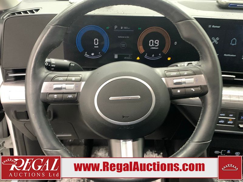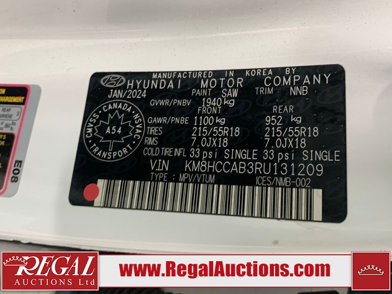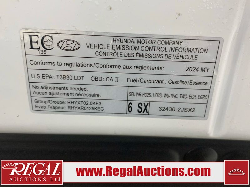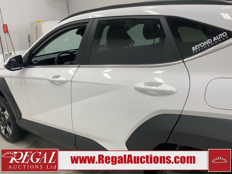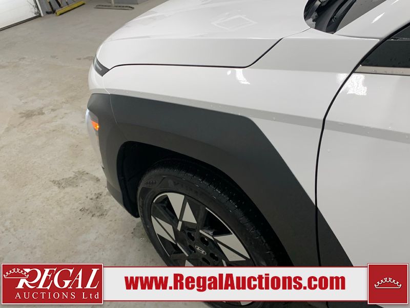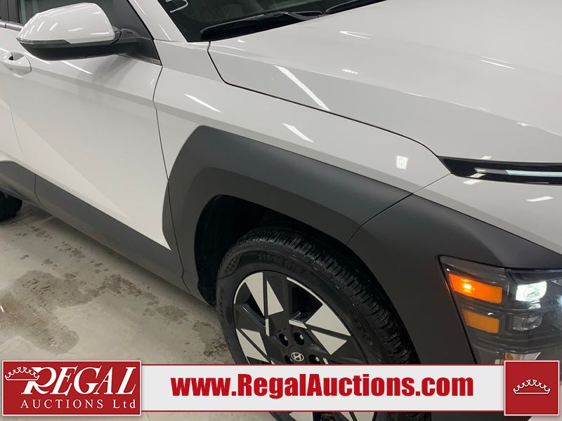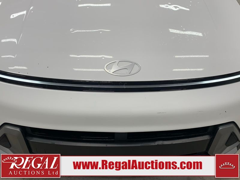 This 2024 HYUNDAI KONA PREFERRED W/TREND 4D UTILITY AWD 2.0L is powered by a 4 cylinder gasoline engine and an automatic transmission. It is equipped with four wheel drive. The SUV has seats for 5 people. The mileage is average considering the SUV's age. The vehicle has high value options including leather upholstery, heated seats, a backup camera, and a power lift gate. The body looks to be in rough condition overall. There is considerable hail on the hood, roof, left front fender, left front door, left rear door, left rear fender, rear door, and right front fender. There are chips on the front bumper and hood. There are scratches on the front bumper. There is incidental dent damage on the front bumper. There are very minor chips in many areas around the body. There are very minor scratches in many areas around the body. The interior looks to be in good condition overall. The windshield is chipped. The tires are all worn.