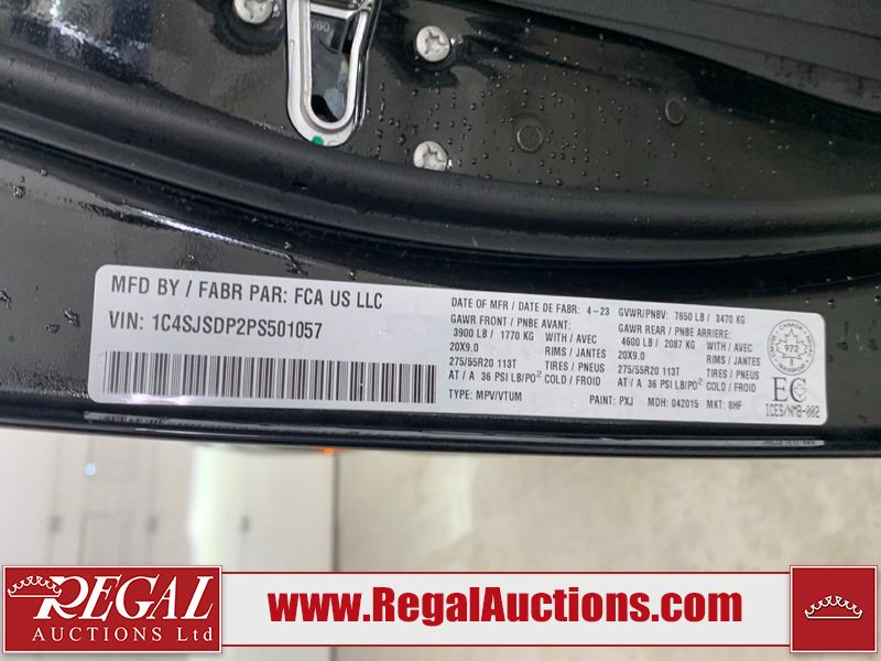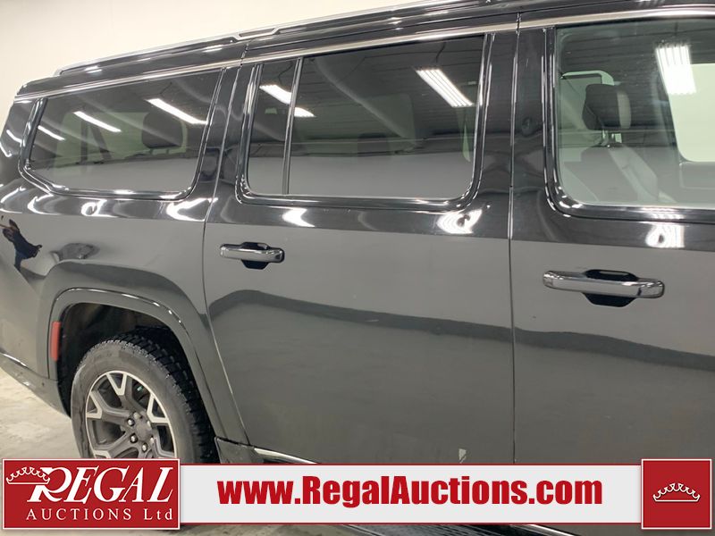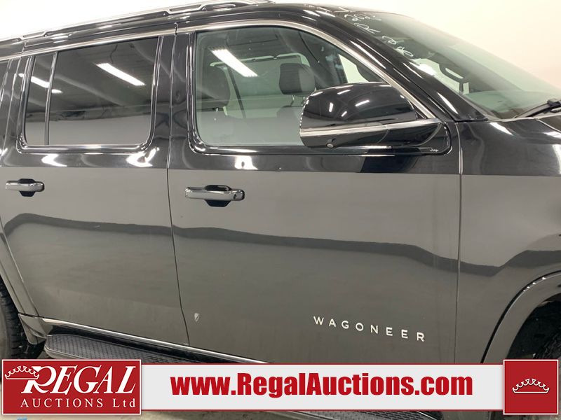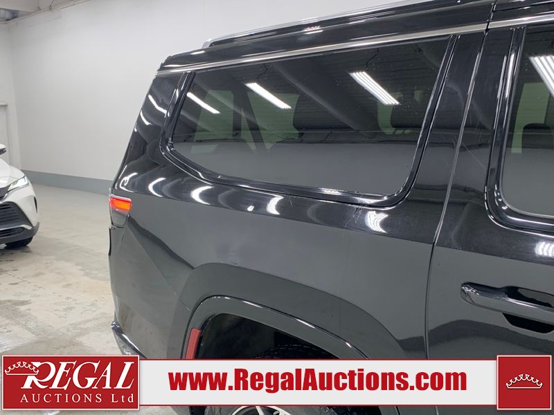 This 2023 JEEP WAGONEER L SERIES 3 4D UTILITY 4WD 3.0L is powered by a turbocharged 6 cylinder gasoline engine and an automatic transmission. It is equipped with four wheel drive. The SUV has seats for 7 people. The SUV has low mileage for its age. The vehicle has high value options including leather upholstery, power seats, heated seats, navigation, and a backup camera. The body looks to be in rough condition overall. There is considerable hail on the hood, roof, right rear fender, right rear door, and right front door. There are minor scratches on the front bumper, hood, and right front fender. There are very minor chips in many areas around the body. There are very minor scratches in many areas around the body. The interior looks to be in good condition overall. The carpet is dirty. The windshield is cracked. All of the tires have lots of tread remaining.