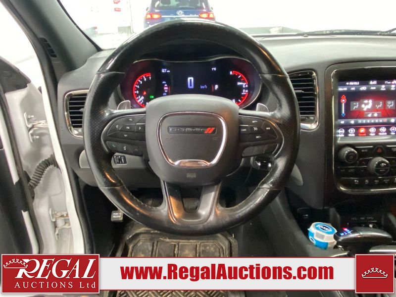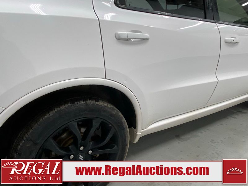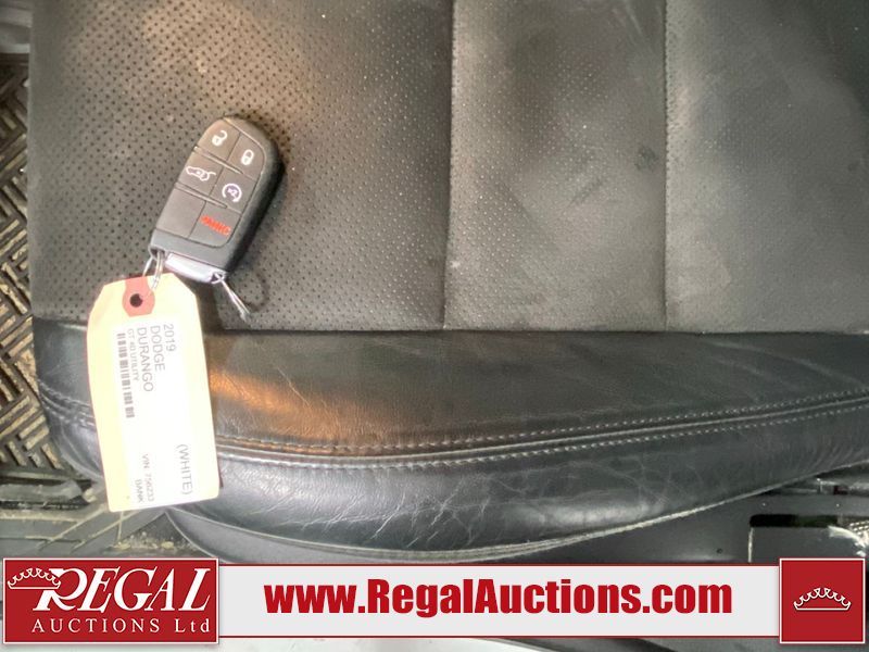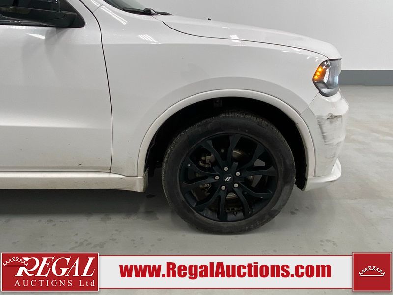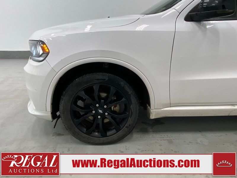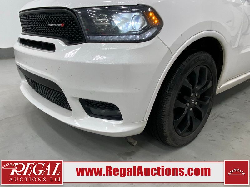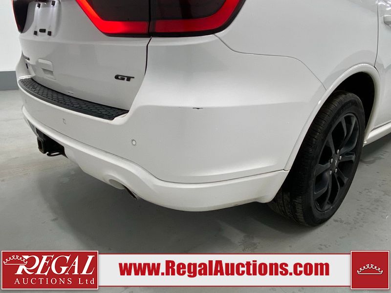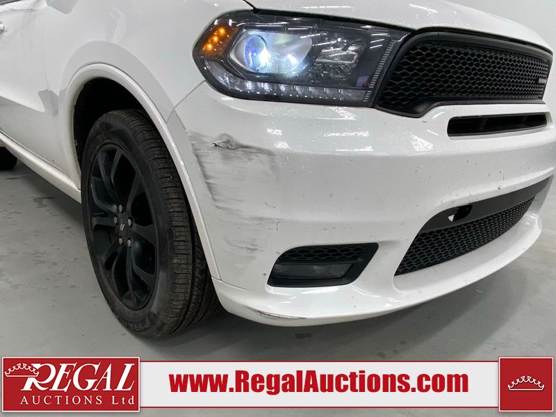 This 2019 DODGE DURANGO GT 4D UTILITY AWD 3.6L is powered by a 6 cylinder gasoline engine and an automatic transmission. It is equipped with four wheel drive. The SUV has seats for 7 people. The mileage is average considering the SUV 's age. The odometer is in miles and its reading, 103,281 miles, translates into 165,249 kilometers. GT is a very popular trim level. The vehicle has high value options including leather upholstery, power seats, heated seats, navigation, a backup camera, and a power lift gate. The body looks to be in good condition overall. The fascia is broken on the front bumper. There are minor chips on the front bumper. The front bumper has parts missing. There is dent damage on the left rear fender. There are scratches on the rear door. There are very minor scratches in many areas around the body. There are very minor chips in many areas around the body. There is very minor dent damage in a few areas around the body. The interior looks to be in good condition overall. The carpet is dirty. The windshield is chipped. All of the tires have lots of tread remaining.