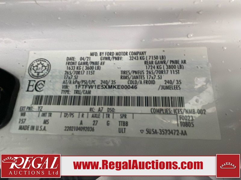 This 2021 FORD F-150 XLT CREW CAB 4WD SWB 5.0L is powered by a 8 cylinder gasoline engine and an automatic transmission. It is equipped with four wheel drive. The truck has seats for 6 people. The truck has high mileage for its age. The vehicle has high value options including a backup camera. The vehicle has some mechanical problems. The engine is making abnormal noise. There is a fluttering noise coming from under the vehicle. The body looks to be in rough condition overall. There is misaligned damage to the front bumper. The left rear door has been repainted poorly. There is dent damage to the grille. There is some paint peeling on the tail gate. There are minor chips on the front bumper, grille, hood, left front fender, left front door, left rear fender, tail gate, right rear fender, right front door, and right front fender. There is slight dent damage on the front bumper. There are scratches on the front bumper and right rear fender. There is paint peeling on the grille. There are very minor scratches in many areas around the body. There are very minor chips in some areas around the body. There is very minor dent damage in a few areas around the body. The left tail light is broken. The interior looks to be in rough condition overall. The driver's seat, passenger seat, and rear seats are stained. The driver's seat, passenger seat, and rear seats are dirty. The carpet is dirty. The windshield is chipped. All of the tires have lots of tread remaining. The left rear and right front rims are different than the others.