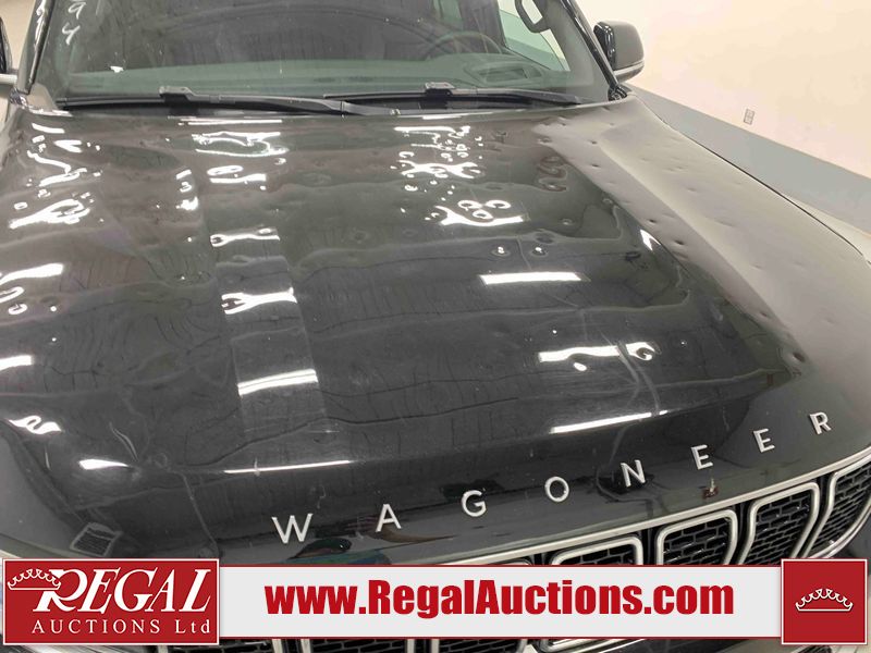 This 2023 JEEP WAGONEER SERIES 3 4D UTILITY 4WD 3.0L is powered by a turbocharged 6 cylinder gasoline engine and an automatic transmission. It is equipped with four wheel drive. The SUV has seats for 8 people. The SUV has high mileage for its age. The vehicle has high value options including leather upholstery, power seats, heated seats, navigation, and a backup camera. The body looks to be in rough condition overall. There is severe hail on the hood, roof, rear door, right rear fender, right rear door, right front door, and right front fender. There are minor chips on the front bumper and grille. There are slight scratches on the front bumper, hood, left front fender, left front door, left rear door, rear bumper, rear door, right rear door, right front door, and right front fender. There is incidental dent damage on the left front fender. There are very minor chips in many areas around the body. There are very minor scratches in a few areas around the body. There is very minor dent damage in a few areas around the body. The interior looks to be in fair condition overall. The driver's seat is worn. The carpet is dirty. The windshield is chipped. All of the tires have lots of tread remaining.
