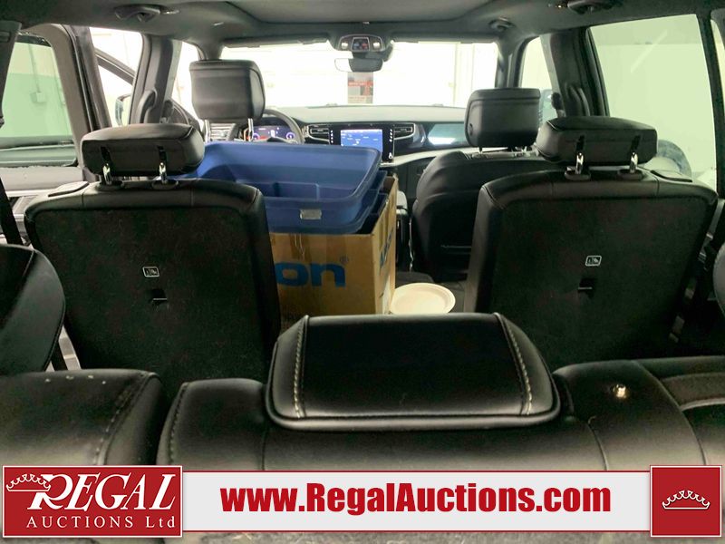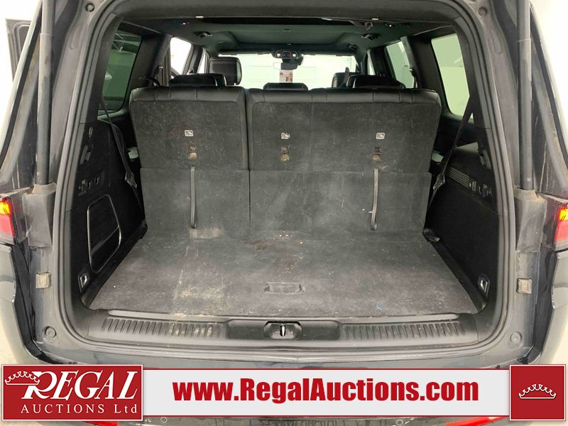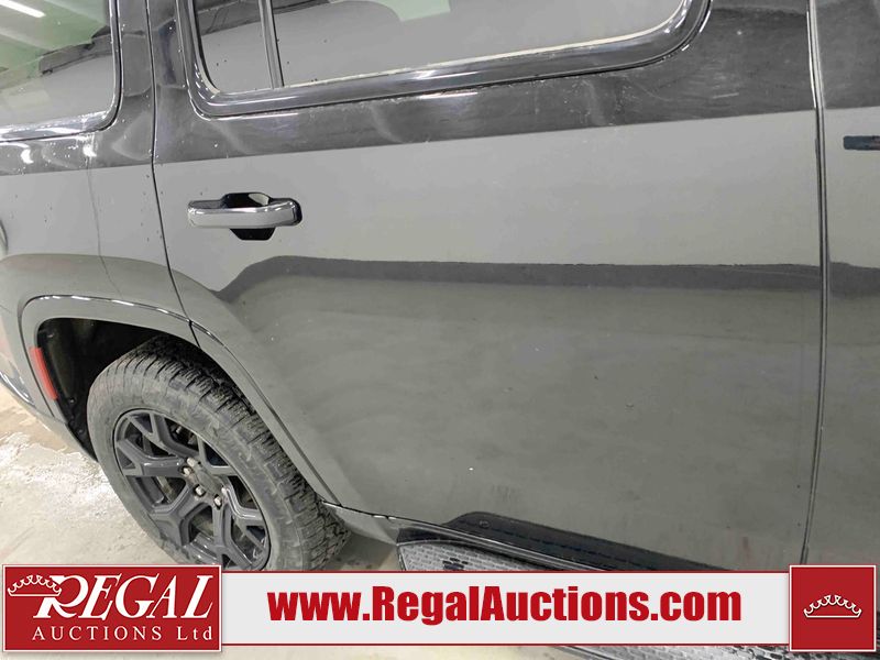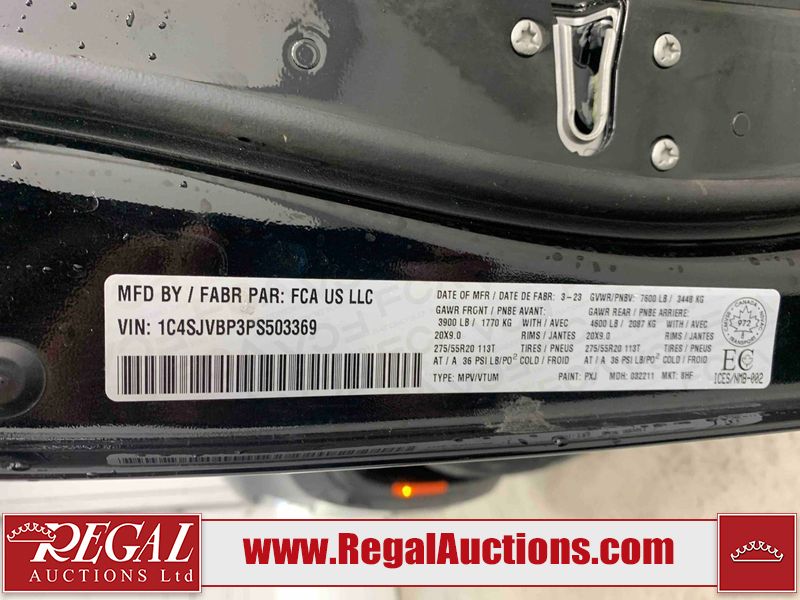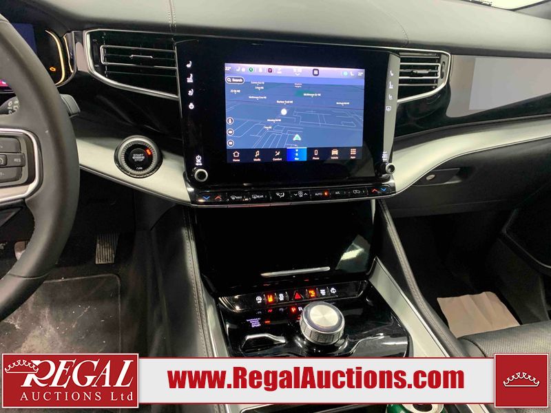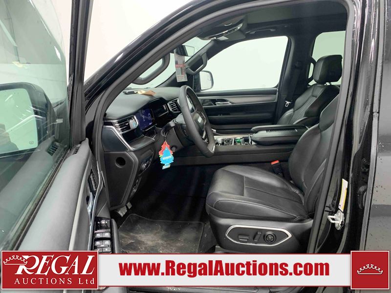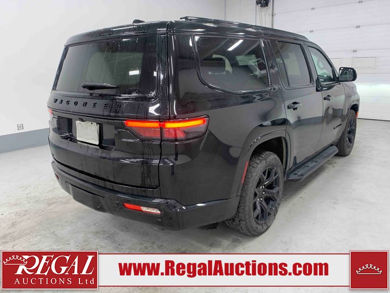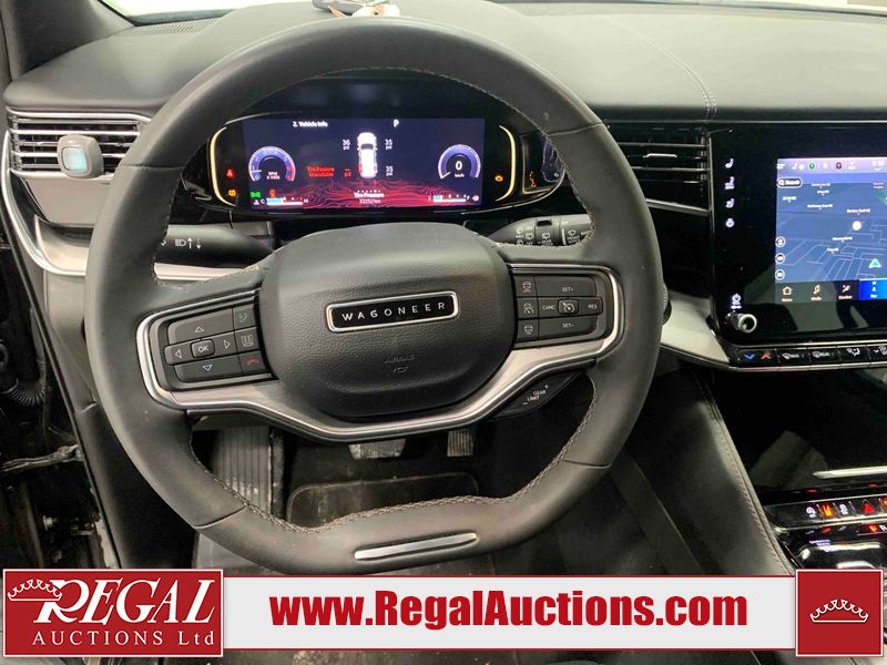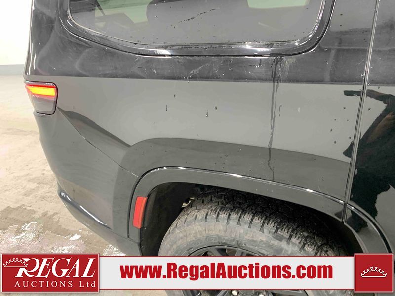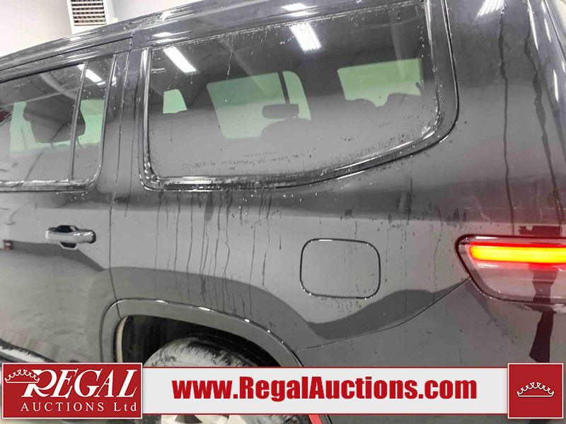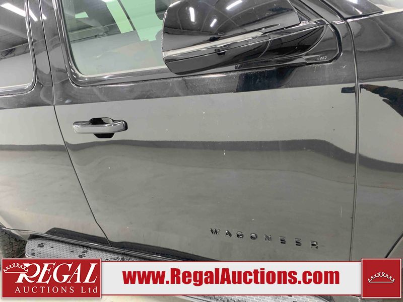 This 2023 JEEP WAGONEER SERIES II 4D UTILITY AWD 3.0L is powered by a turbocharged 6 cylinder gasoline engine and an automatic transmission. It is equipped with four wheel drive. The SUV has seats for 7 people. The SUV has low mileage for its age. The vehicle has high value options including a sunroof, leather upholstery, power seats, heated seats, navigation, a backup camera, and a power lift gate. There is no emission sticker. The body looks to be in good condition overall. There are chips on the front bumper and grille. There are very minor scratches in many areas around the body. There are very minor chips in many areas around the body. There is very minor dent damage on the right rear door. The interior looks to be in good condition overall. The carpet is dirty. The passenger side mirror is broken. All of the tires have lots of tread remaining. The left rear wheel is a spare.