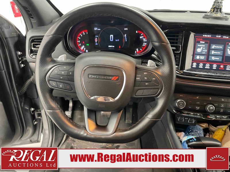 This 2023 DODGE DURANGO GT 4D UTILITY AWD 3.6L is powered by a 6 cylinder gasoline engine and an automatic transmission. It is equipped with four wheel drive. The SUV has seats for 7 people. The SUV has low mileage for its age. GT is a very popular trim level. The vehicle has high value options including power seats, heated seats, a backup camera, and a power lift gate. The body looks to be in good condition overall. There are very minor chips in many areas around the body. There are very minor scratches in many areas around the body. The interior looks to be in good condition overall. The carpet is dirty. The windshield is chipped. The front tires are both worn. The rear tires both have lots of tread remaining.