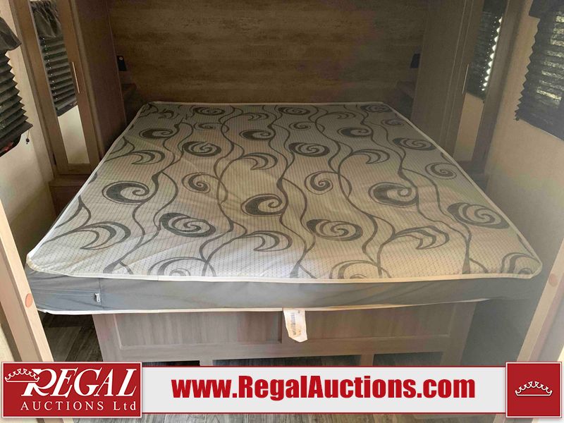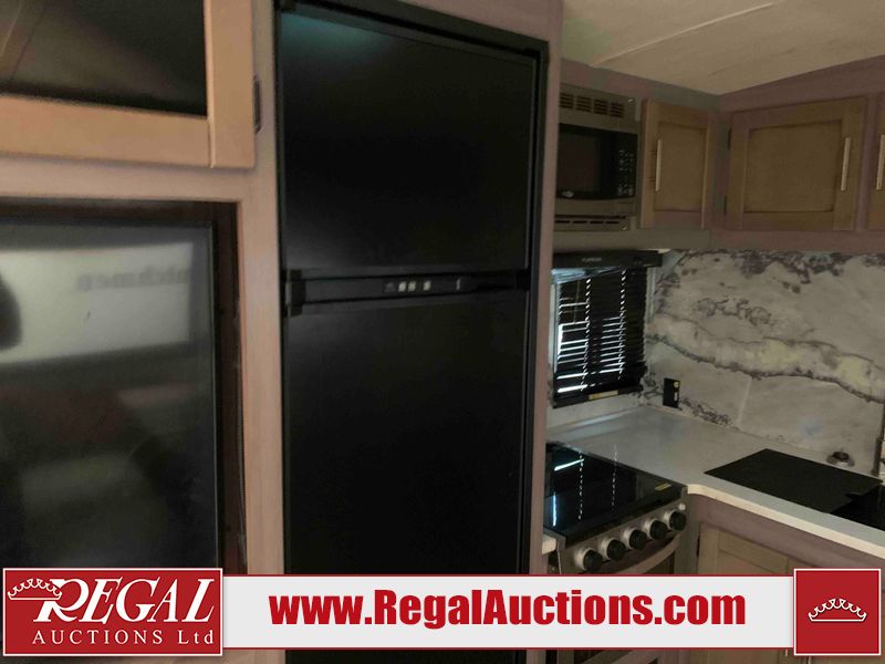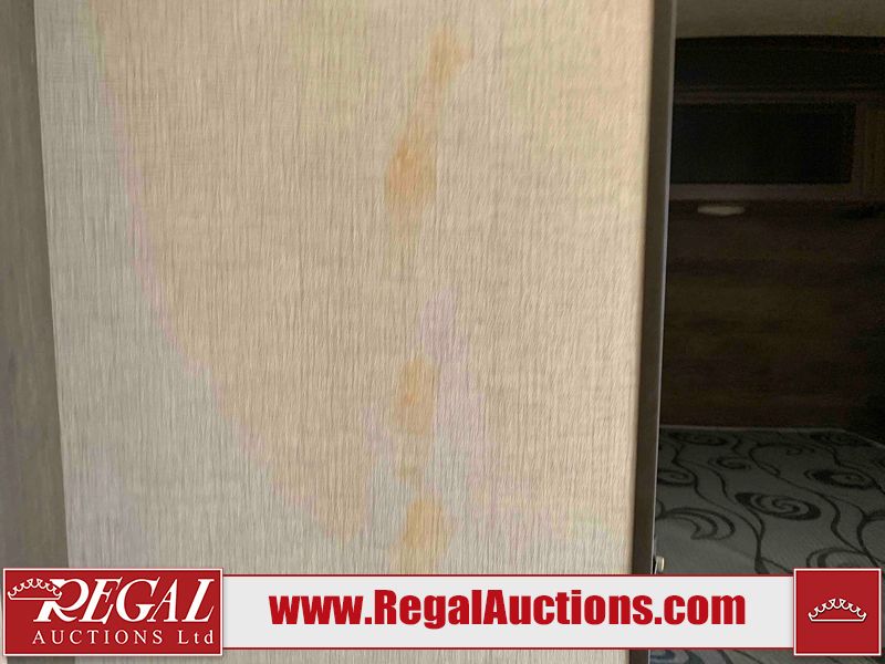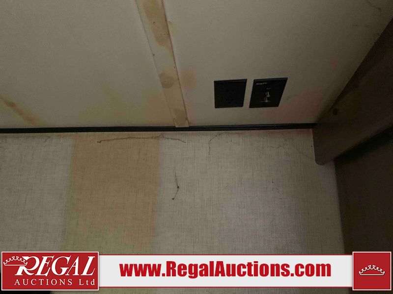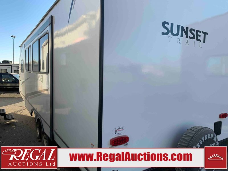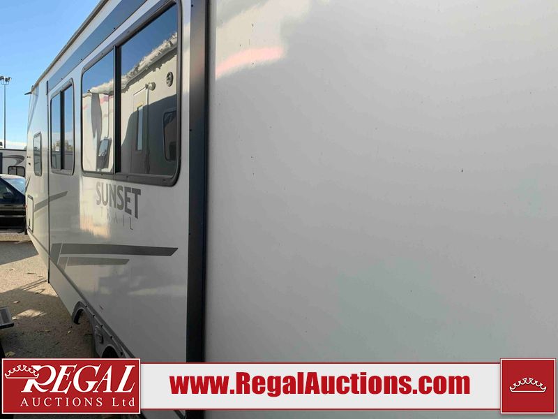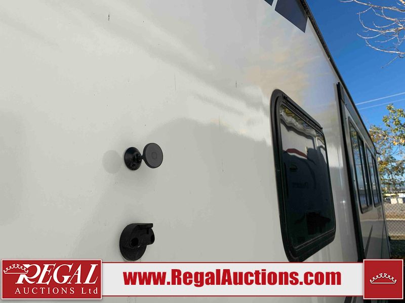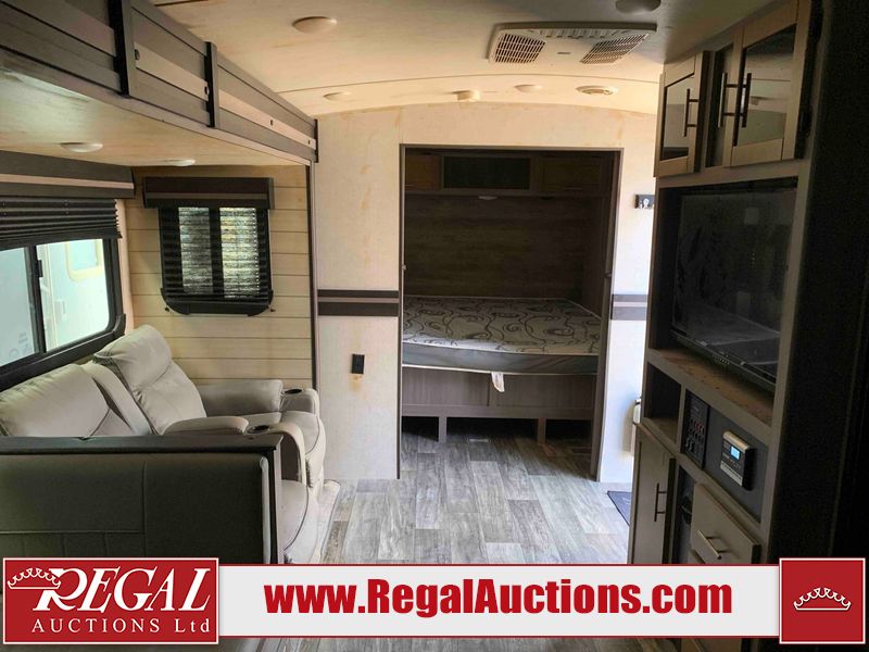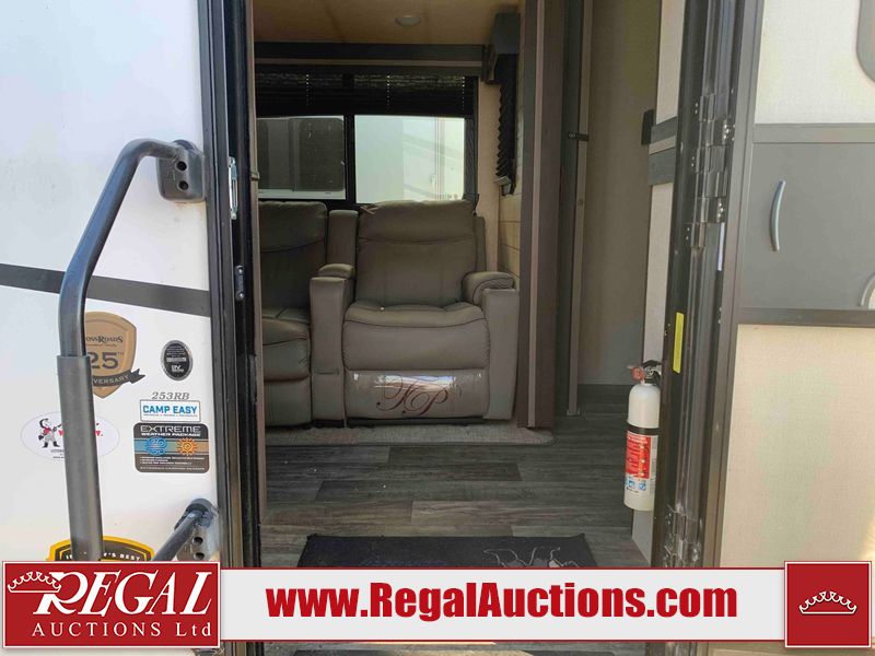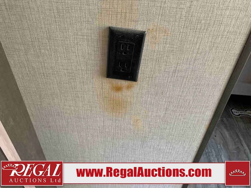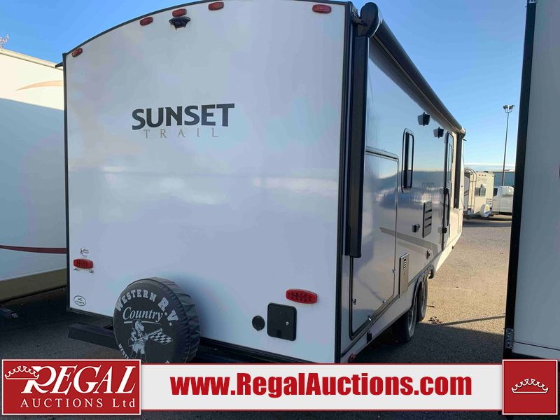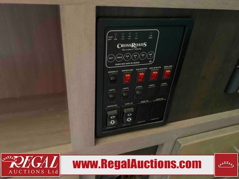 This 29ft RV is a 2022 Keystone Crossroads Sunset Trail Super lite Series 253RB model bumper pull travel trailer. It has a single entry door, roof air and a single slide out accommodating the living area. The interior is dirty. The floor has a soft spotThe recliners are torn and worn. The dinette seating has stains. The walls and ceiling have stains. The shower wall is cracked. The mattress is broken. Some of the walls and wood trims are showing scratches and scuffs. The exterior walls are made of hard wall fiberglass. There are chips across the front end. The left front lower metal trim is bent. Both side walls have scratches and scuffs. This unit comes with two batteries and two propane tanks. The tires have mounted to alloy rims and appear to be in good enough condition for use. It is equipped with a flatscreen television, exterior kitchen, refrigerator, microwave, oven and a three burner stove top. The layout consists of a master bedroom at the front, kitchen/living area in the centre and a bathroom at the rear.