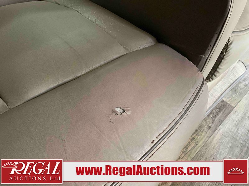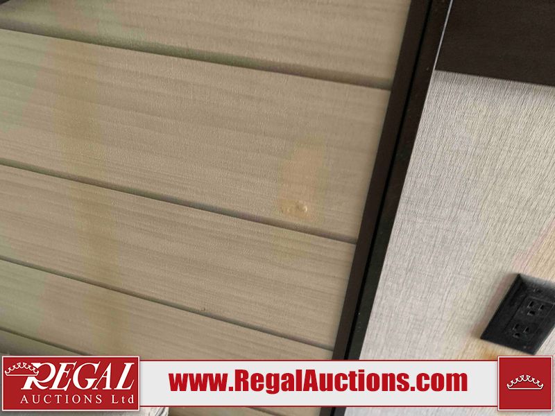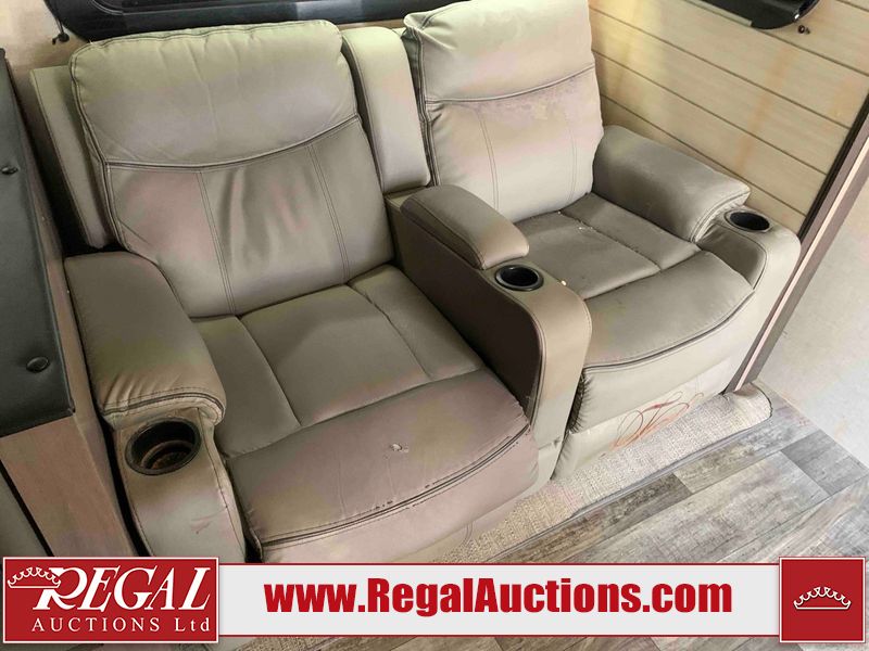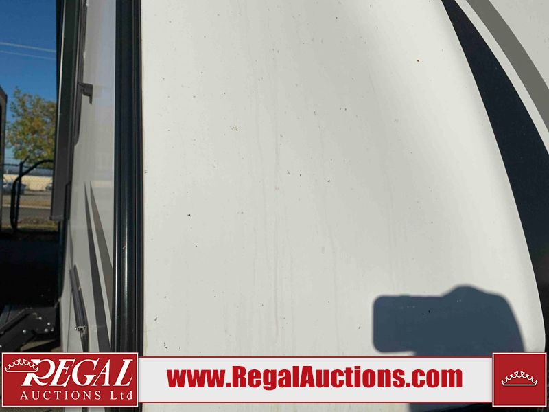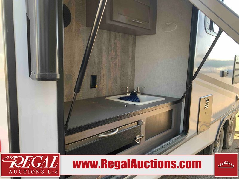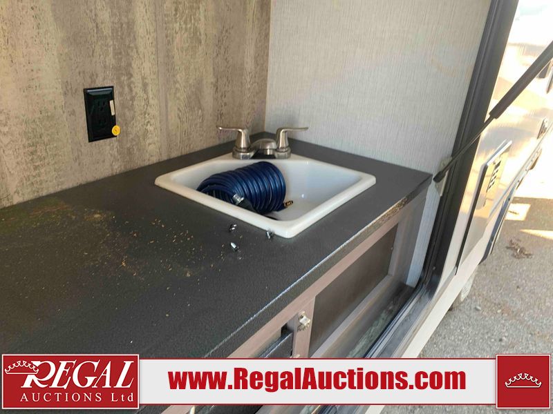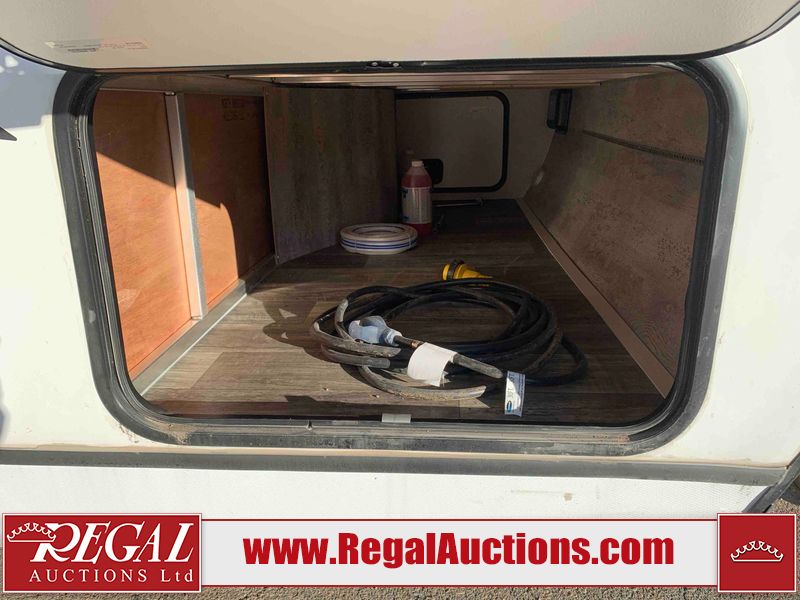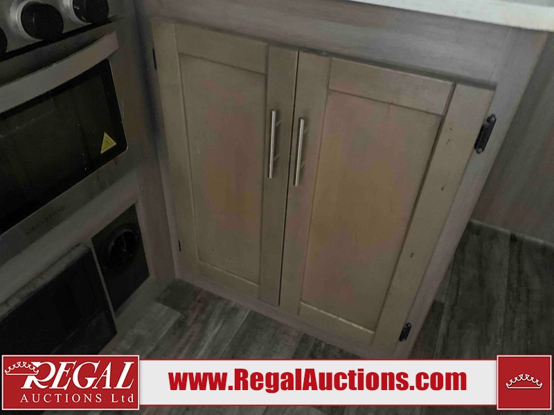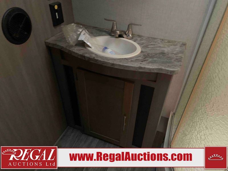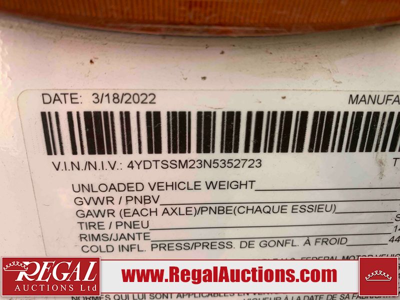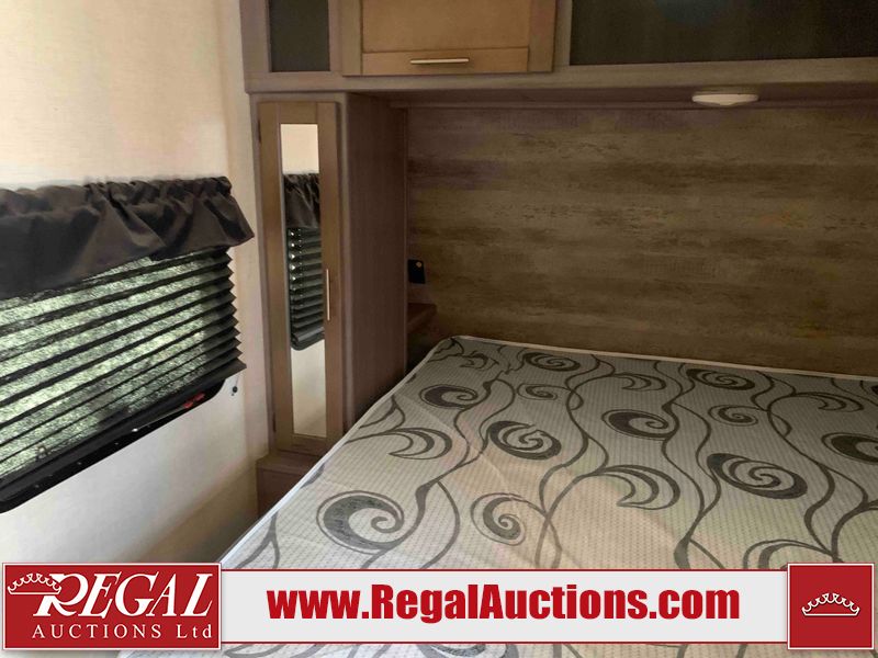 This 29ft RV is a 2022 Keystone Crossroads Sunset Trail Super lite Series 253RB model bumper pull travel trailer. It has a single entry door, roof air and a single slide out accommodating the living area. The interior is dirty. The floor has a soft spotThe recliners are torn and worn. The dinette seating has stains. The walls and ceiling have stains. The shower wall is cracked. The mattress is broken. Some of the walls and wood trims are showing scratches and scuffs. The exterior walls are made of hard wall fiberglass. There are chips across the front end. The left front lower metal trim is bent. Both side walls have scratches and scuffs. This unit comes with two batteries and two propane tanks. The tires have mounted to alloy rims and appear to be in good enough condition for use. It is equipped with a flatscreen television, exterior kitchen, refrigerator, microwave, oven and a three burner stove top. The layout consists of a master bedroom at the front, kitchen/living area in the centre and a bathroom at the rear.