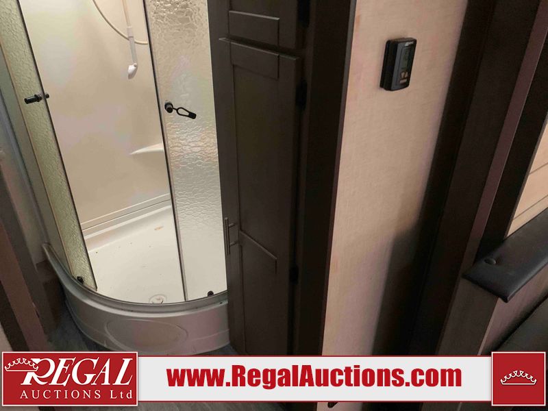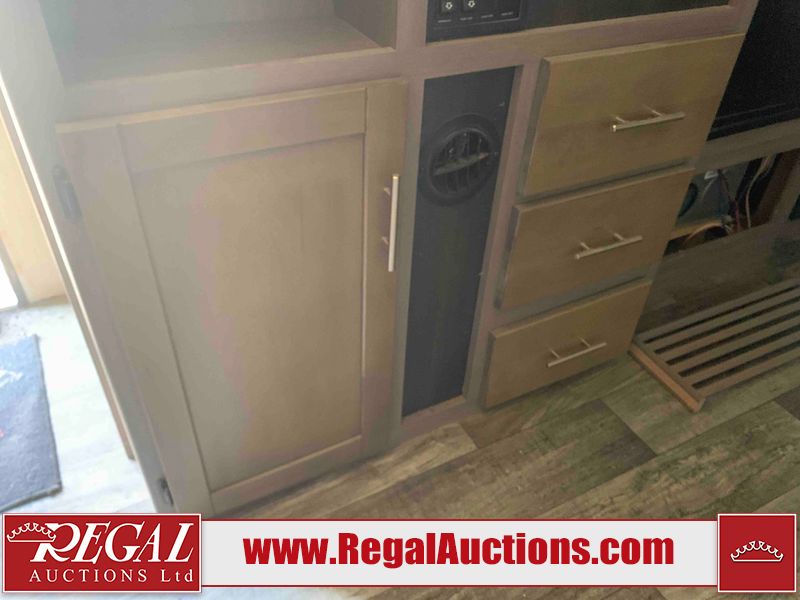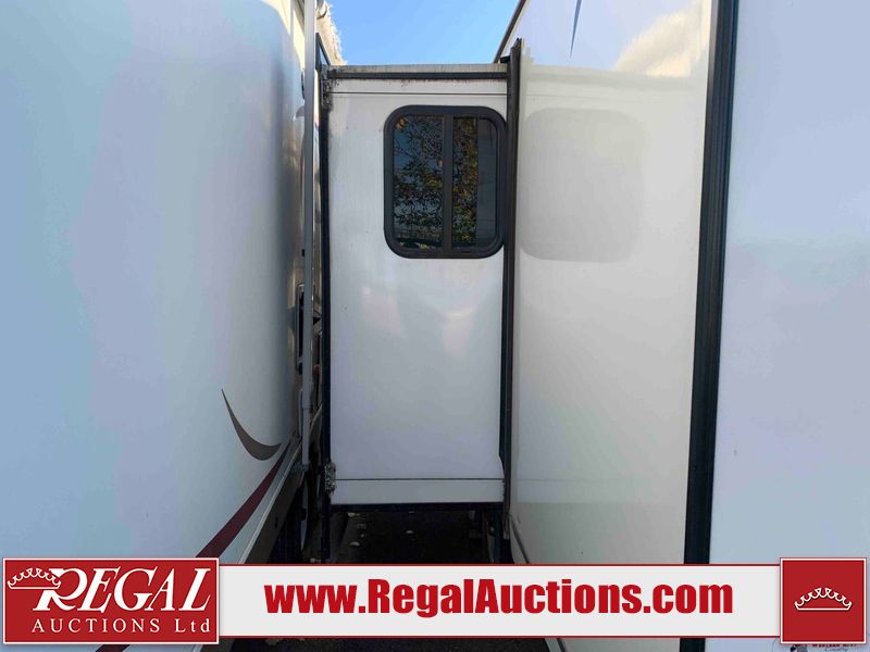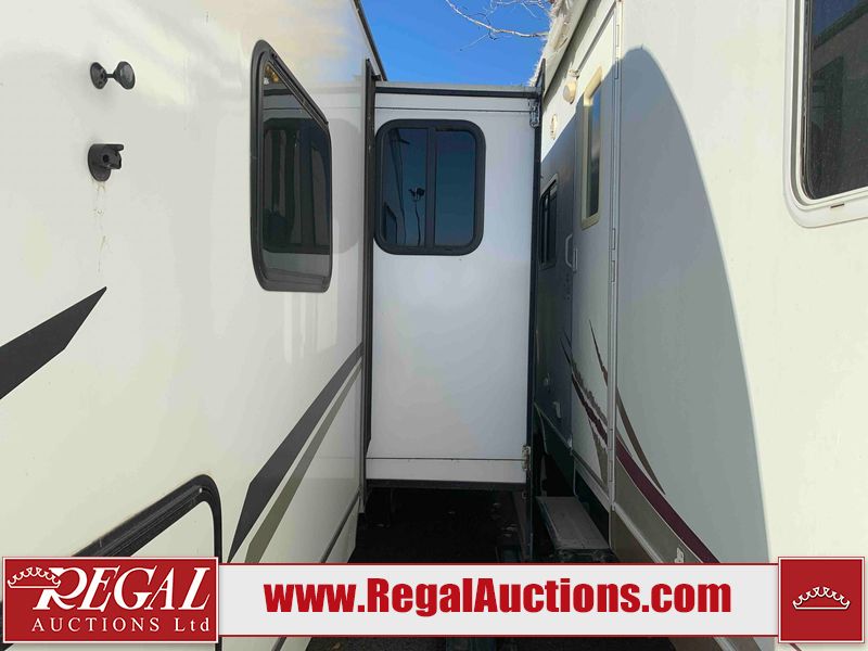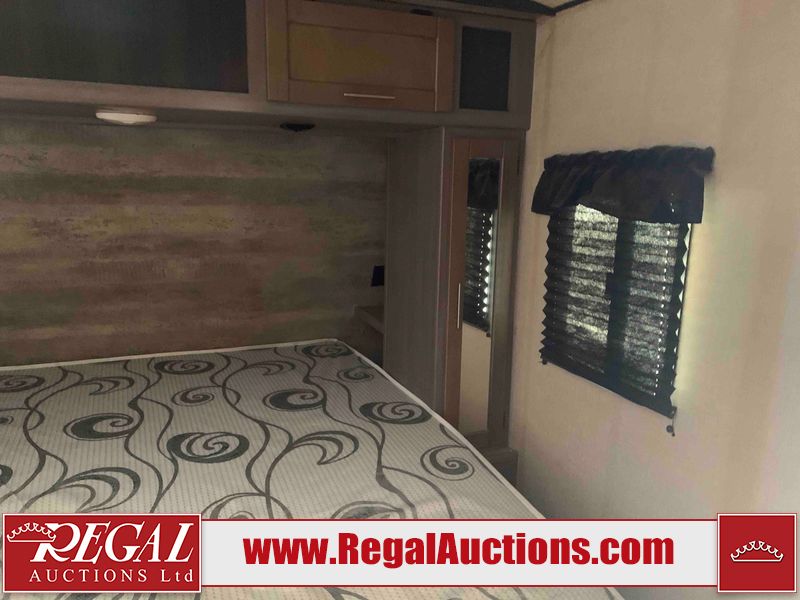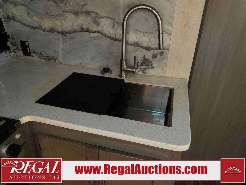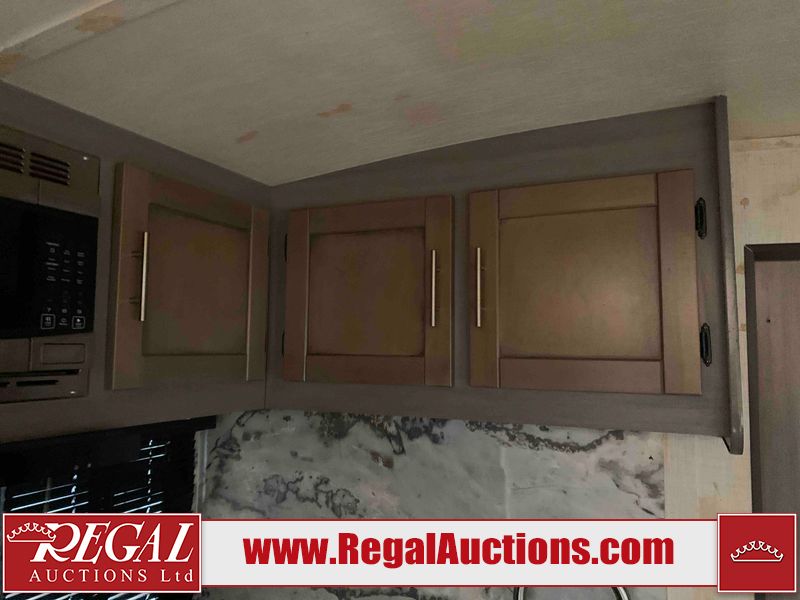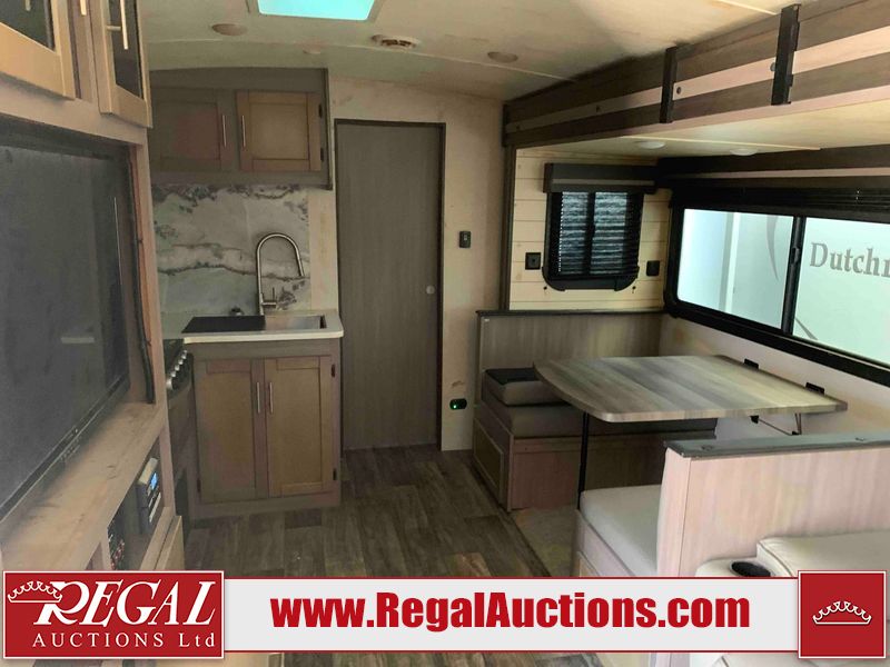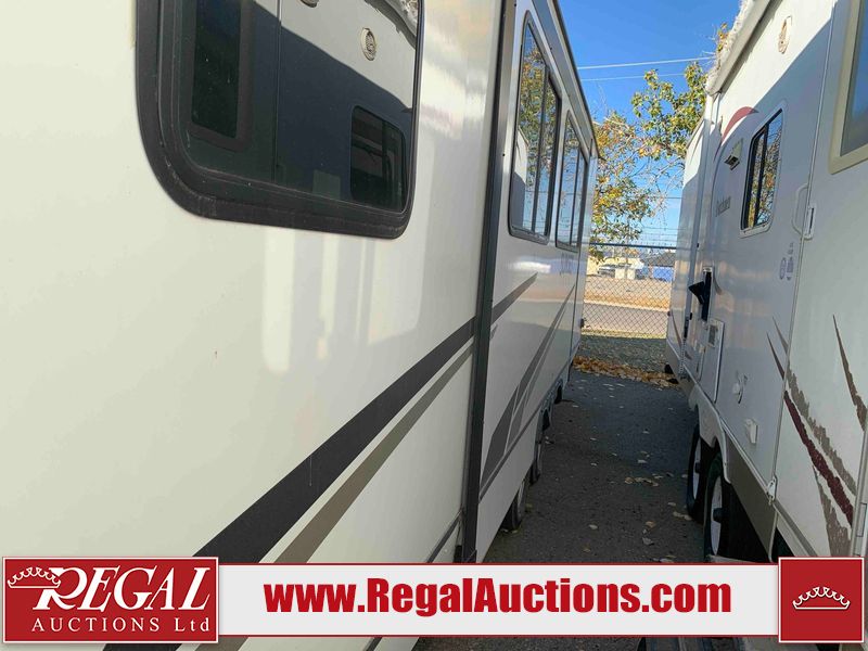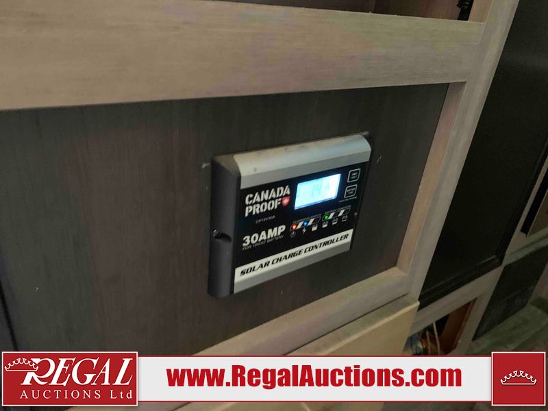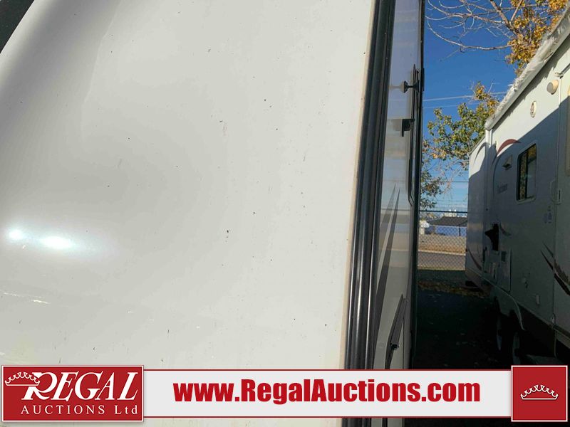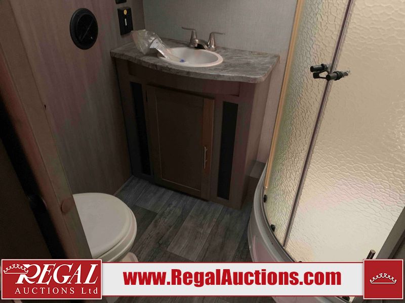 This 29ft RV is a 2022 Keystone Crossroads Sunset Trail Super lite Series 253RB model bumper pull travel trailer. It has a single entry door, roof air and a single slide out accommodating the living area. The interior is dirty. The floor has a soft spotThe recliners are torn and worn. The dinette seating has stains. The walls and ceiling have stains. The shower wall is cracked. The mattress is broken. Some of the walls and wood trims are showing scratches and scuffs. The exterior walls are made of hard wall fiberglass. There are chips across the front end. The left front lower metal trim is bent. Both side walls have scratches and scuffs. This unit comes with two batteries and two propane tanks. The tires have mounted to alloy rims and appear to be in good enough condition for use. It is equipped with a flatscreen television, exterior kitchen, refrigerator, microwave, oven and a three burner stove top. The layout consists of a master bedroom at the front, kitchen/living area in the centre and a bathroom at the rear.