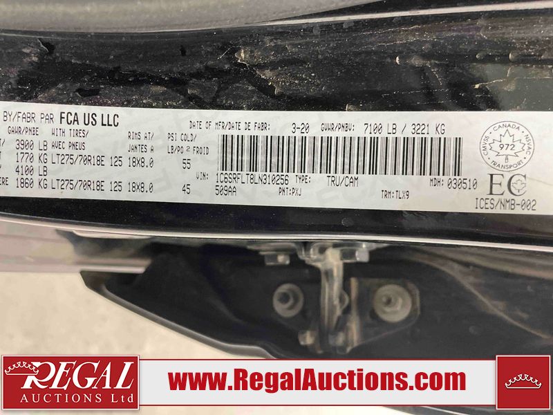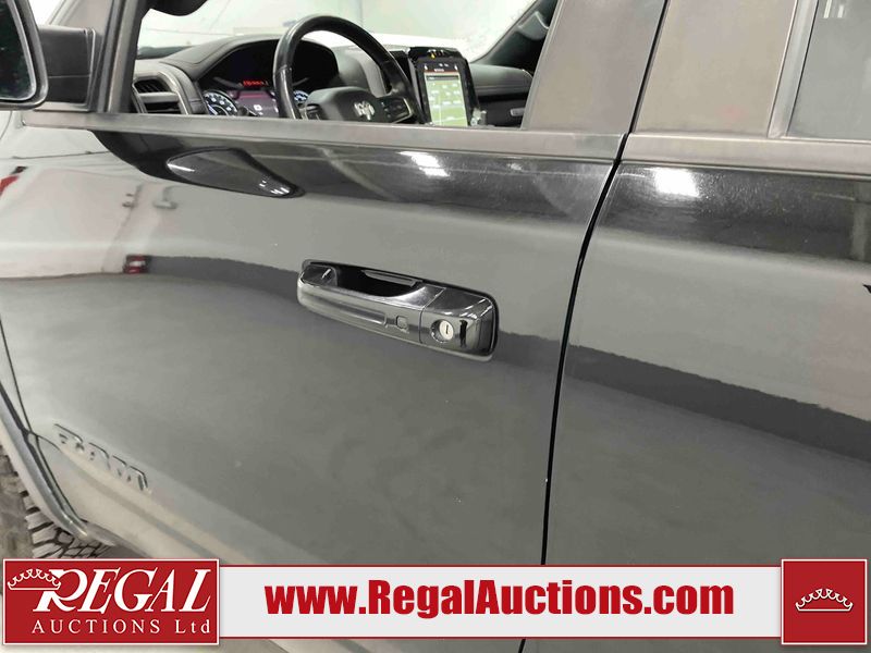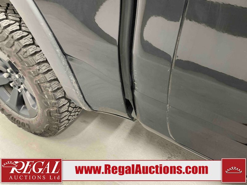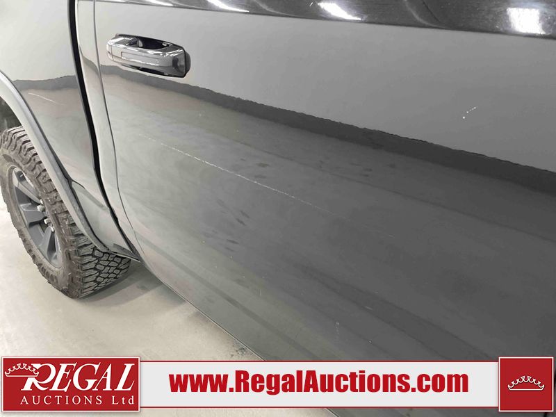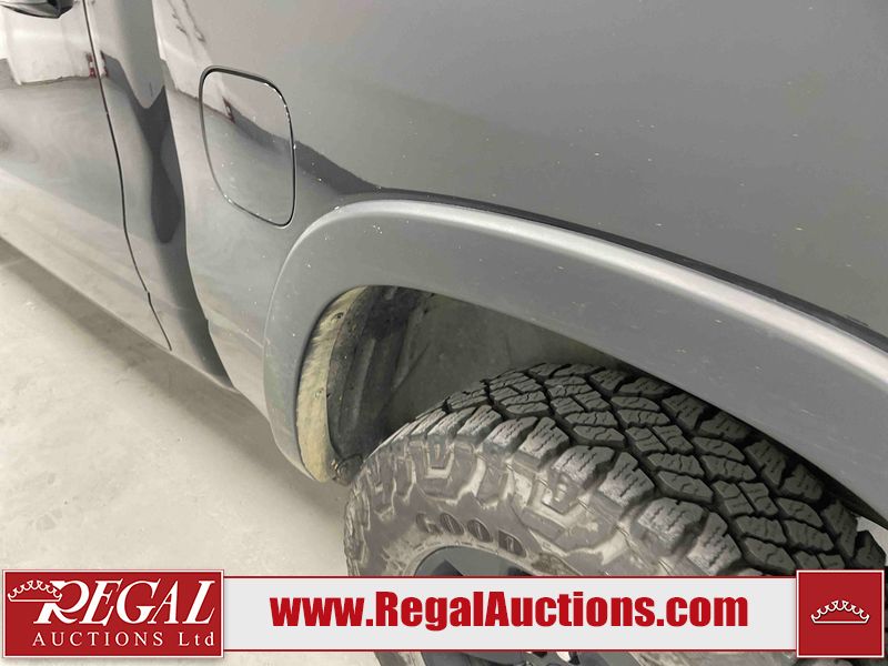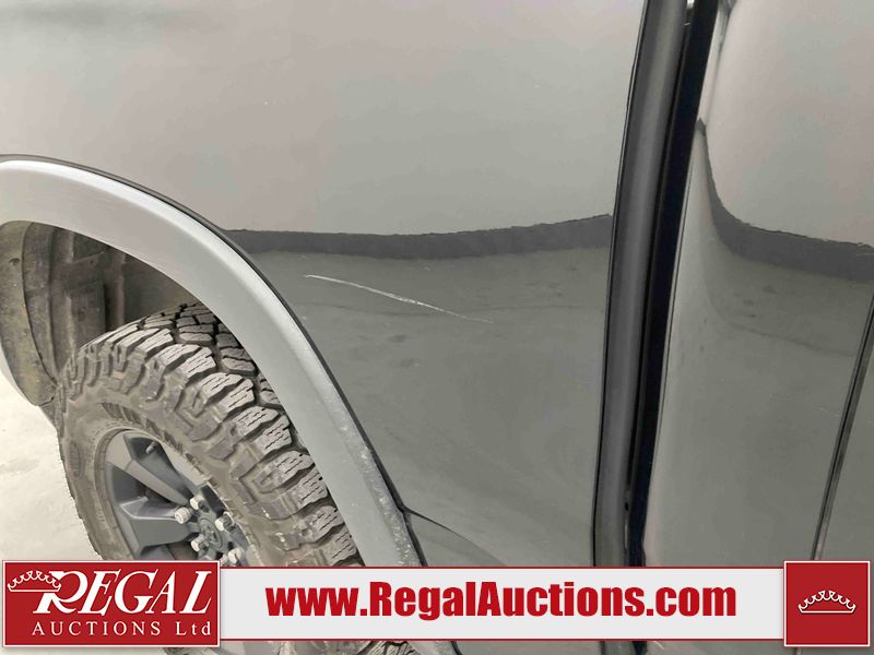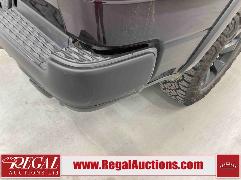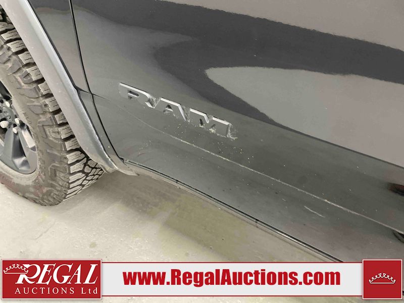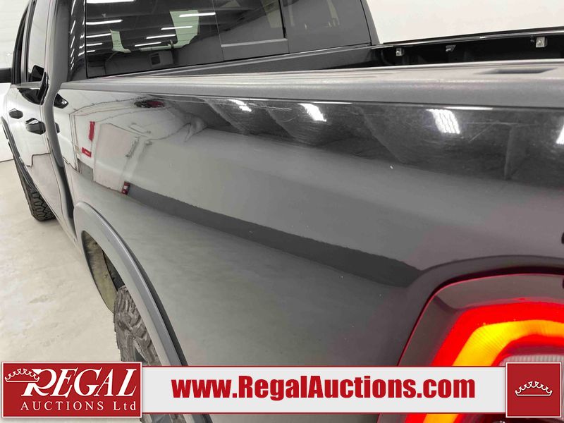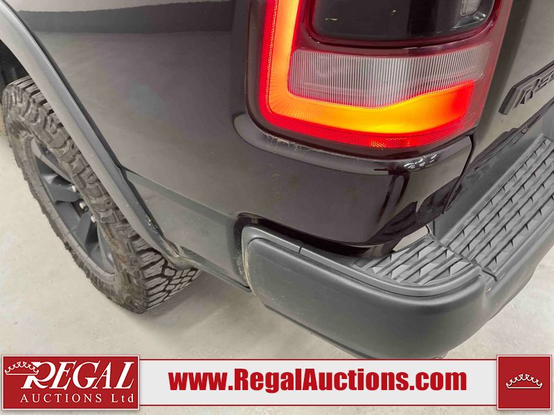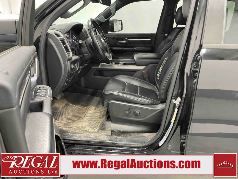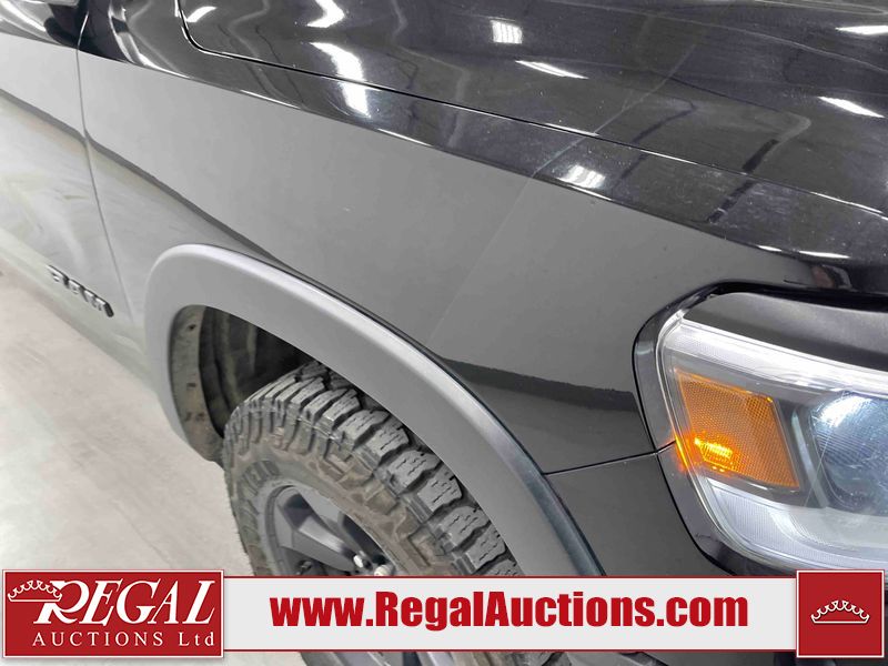 This 2020 RAM 1500 REBEL CREW CAB SWB 4WD 5.7L is powered by a 8 cylinder gasoline engine and an automatic transmission. It is equipped with four wheel drive. The truck has seats for 5 people. The truck has high mileage for its age. The vehicle has high value options including leather upholstery, power seats, heated seats, and a backup camera. The body looks to be in fair condition overall. There is incidental dent damage on the left rear fender, right rear fender, and right rear door. There are scratches on the right rear door. There are very minor chips in many areas around the body. There are very minor scratches in many areas around the body. There is very minor dent damage in many areas around the body. The interior looks to be in good condition overall. The driver's seat is torn. The windshield is cracked. All of the tires have lots of tread remaining.