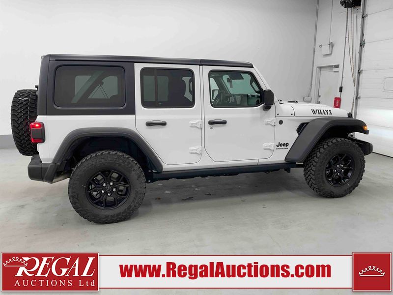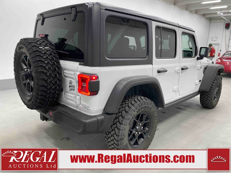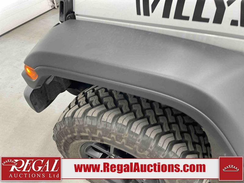 This 2025 JEEP WRANGLER WILLYS 4D UTILITY 4WD 3.6L is powered by a 6 cylinder gasoline engine and an automatic transmission. It is equipped with four wheel drive. The SUV has seats for 5 people. The SUV has high mileage for its age. The vehicle has high value options including heated seats, a convertible top, and a backup camera. The body looks to be in good condition overall. There are minimal chips on the grille and right rear fender. There are slight scratches on the roof, left rear door, and right front door. There are very minor chips in many areas around the body. There are very minor scratches in many areas around the body. The interior looks to be in good condition overall. The carpet is dirty. The windshield is chipped. All of the tires have lots of tread remaining.