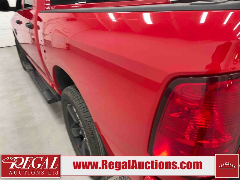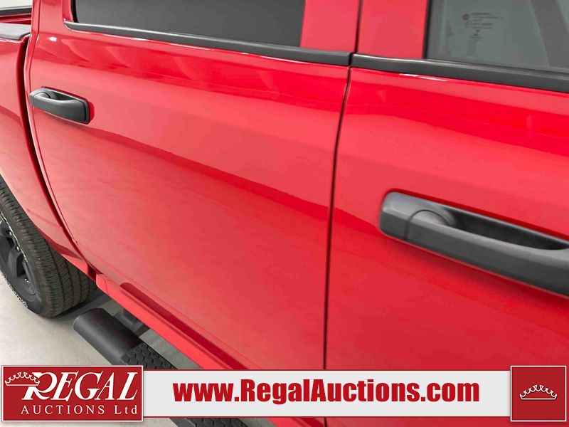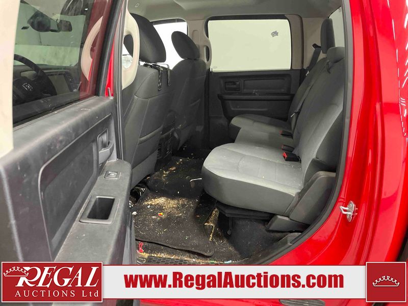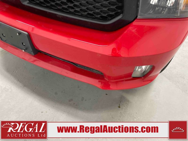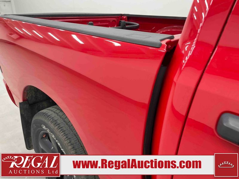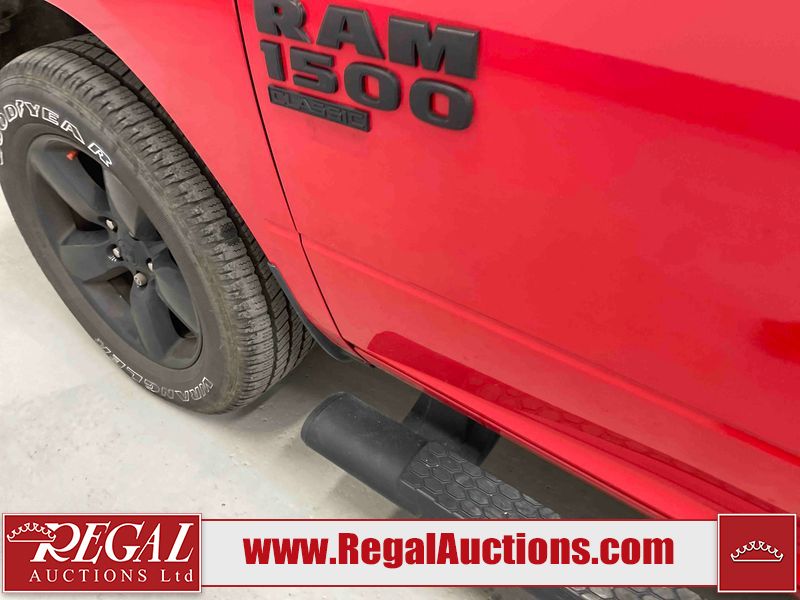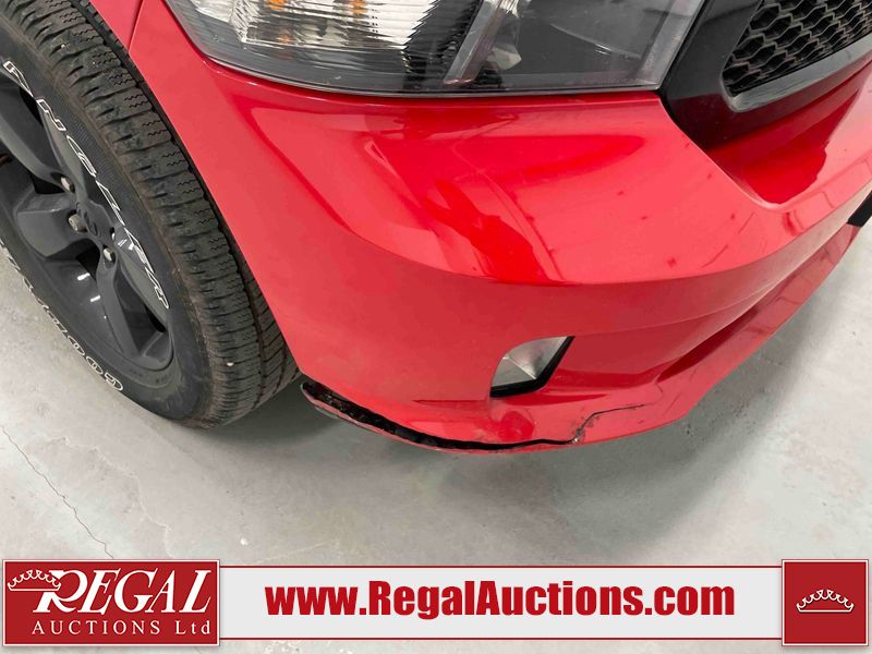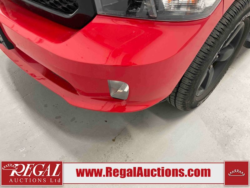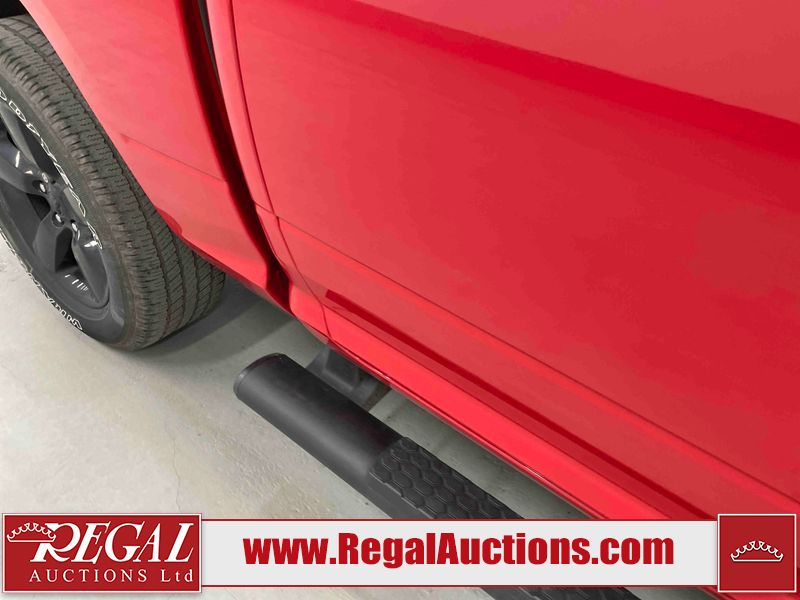 This 2023 RAM 1500 CLASSIC EXPRESS CREW CAB SWB 4WD 3.6L is powered by a 6 cylinder gasoline engine and an automatic transmission. It is equipped with four wheel drive. The truck has seats for 5 people. The truck has low mileage for its age. The vehicle has high value options including power seats, heated seats, and a backup camera. The body looks to be in rough condition overall. The front bumper is cracked. The left front door has been repainted poorly. There are very bad scratches on the rear bumper. There are minimal chips on the front bumper, grille, hood, roof, left front fender, left front door, left rear door, left rear fender, rear bumper, right rear fender, right rear door, right front door, and right front fender. There are slight scratches on the front bumper, hood, roof, left front fender, left front door, left rear door, left rear fender, tail gate, right rear fender, right rear door, right front door, and right front fender. There is incidental dent damage on the roof and right front door. There is very minor dent damage in many areas around the body. There are very minor chips on the tail gate. The interior looks to be in fair condition overall. The driver's seat and rear seats are stained. The carpet is dirty. The windshield is chipped. All of the tires have lots of tread remaining.