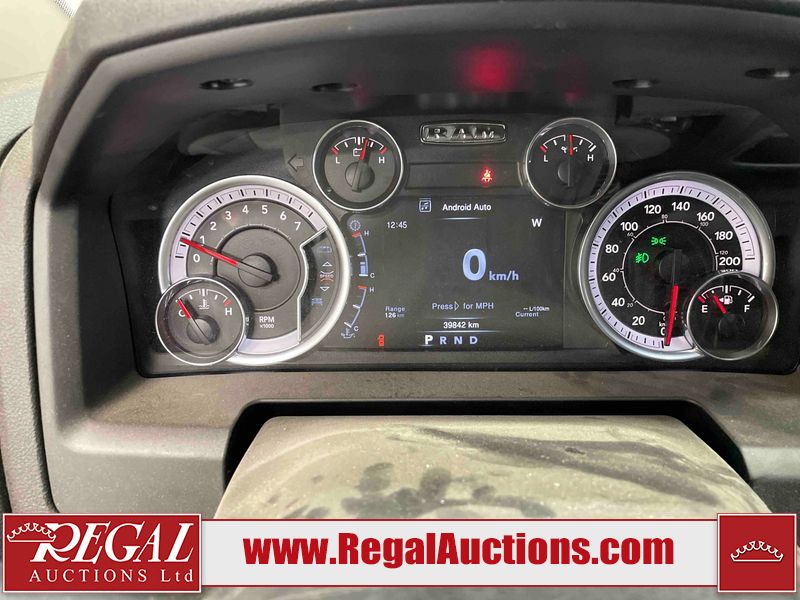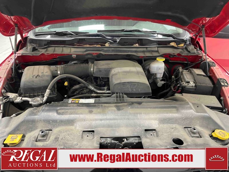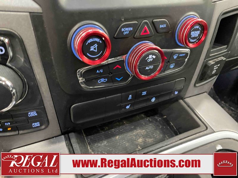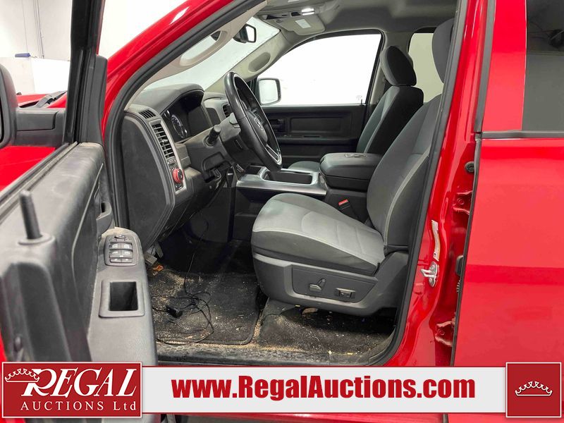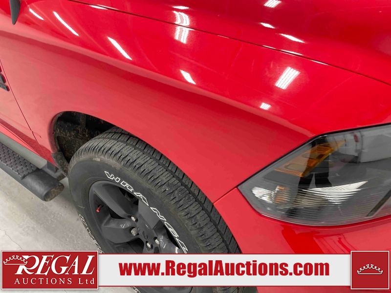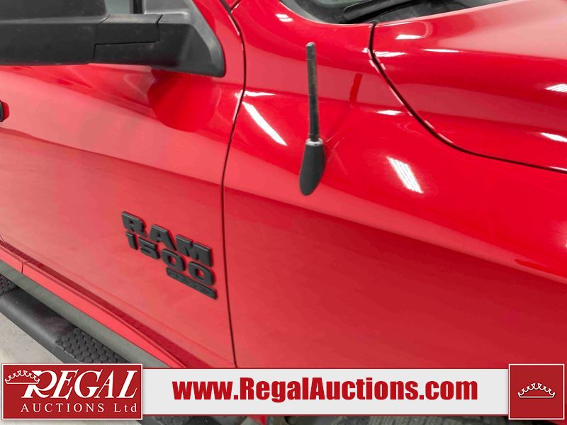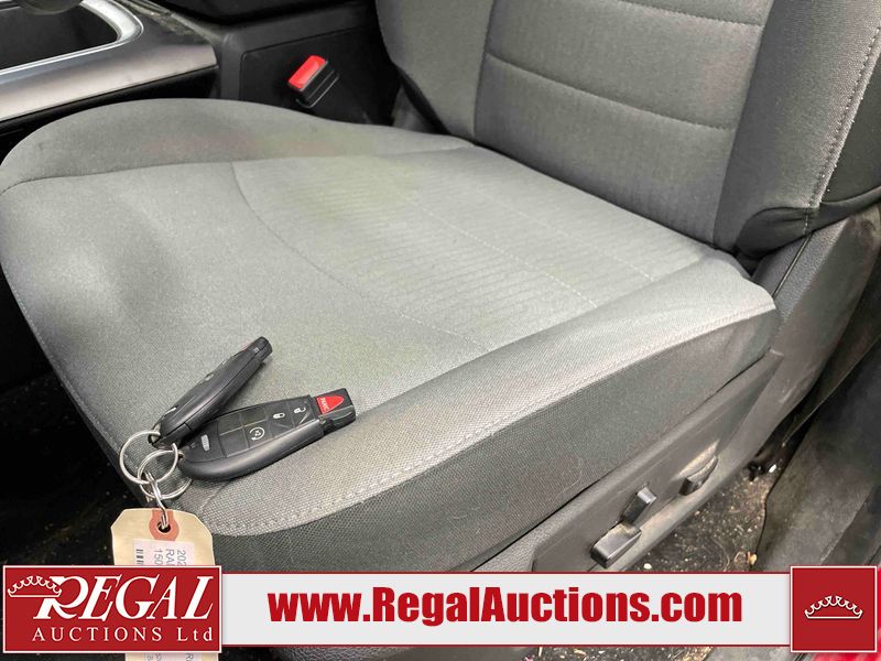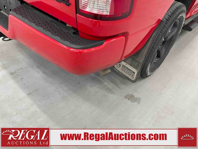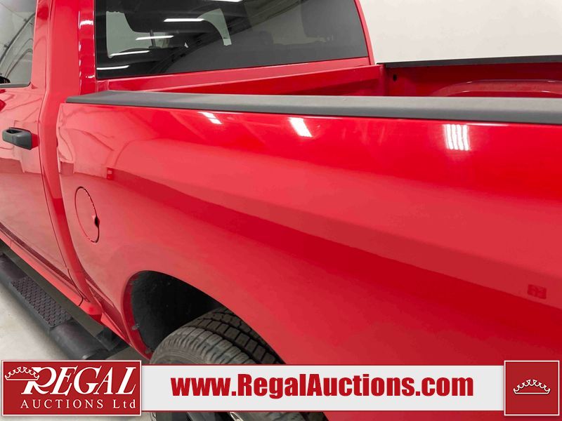 This 2023 RAM 1500 CLASSIC EXPRESS CREW CAB SWB 4WD 3.6L is powered by a 6 cylinder gasoline engine and an automatic transmission. It is equipped with four wheel drive. The truck has seats for 5 people. The truck has low mileage for its age. The vehicle has high value options including power seats, heated seats, and a backup camera. The body looks to be in rough condition overall. The front bumper is cracked. The left front door has been repainted poorly. There are very bad scratches on the rear bumper. There are minimal chips on the front bumper, grille, hood, roof, left front fender, left front door, left rear door, left rear fender, rear bumper, right rear fender, right rear door, right front door, and right front fender. There are slight scratches on the front bumper, hood, roof, left front fender, left front door, left rear door, left rear fender, tail gate, right rear fender, right rear door, right front door, and right front fender. There is incidental dent damage on the roof and right front door. There is very minor dent damage in many areas around the body. There are very minor chips on the tail gate. The interior looks to be in fair condition overall. The driver's seat and rear seats are stained. The carpet is dirty. The windshield is chipped. All of the tires have lots of tread remaining.