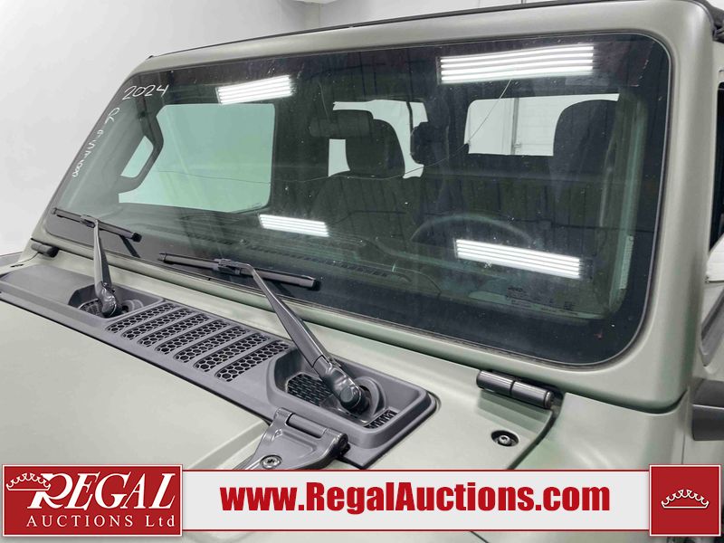 This 2024 JEEP WRANGLER SPORT 2D UTILITY 3.6L is powered by a 6 cylinder gasoline engine and a 6 speed manual transmission. It is equipped with four wheel drive. The SUV has seats for 4 people. The SUV has low mileage for its age. The vehicle has high value options including a convertible top, a radio, or air conditioning. The body looks to be in excellent condition overall. There are very minor chips on the front bumper. This unit has been wrapped, the damage underneath cannot be determined. The interior looks to be in good condition overall. The windshield is cracked. All of the tires have lots of tread remaining. Aftermarket all rims and tires have been installed, the factory set is missing.
