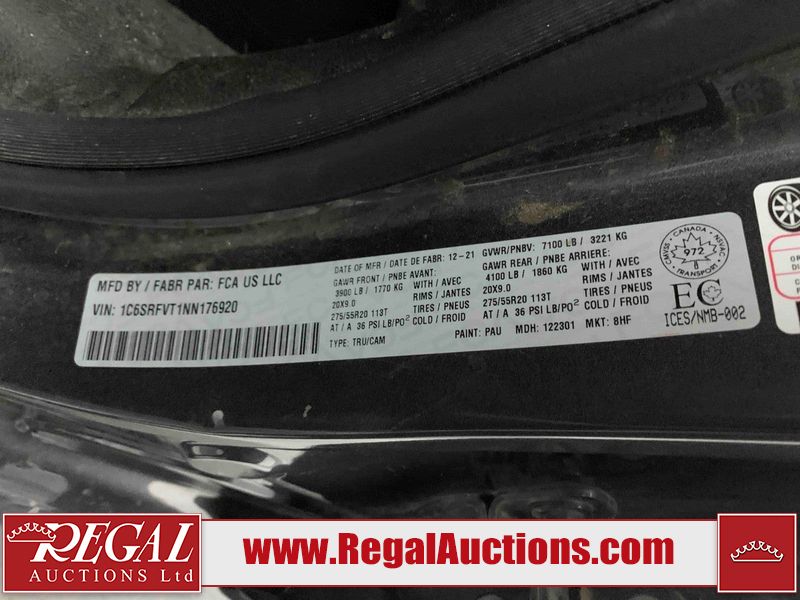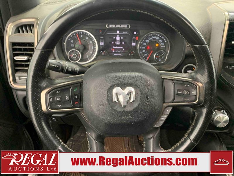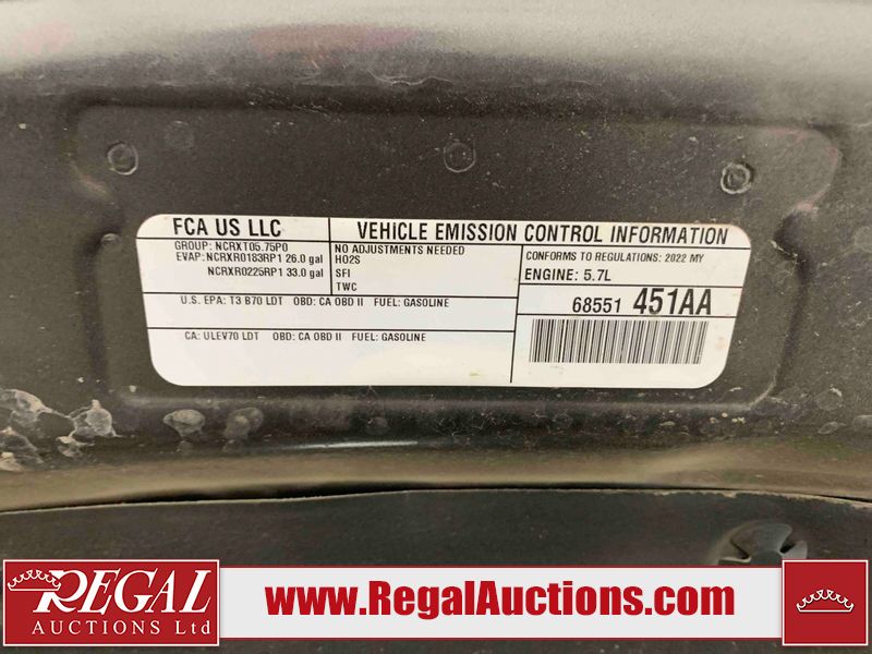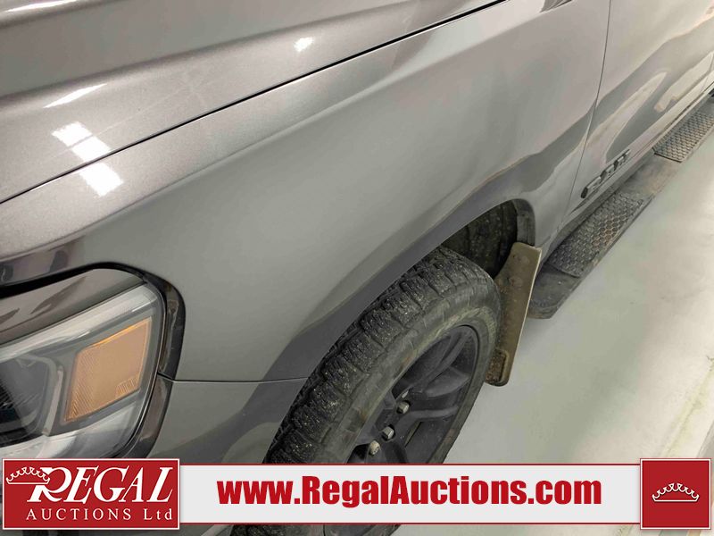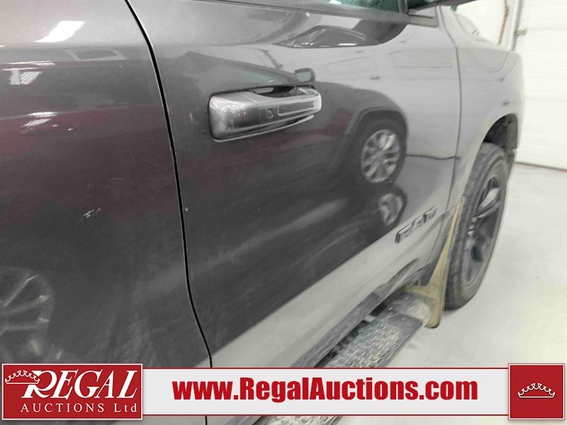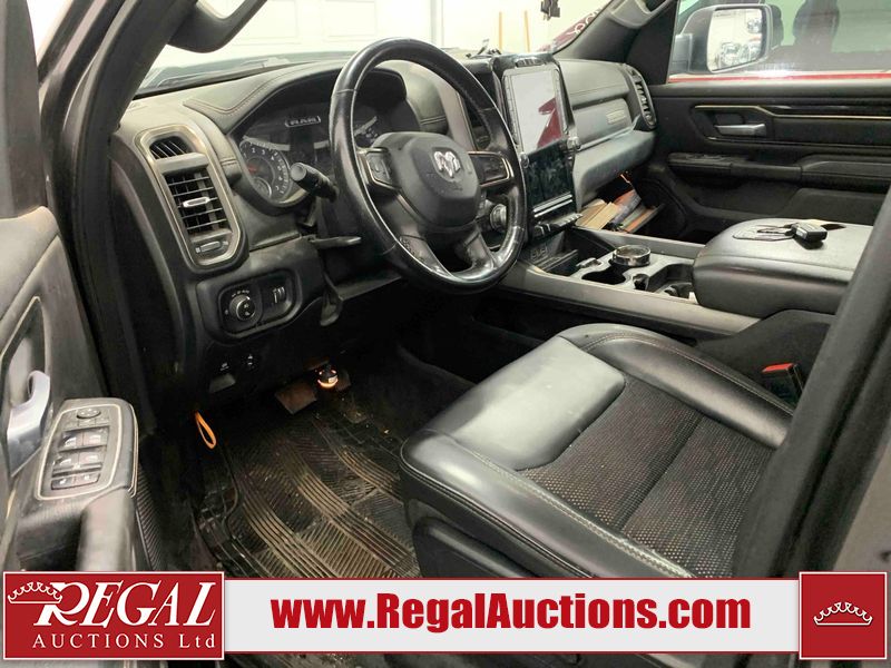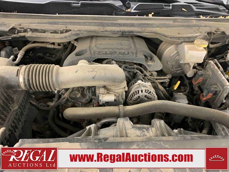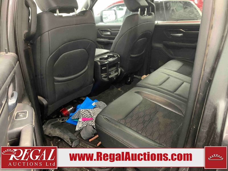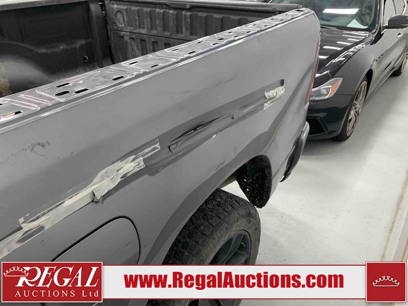 This 2022 RAM 1500 SPORT CREW CAB SWB 4WD 5.7L is powered by a 8 cylinder gasoline engine and an automatic transmission. It is equipped with four wheel drive. The truck has seats for 5 people. The truck has high mileage for its age. The vehicle has high value options including leather upholstery, power seats, heated seats, navigation, and a backup camera. The body looks to be in rough condition overall. The hood has been repainted poorly. There is considerable dent damage on the right rear fender. There are a fair amount of scratches on the left rear fender. There are chips on the front bumper. There is dent damage on the front bumper, rear bumper, and tail gate. The left rear fender has parts missing. There are slight scratches on the rear bumper, tail gate, right rear fender, and right rear door. There are very minor scratches in many areas around the body. There are very minor chips in many areas around the body. There is very minor dent damage in a few areas around the body. The interior looks to be in fair condition overall. The driver's seat is torn. The center console has damages. The windshield looks to be in good condition. The tires are all worn.