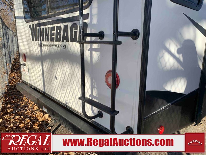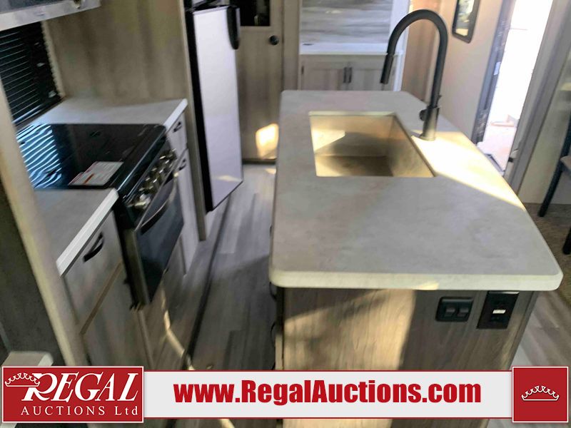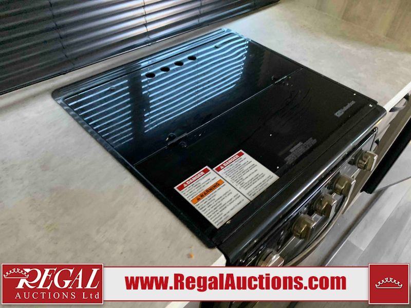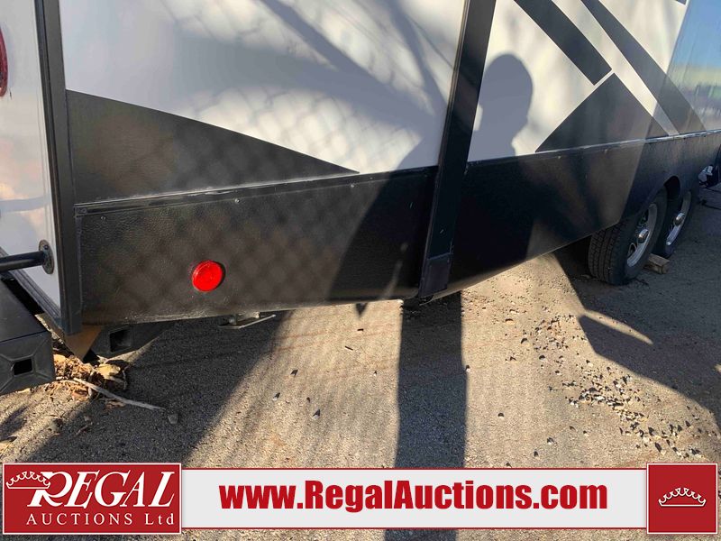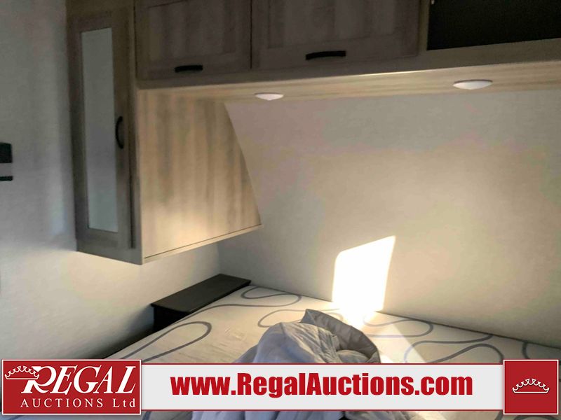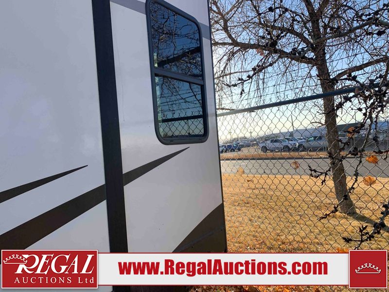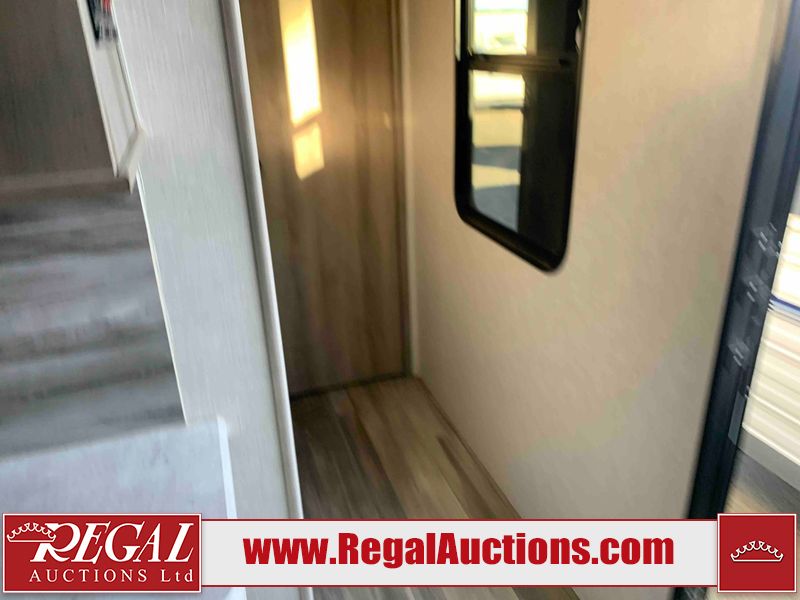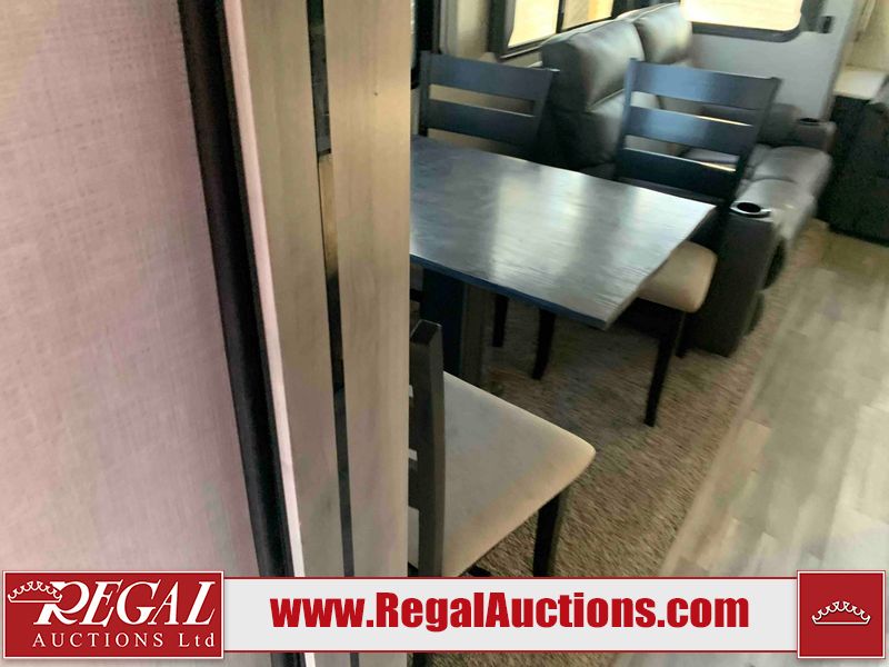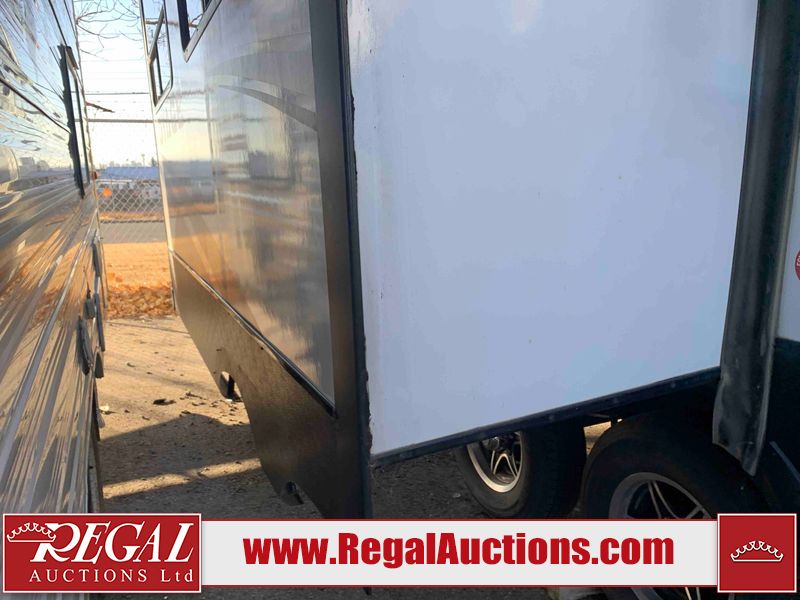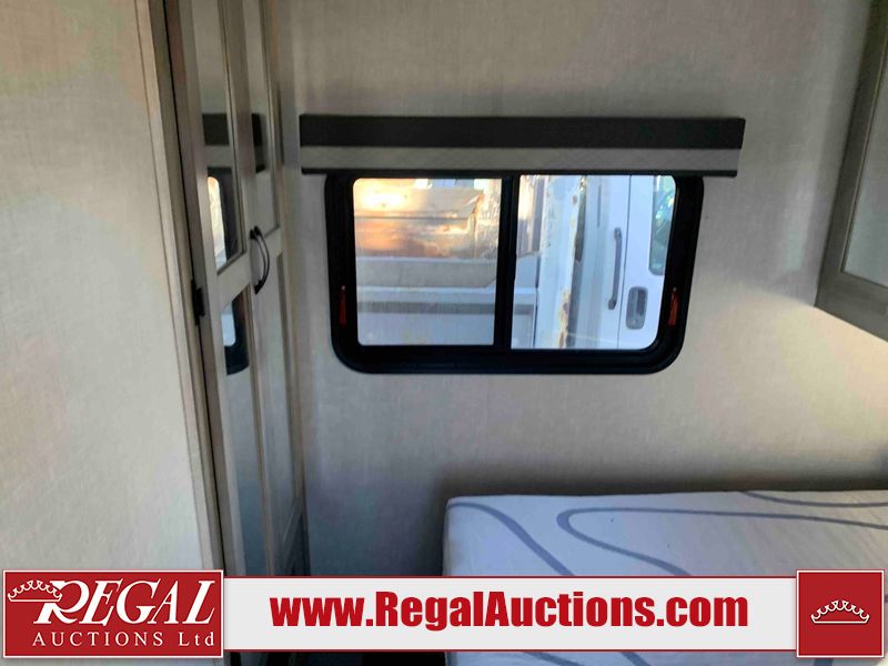 This RV is a 2021 Winnebago voyage series 3235R model bumper pull travel trailer. This unit has a single entry door, roof air and 2 slide out's accommodating the living area/kitchen. The interior is dirty. The floor has scratched and scuffs. Some of the wooden trim has chips and scrapes. The exterior walls are made of hardwall fiberglass. The front checker plate has chips. The right side wall has light scuffs. The kitchen slide has troubles, extending and retracting and may require repair. This unit is equipped with two propane tanks, the battery is missing. Unit is equipped with alloy rims, the tires appear to be in good condition for use. This RV is equipped with a stereo system, flatscreen television, electrical fire place, three burner stove top, oven, microwave and refrigerator. The lay out consists of master bedroom/bathroom in the front, and a kitchinette/living area in the rear.