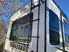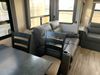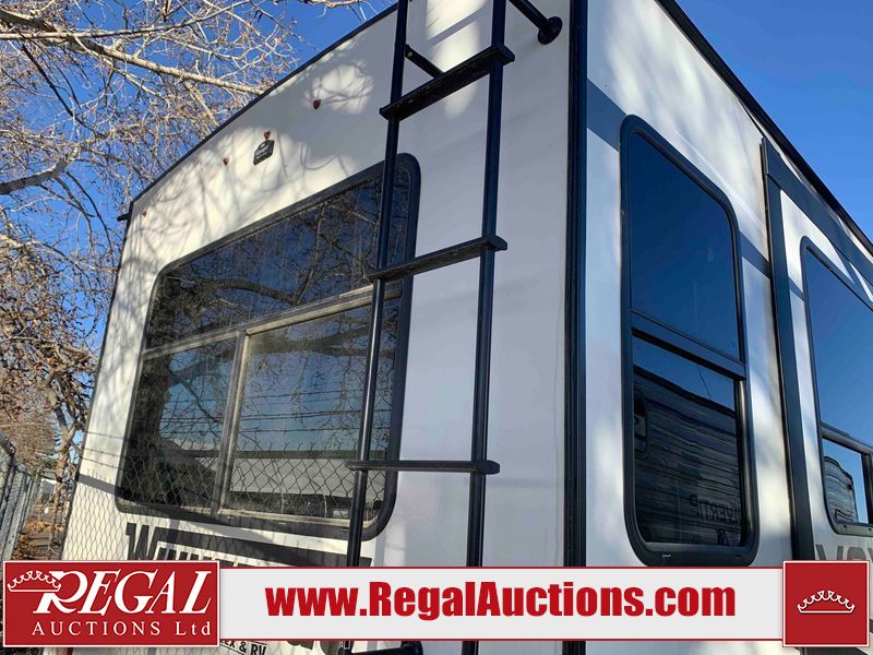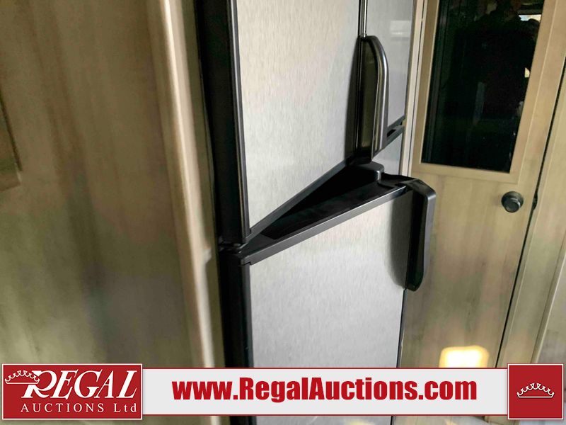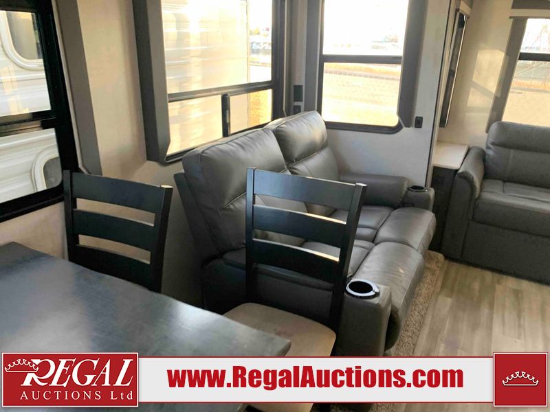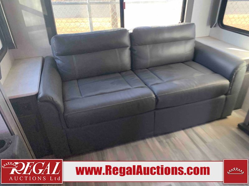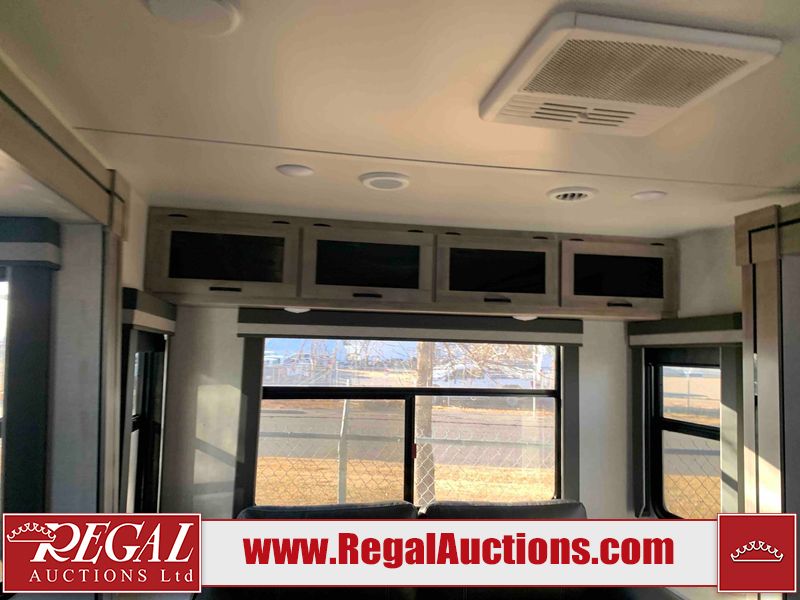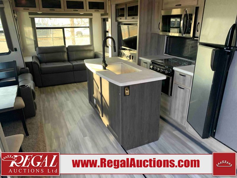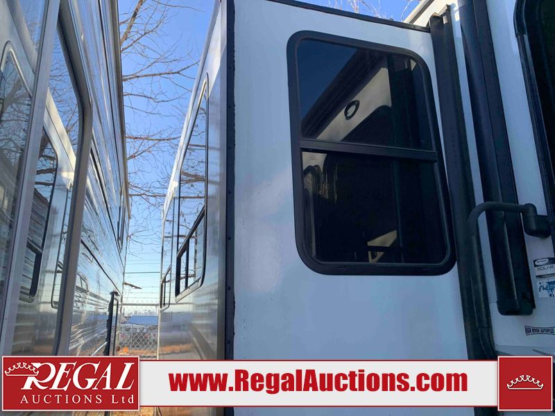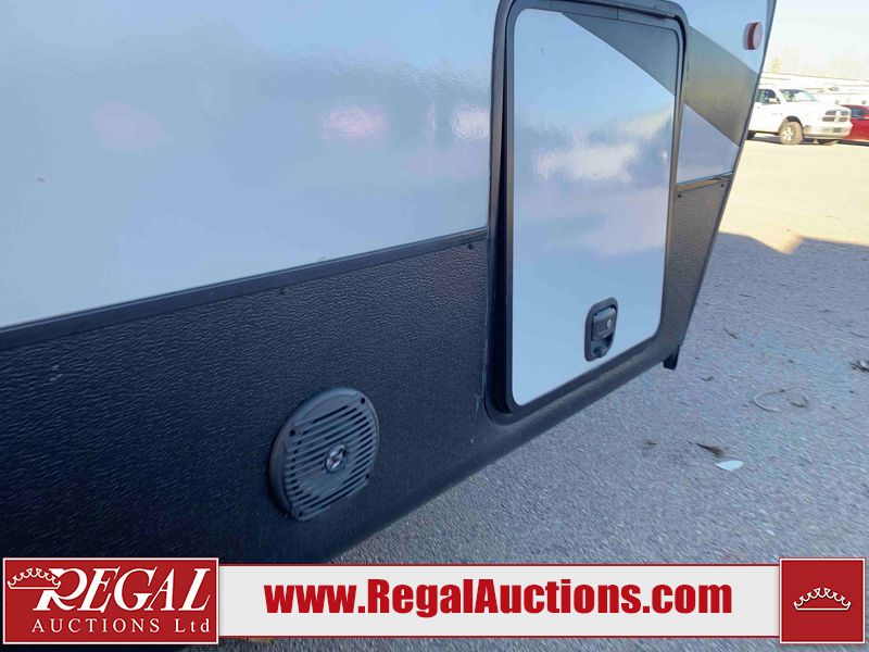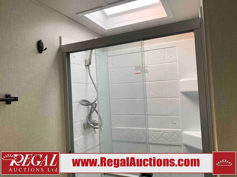 This RV is a 2021 Winnebago voyage series 3235R model bumper pull travel trailer. This unit has a single entry door, roof air and 2 slide out's accommodating the living area/kitchen. The interior is dirty. The floor has scratched and scuffs. Some of the wooden trim has chips and scrapes. The exterior walls are made of hardwall fiberglass. The front checker plate has chips. The right side wall has light scuffs. The kitchen slide has troubles, extending and retracting and may require repair. This unit is equipped with two propane tanks, the battery is missing. Unit is equipped with alloy rims, the tires appear to be in good condition for use. This RV is equipped with a stereo system, flatscreen television, electrical fire place, three burner stove top, oven, microwave and refrigerator. The lay out consists of master bedroom/bathroom in the front, and a kitchinette/living area in the rear.