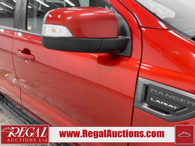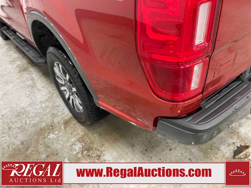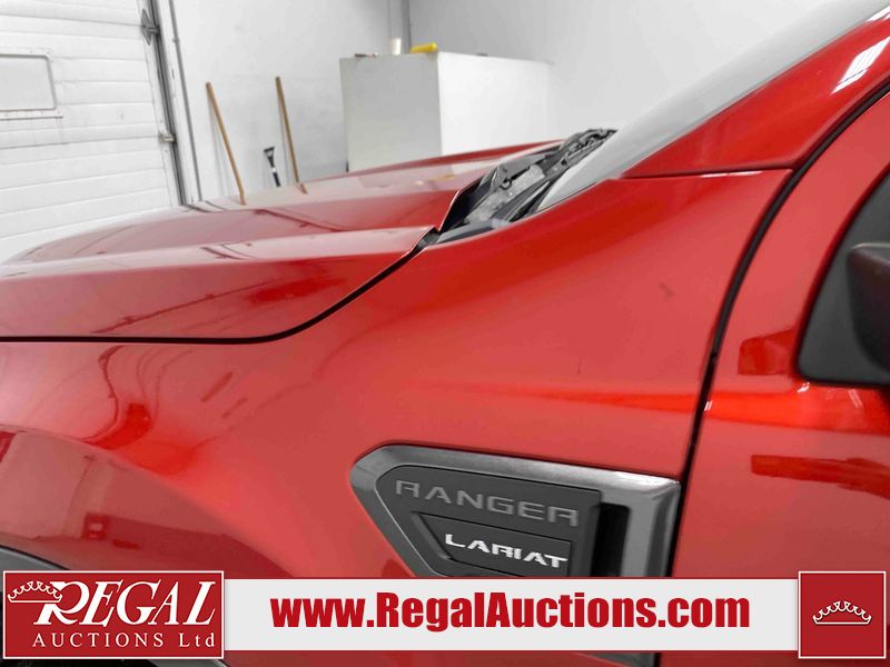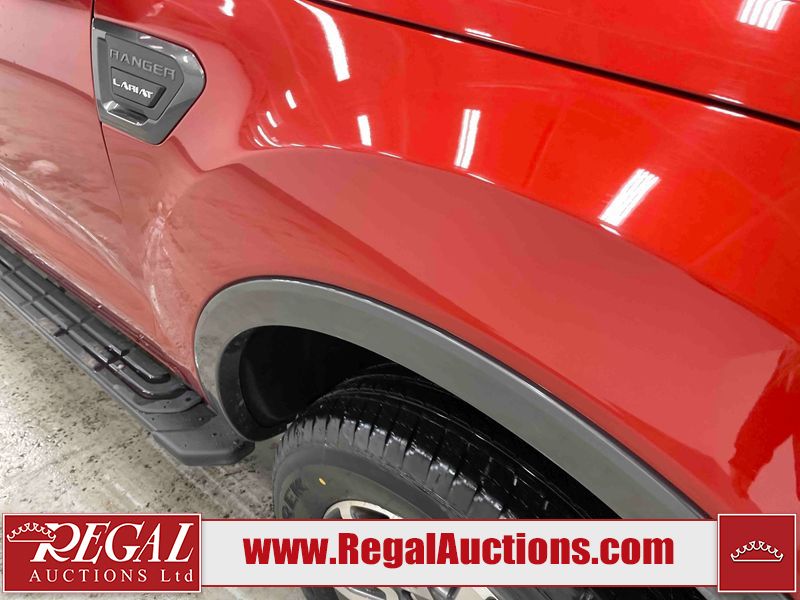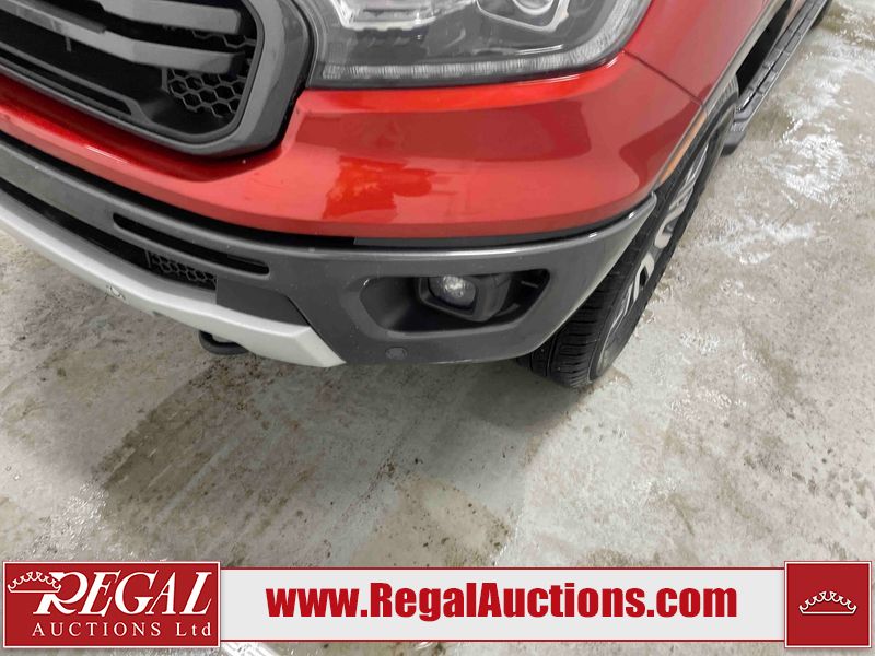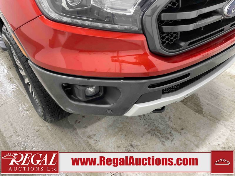 This 2019 FORD RANGER LARIAT SUPERCREW SWB 4WD 2.3L is powered by a 4 cylinder gasoline engine and an automatic transmission. It is equipped with four wheel drive. The truck has seats for 5 people. The truck has low mileage for its age. LARIAT is a very popular trim level. The vehicle has high value options including leather upholstery, power seats, heated seats, navigation, and a backup camera. The body looks to be in rough condition overall. There are a fair amount of chips on the front bumper. There are noteworthy scratches on the tail gate. There are scratches on the front bumper, hood, roof, left front fender, left front door, left rear door, left rear fender, rear bumper, right rear fender, right rear door, right front door, and right front fender. There is paint peeling on the front bumper and tail gate. There are minor chips on the grille, hood, roof, left front fender, left front door, left rear door, left rear fender, rear bumper, tail gate, right rear fender, right rear door, right front door, and right front fender. There is dent damage on the left rear fender and right rear fender. There is very minor dent damage in a few areas around the body. There is adhesive on the left rear, right rear and right front doors. The interior looks to be in rough condition overall. The dashboard is broken. The driver's seat, passenger seat, and rear seats are worn. The carpet is dirty. The roof liner is dirty. The plastic tray in the dashboard is lifting and broken. The windshield is cracked. All of the tires have lots of tread remaining.